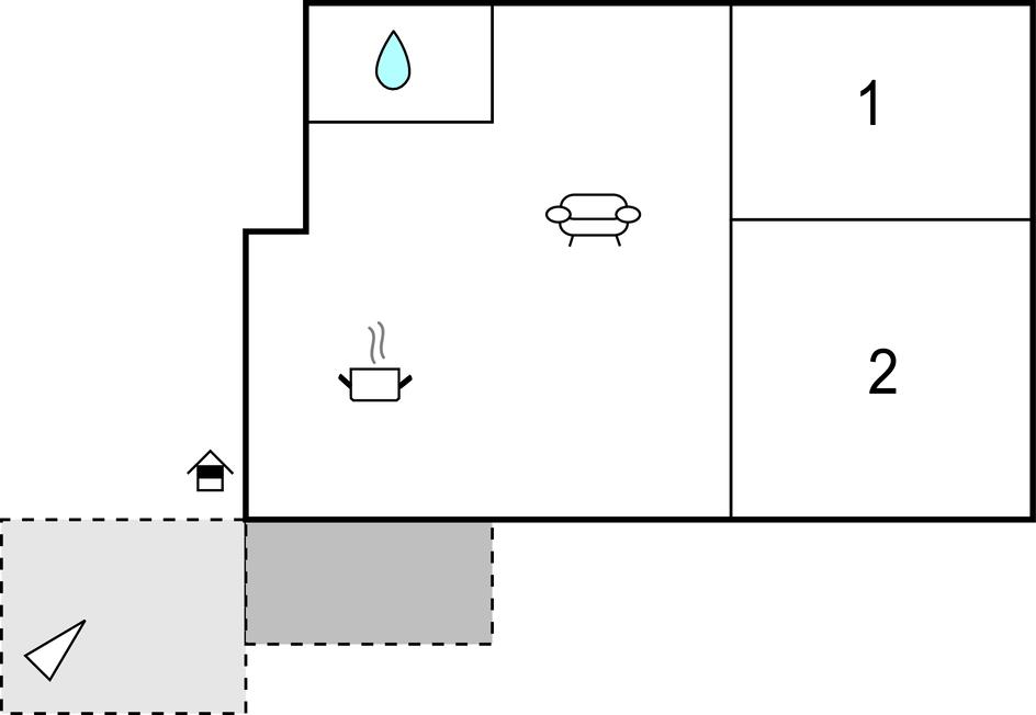 Komb. spisestue/køkken - 2 Sovepladser. (Sofa, madras eller lignende).