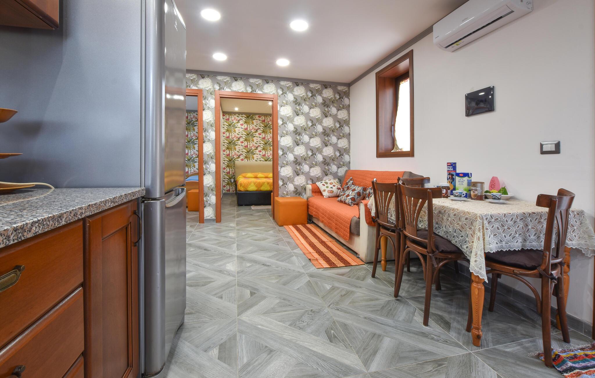 Nyd middelhavsstemningen på jeres indbydende terrasse, omgivet af blomstrende planter og en vidunderlig udsigt over kvarteret og Etna i det fjerne. Tilbring afslappende eftermiddage med en kop kaffe eller afslut dagen med et glas vin under forteltet.