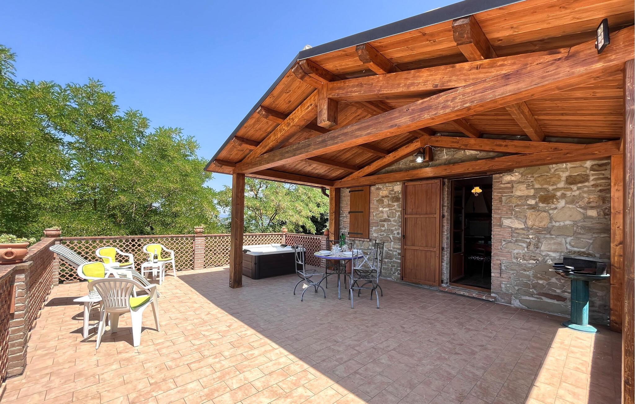 Forkæl jer selv med afslappende dage i dette rummelige feriehus med spabad i en idyllisk beliggenhed. Beliggende midt i de grønne bakker nær Casacastalda, kan I lade hverdagen forsvinde i det fjerne på denne smukke ejendom. Her kan I nyde en autentisk atmosfære og moderne komfort, mens I tryller lækre pastaretter frem sammen med familien, planlægger jeres aktiviteter over hyggelige måltider og streamer en god film sammen om aftenen. På jeres terrasse kan I nyde morgenmaden eller slappe af i spabadet, mens I nyder den fortryllende panoramaudsigt. Den velholdte, indhegnede have giver jeres børn masser af plads til at lege eller holde picnic. Tænd op i grillen og glæd jer til stemningsfulde aftener med vin og stearinlys. Vandr på de mange velafmærkede stier omkring Monte Subasio, besøg middelalderbyer som Assisi eller Spello, slentr gennem historiske gyder og prøv lokale specialiteter i autentiske trattoriaer. Cykl gennem de omkringliggende vinmarker, besøg klosteret San Damiano og nyd en dag med svømning ved Trasimenosøen.
