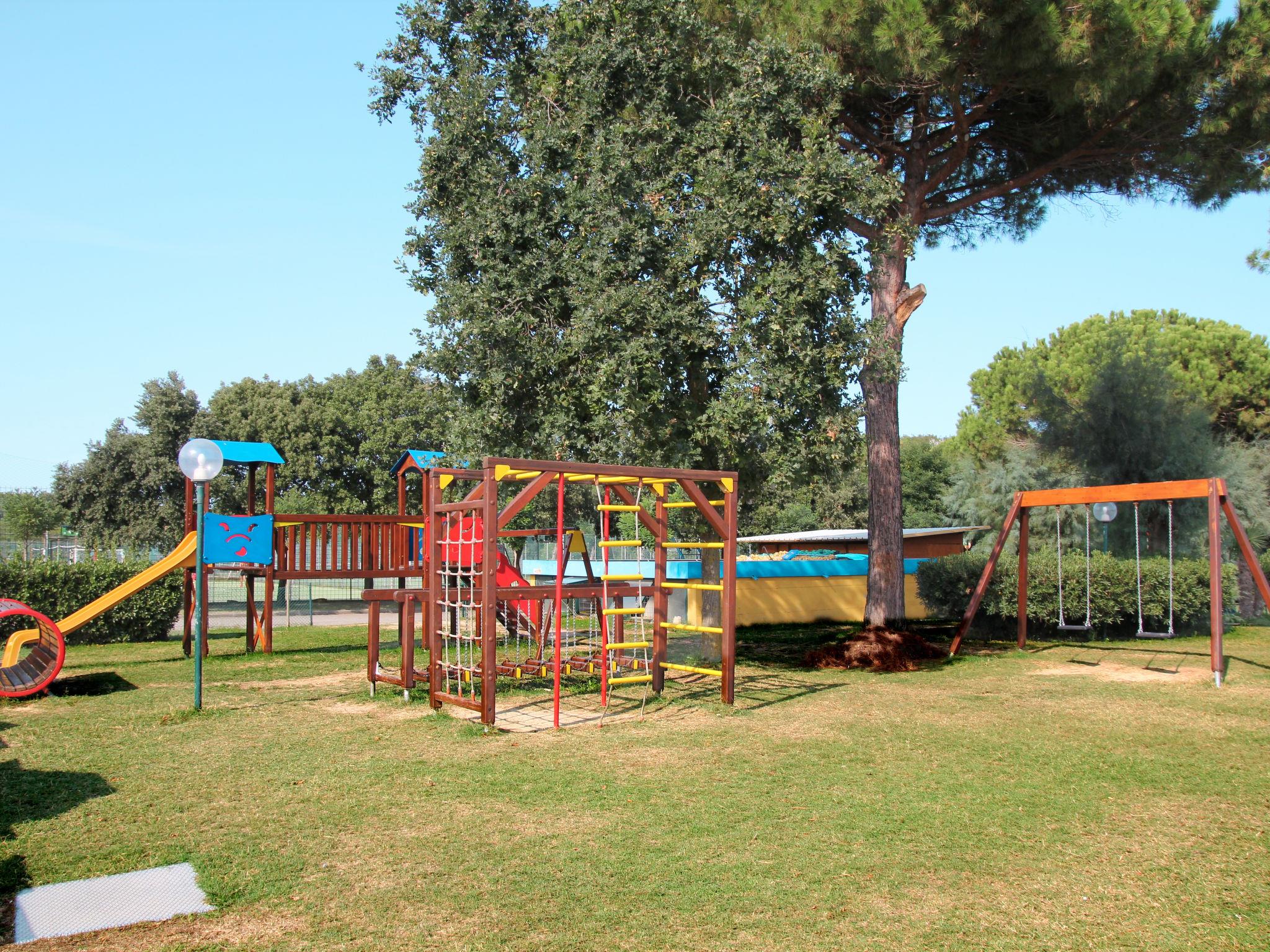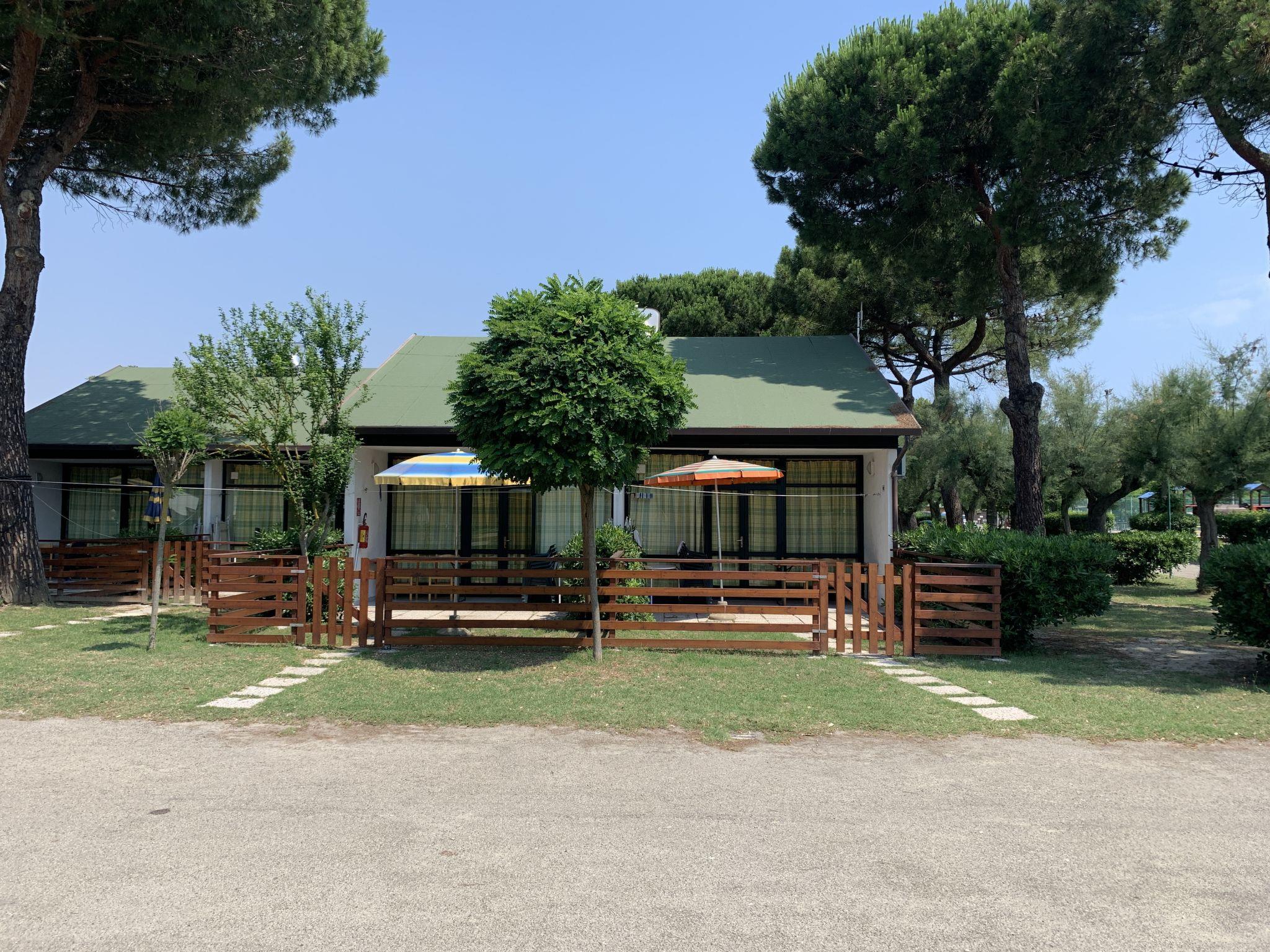 Large, child friendly resort "Mare Pineta". 210 apartments in the residence. 800 m from the centre of Casal Borsetti, on the outskirts, 200 m from the sea, 200 m from the beach, in the countryside. For shared use: property 12 ha (fenced) with lawn and trees, 2 swimming pools (seasonal availability: 15.May. - 15.Sep.). Children's pool, tennis (2 x hard court), boccia, volleyball, children's playground. In the complex: reception, restaurant, bar, WiFi, shopping facilities, washing machine, tumble dryer (for shared use, extra), bicycle rental. Full board on request (extra). Central parking spaces. Bus stop 1.2 km. Nearby attractions: Ravenna 15 km, Comacchio 20 km, Abbazia di Pomposa 35 km, Ferrara 71 km, Venezia 120 km. Hiking paths: Bosco Mesola 42 km. Please note: car-free holiday complex. Entertainment in the season. Suitable for families, baby equipment on request (extra). Access to the vicinity of the houses is possible only on Saturdays for loading and unloading, from Sunday to Friday only up to the central parking lot. The Baby's Bungalows are located near the swimming pool, the Dog's Bungalows are located on the edge of the campsite and have a small enclosed garden.