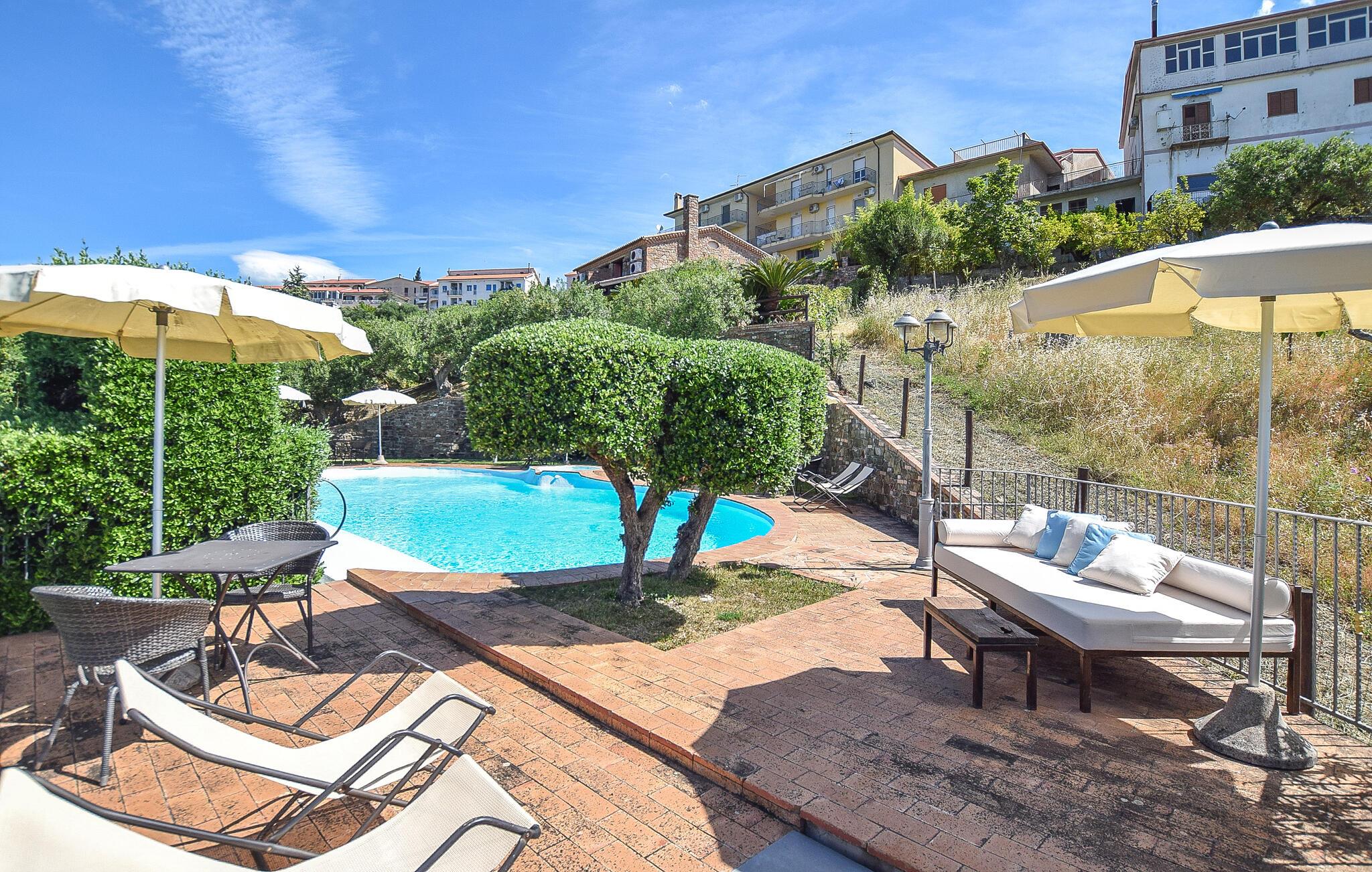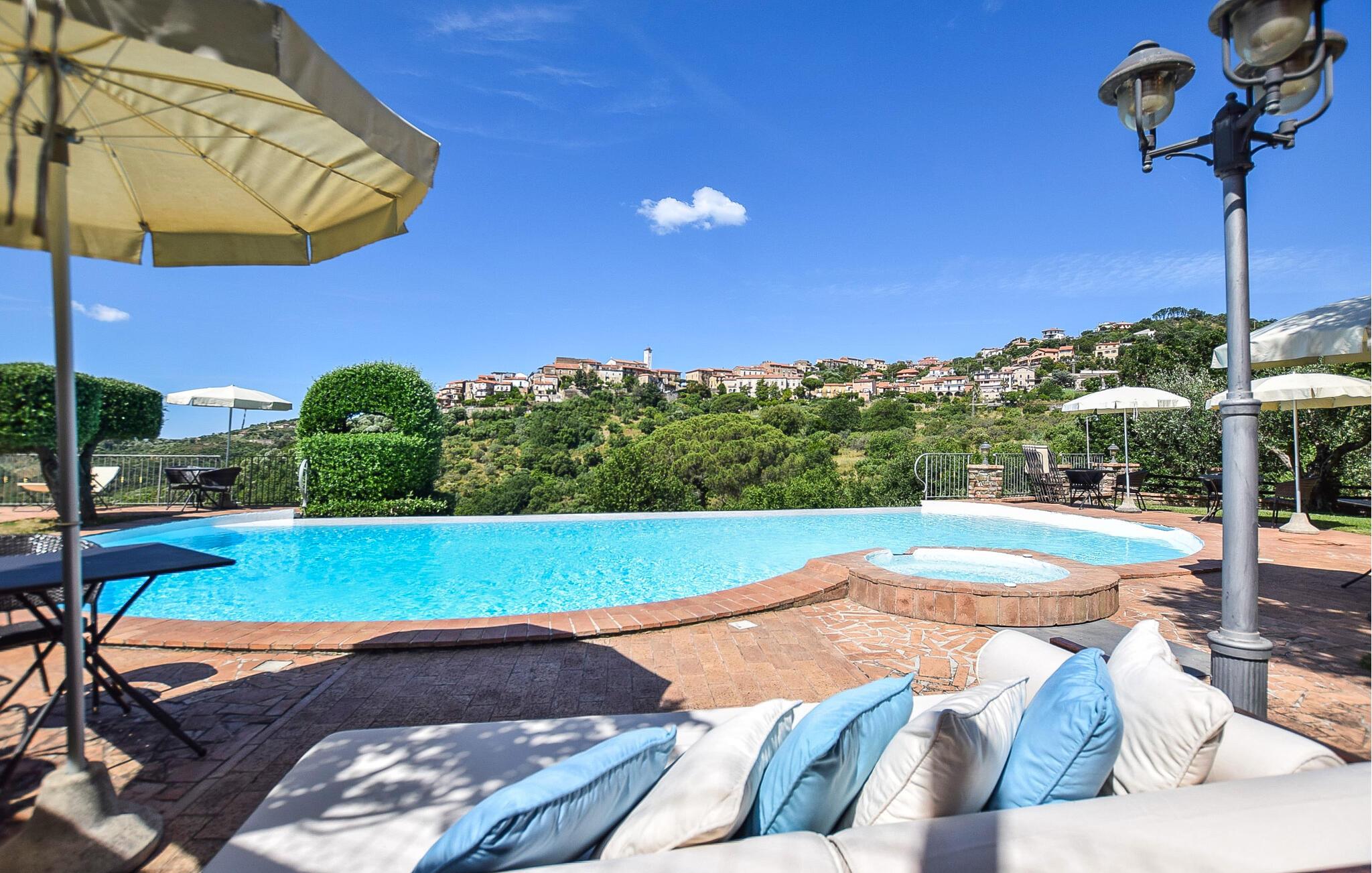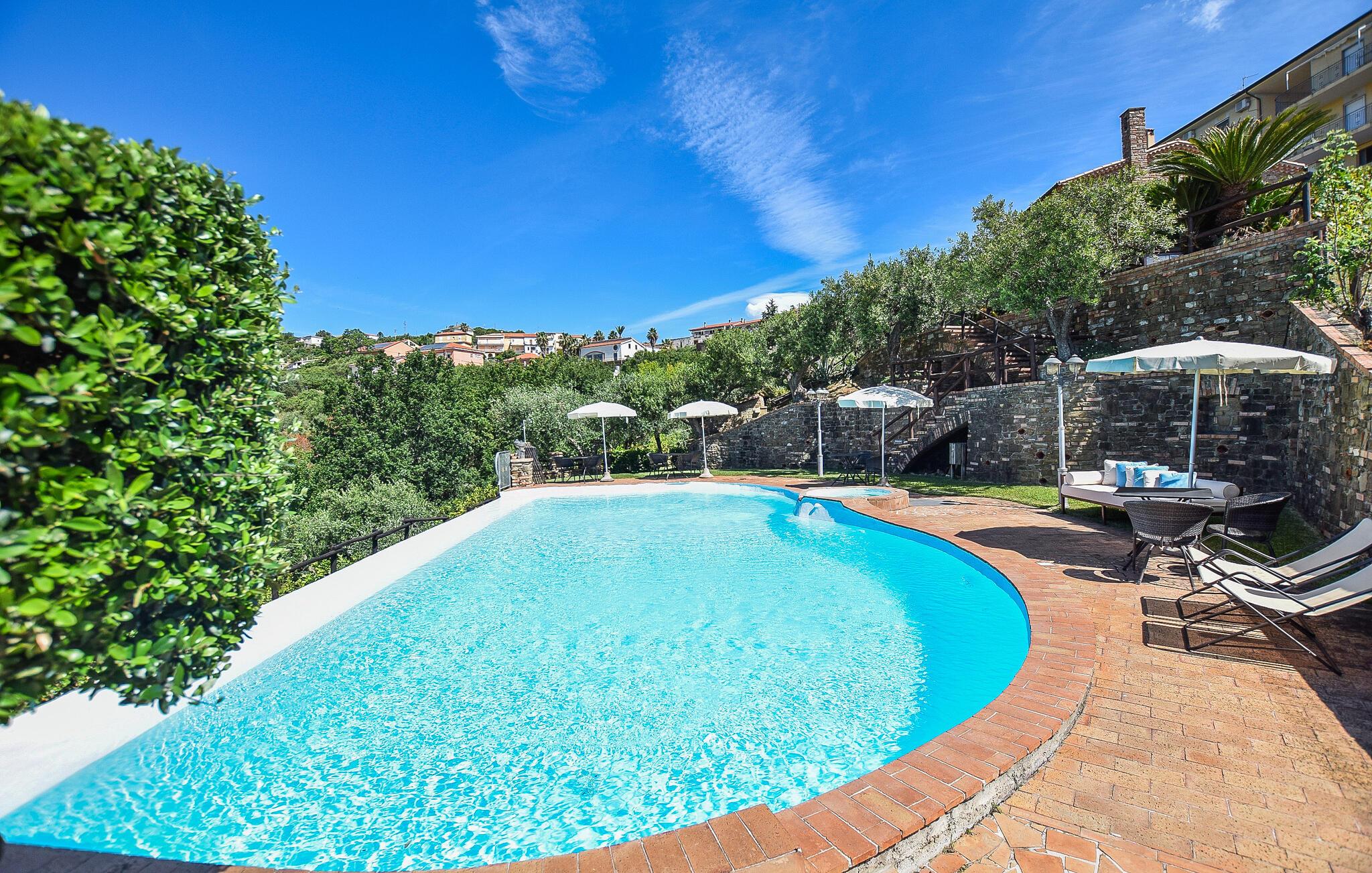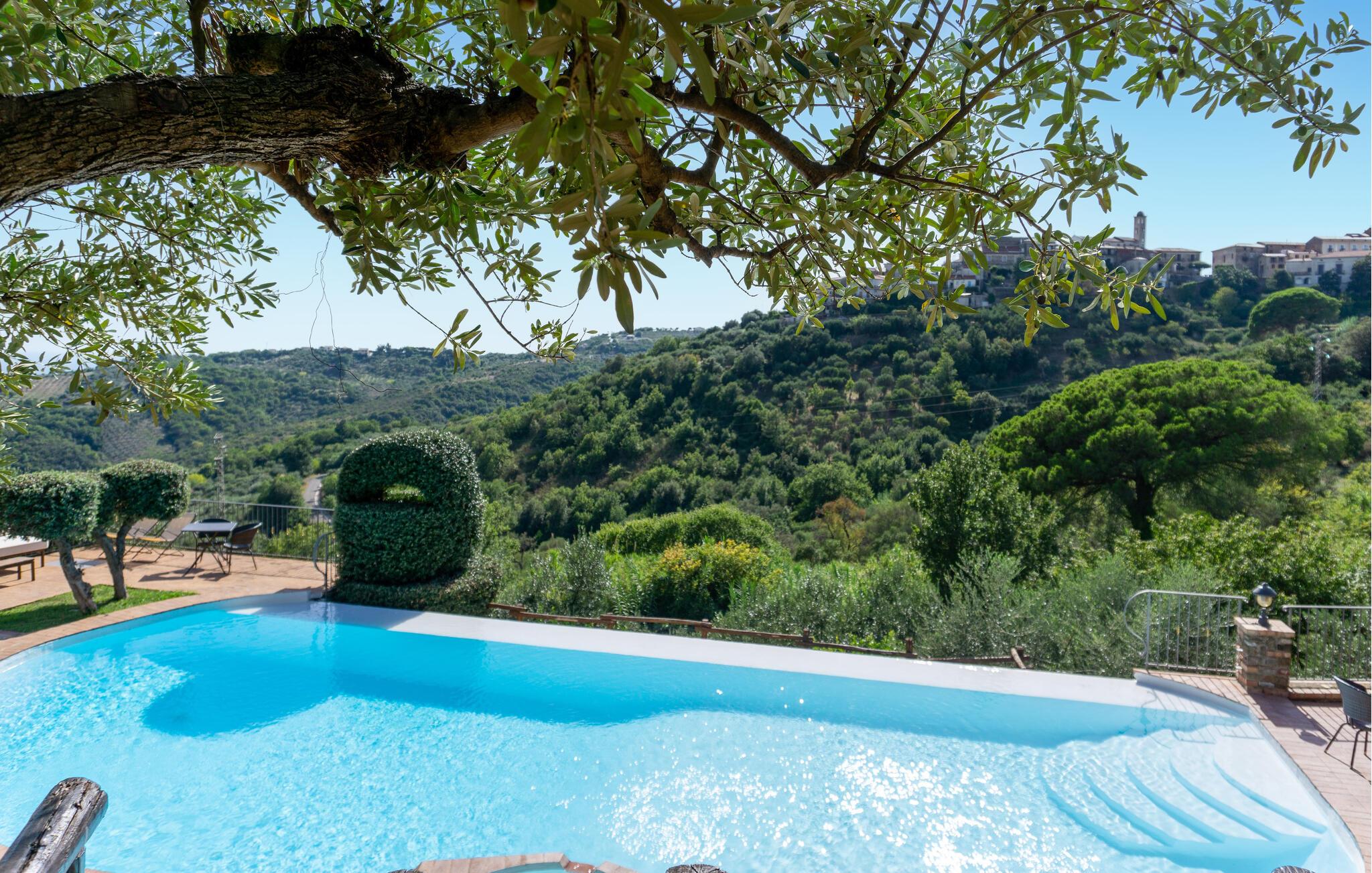 Nyd jeres morgentimer med en kop kaffe på terrassen, mens I skuer ud over de omkringliggende bakker. Tilbring jeres dage ved den fælles pool og lad jer fortrylle af det glitrende vand og naturens ro. Om aftenen inviterer hyggelige siddeområder jer til at beundre solnedgangen med et glas vin.