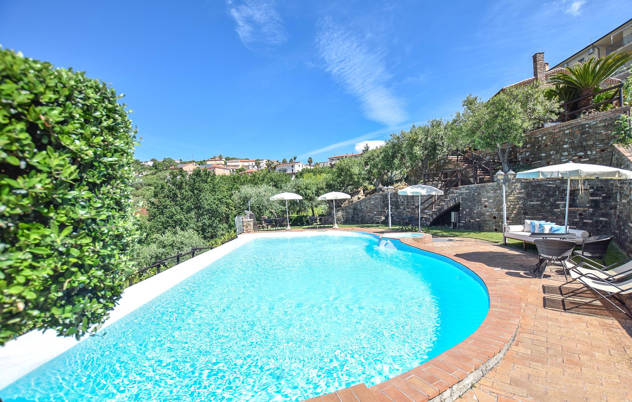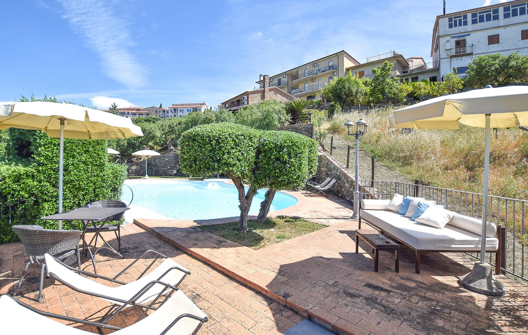 Nyd jeres morgentimer med en kop kaffe på terrassen, mens I skuer ud over de omkringliggende bakker. Tilbring jeres dage ved den fælles pool og lad jer fortrylle af det glitrende vand og naturens ro. Om aftenen inviterer hyggelige siddeområder jer til at beundre solnedgangen med et glas vin.