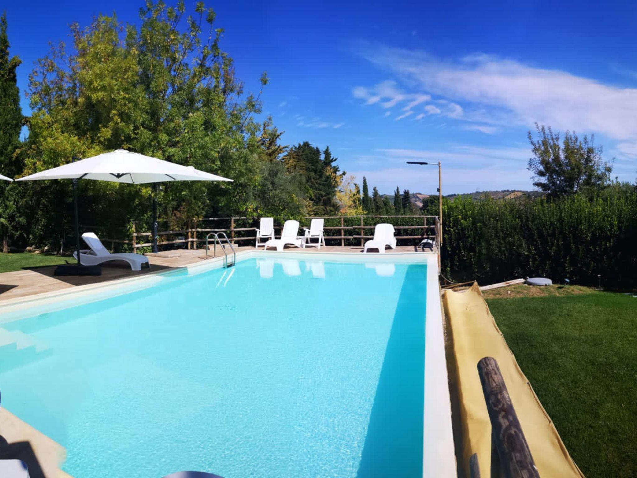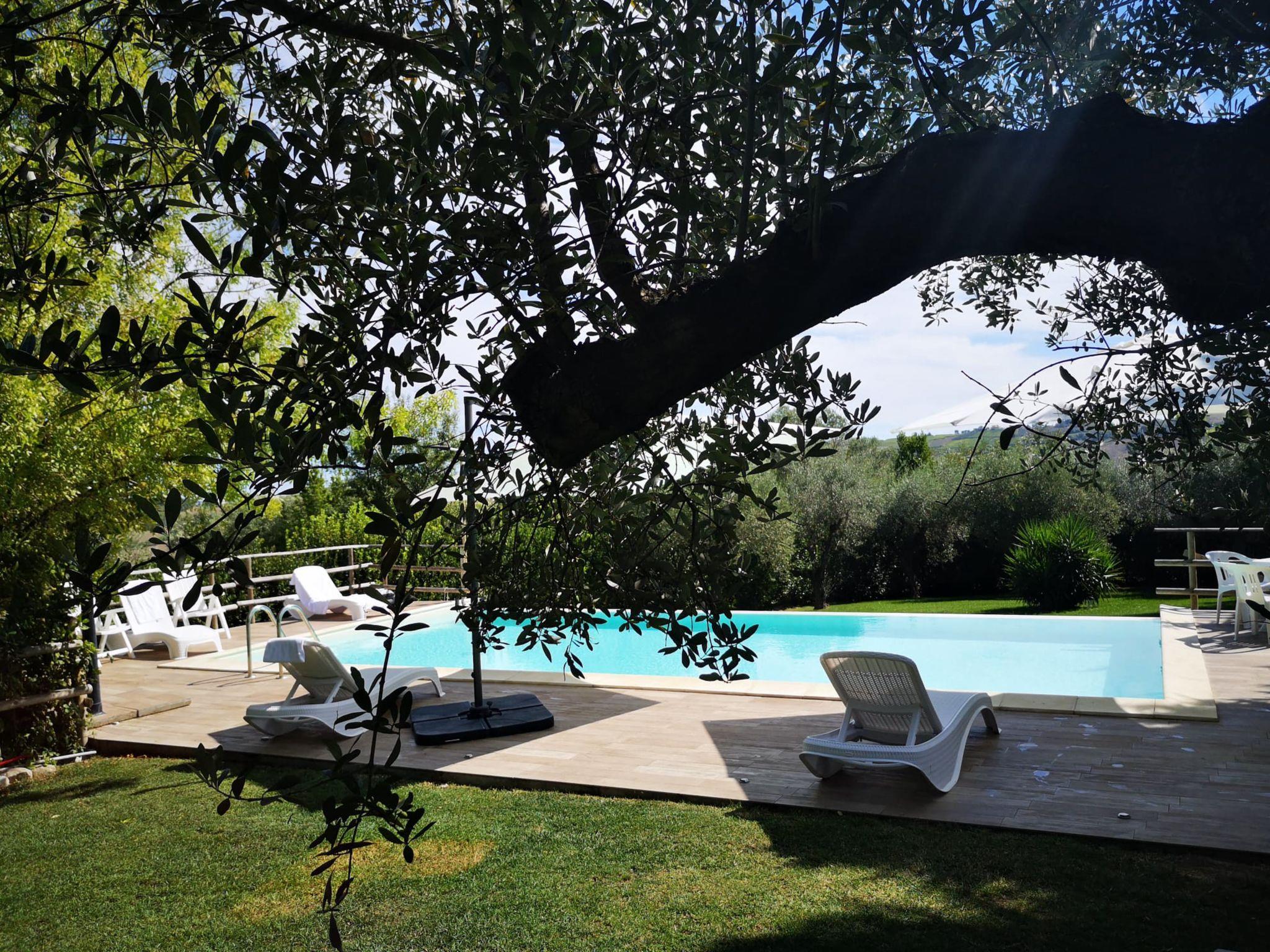 Very beautiful, rustic agricultural estate "Casale Vidorni", renovated, surrounded by fields and vineyards. 2 apartments in the property. 9 km from the centre of Casalbordino, 35 km from the centre of Lanciano, 24 km from the centre of Vasto, 17 km from the sea, in the countryside. For shared use: large, well-kept garden 3'000 m2 (fenced) with lawn and trees, swimming pool (11 x 5 m, depth 130 cm, seasonal availability: 15.Apr. - 15.Oct.) with internal staircase. Outdoor shower, terrace (50 m2), garden furniture, barbecue, children's playground (swing), pool maintenance by the owner/gardener. In the house: heating available only from 01.Nov. - 31.Mar., bicycle rental. Parking on the premises. Supermarket 9 km, bus stop 5.2 km, railway station "Lido di Casalbordino" 17 km, sandy beach 17 km. Fishing possibilities 500 m. Nearby attractions: Dune 17 km, Lago sportivo. Please note: fishing [permit required] (extra) on request. Local sale of farm products.