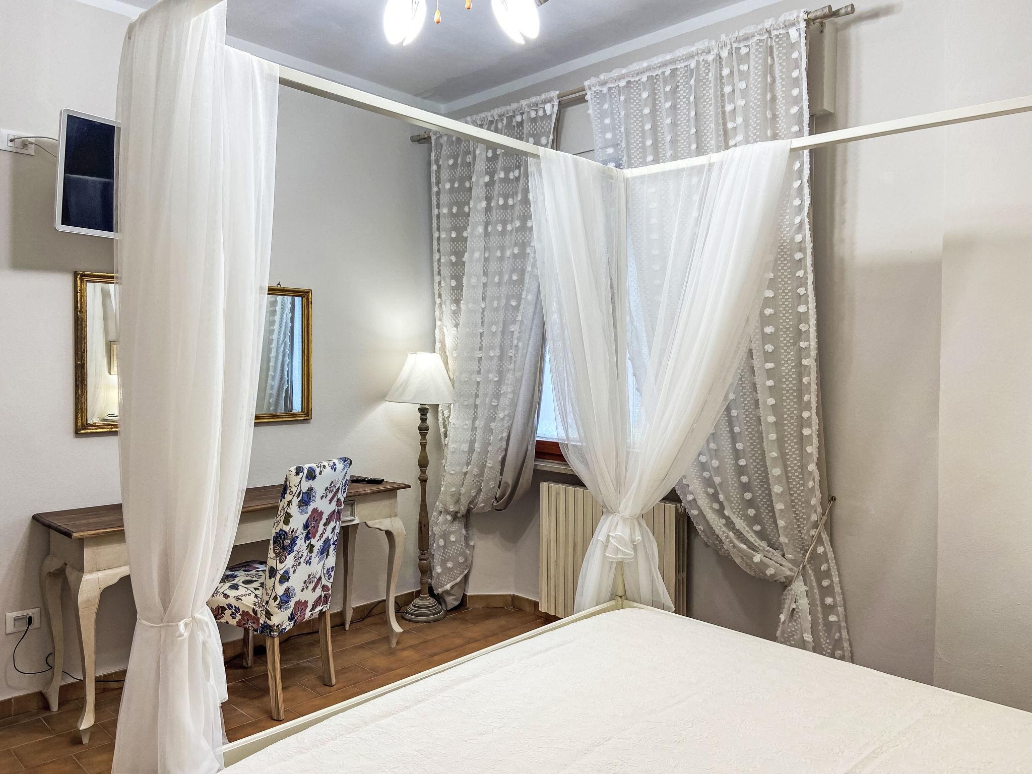 "Le Rocche", 3-room apartment 55 m2 on 1st floor. Spacious and bright, beautiful and modern furnishings: upper floor: (exterior staircase) living/sleeping room with 1 sofabed and satellite TV. Exit to the terrace. 2 double bedrooms, each room with satellite TV, electric heating and air conditioning with satellite TV, electric heating and air conditioning. Open kitchen (mini-oven, dishwasher, 4 induction hot plates, toaster, kettle, electric coffee machine) with dining table. Shower/bidet/WC. Electric heating, gas heating, air-conditioning. Heating available only from 10.10. to 19.04. Large terrace 20 m2, roofed. Sitting area. Beautiful distant view of the sea and the countryside. Facilities: safe, children's high chair, baby cot for up to 2 year olds, hair dryer. Internet (WiFi, free). Please note: maximum 1 pet/ dog allowed. Fire extinguisher. terrace shared with another apartment. IT050006B5LNZZD6VU