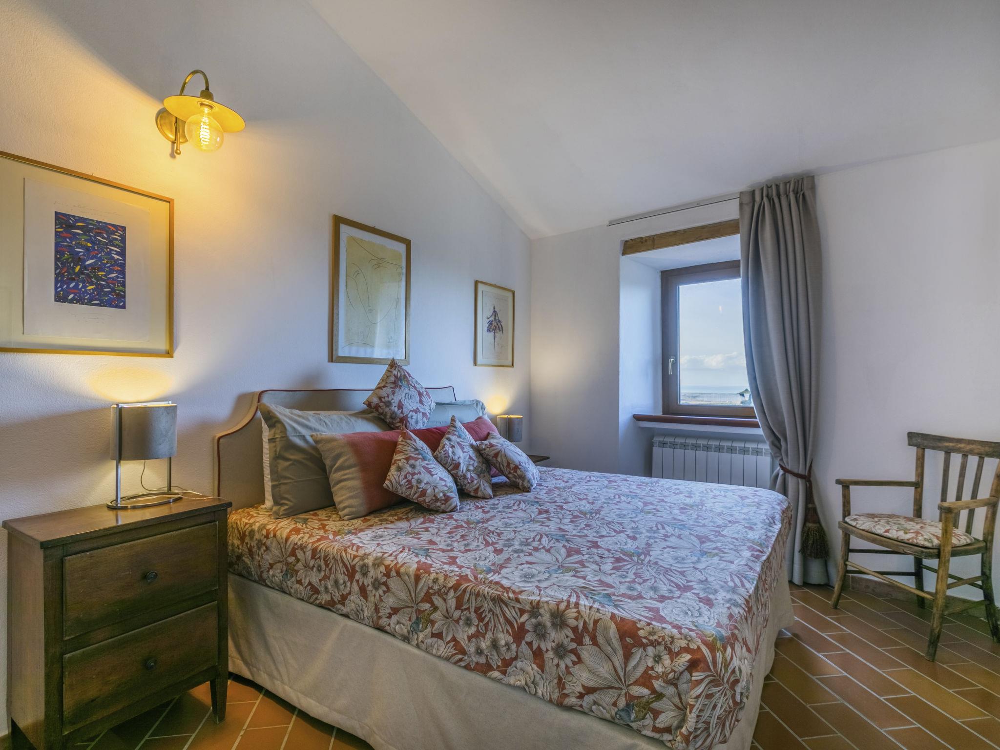 "Trilocale Casa nel Castello", 3-room apartment 88 m2, on the upper floor. Rustic and tasteful furnishings: upper floor: open large living/dining room with 1 sofabed. Exit to the balcony. Open kitchen (4 induction hot plates, toaster, kettle, microwave) with satellite TV. 2nd upper floor: (steep stair), 1 double bedroom with 1 double bed. 1 room with 2 beds. Shower/bidet/WC. Heating. Very beautiful panoramic view of the sea and the countryside. Facilities: washing machine, hair dryer. Internet (WiFi). Suitable for families. Maximum 1 pet/ dog allowed. Please note: the use of the washing machine is shared with another accommodation unit. IT050006C2KSQCA757