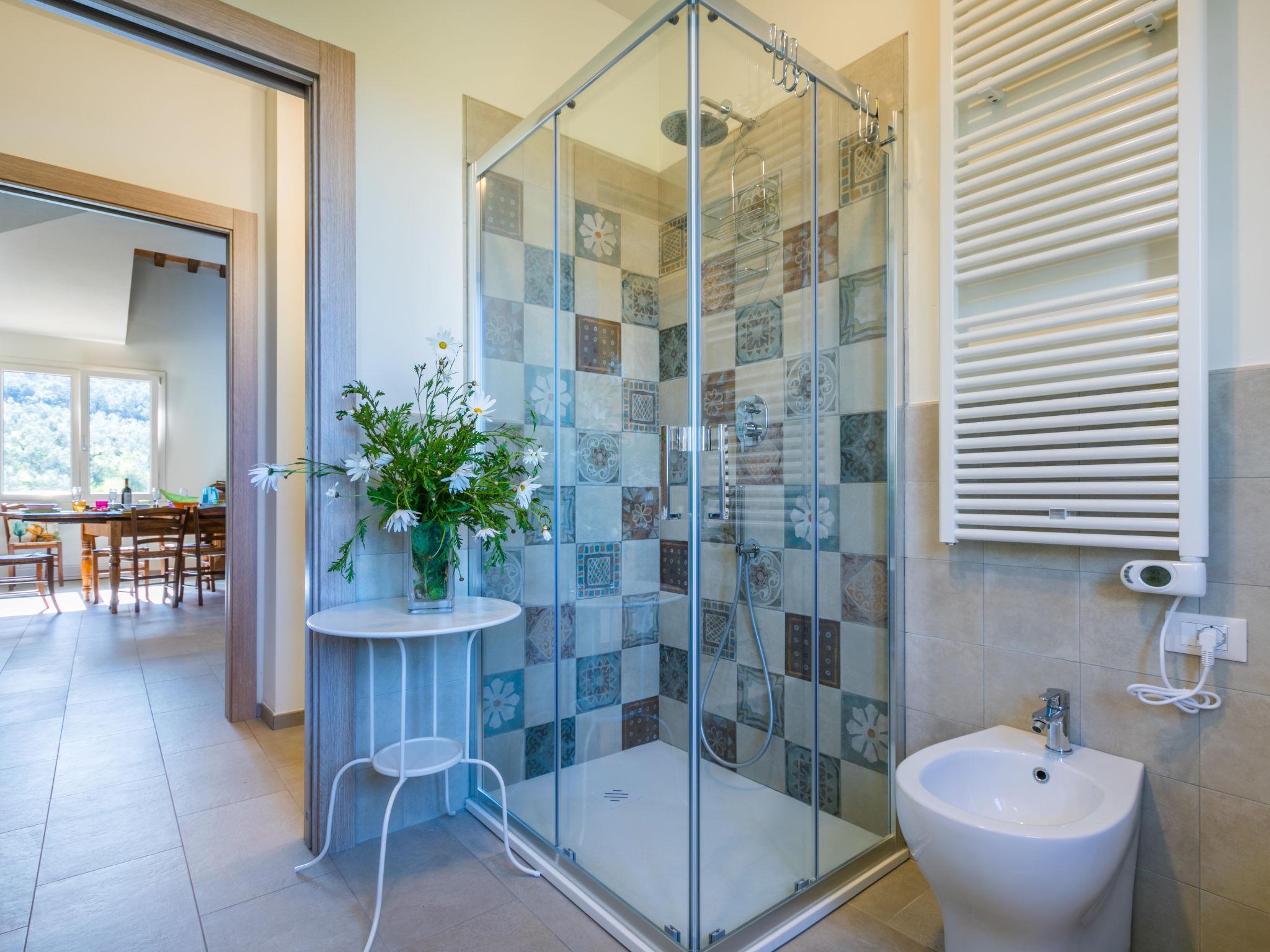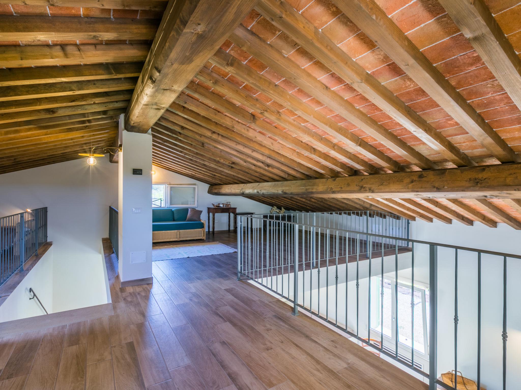 3-room house 100 m2. Beautiful and modern furnishings: open large living/dining room with dining table and TV. Exit to the garden, to the terrace. 2 double bedrooms, each room with 1 double bed. Open kitchen (oven, dishwasher, 4 induction hot plates, toaster, kettle, electric coffee machine). Bath/bidet/WC. Electric heating, air-conditioning. Solar power. Upper floor: gallery with 2 beds. Large garden. Terrace furniture, barbecue (portable), deck chairs. Beautiful panoramic view of the countryside and the town. Facilities: washing machine. Internet (WiFi, free). Parking at the house. Please note: non-smoking house. Maximum 1 pet/ dog allowed. Fire extinguisher. Instead of an enclosed bedroom, some sleeping areas are located in an open-plan area (gallery, alcove, etc.). Bedlinen, towels, final cleaning and all energy costs are included. IT050006C28UZQVXPS