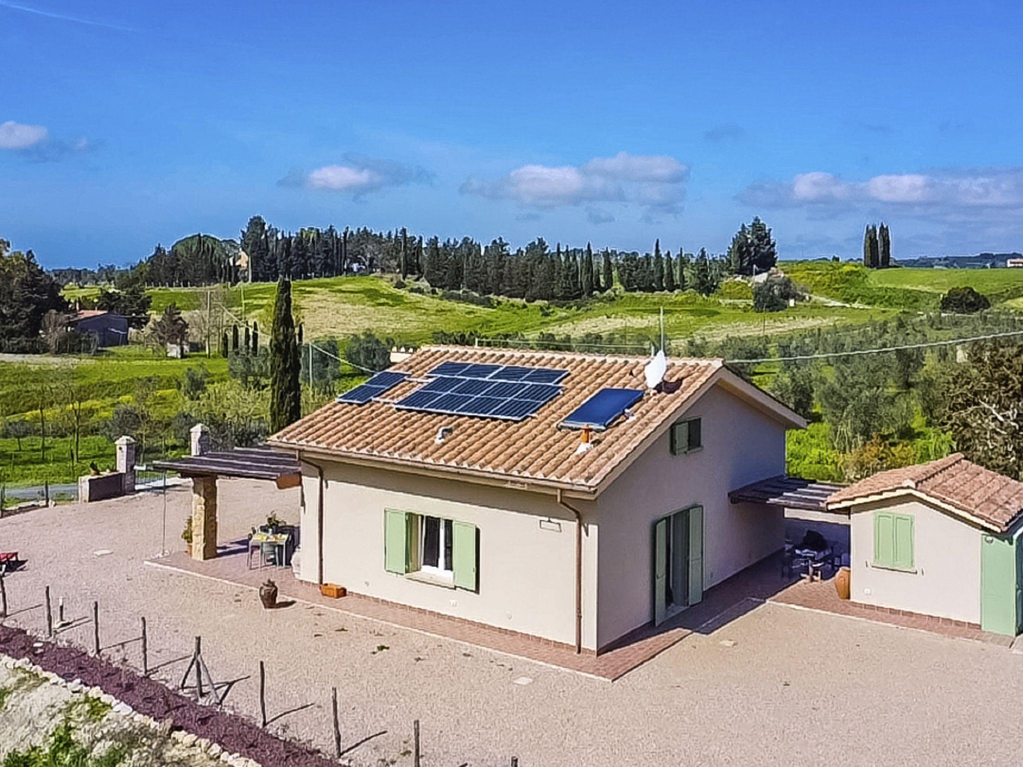 Modern, beautiful house "Nena", surrounded by fields and vineyards. 3 km from the centre of Casale Marittimo, 5.5 km from the centre of Bibbona, 13 km from the sea, 13 km from the beach. Private: property 4 ha, garden (fenced). Motor access (1 km via unmade road). Parking at the house. Grocery 3 km, supermarket 12 km, bar 3 km, bakery 3 km, bus stop "Bivio 3 Comuni" 2 km, sandy beach "Marina di Bibbona" 13 km, rocky beach "Castiglioncello" 33 km, thermal baths "Calidario" 36 km. Surf school 18 km. Nearby attractions: Bolgheri 11 km, Pisa 68 km, Lucca 94 km, Firenze 140 km. Please note: car recommended.
