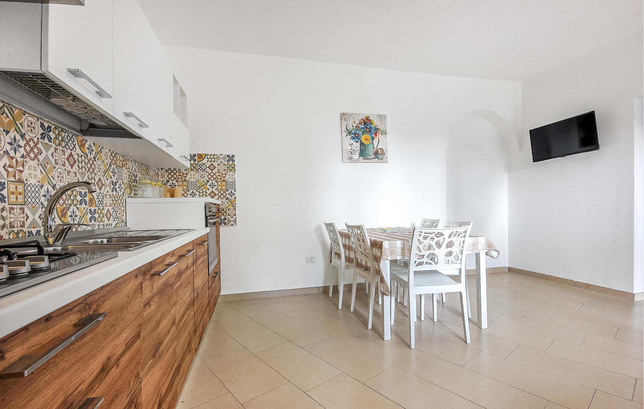 Tag en fortjent pause fra hverdagen og nyd skønheden i nationalparken i denne lejlighed i den landlige by Casalvelino, mindre end 2 kilometer fra sandstrandene ved Marina di Casal Velinos kyst. Lejligheden er enkelt, men moderne indrettet og udstyret med alt, hvad I behøver for at kunne slappe af og føle jer hjemme. Forbered en lækker morgenmad og styrk jer med en kop kaffe, inden I begiver på eventyr gennem byen eller i området.