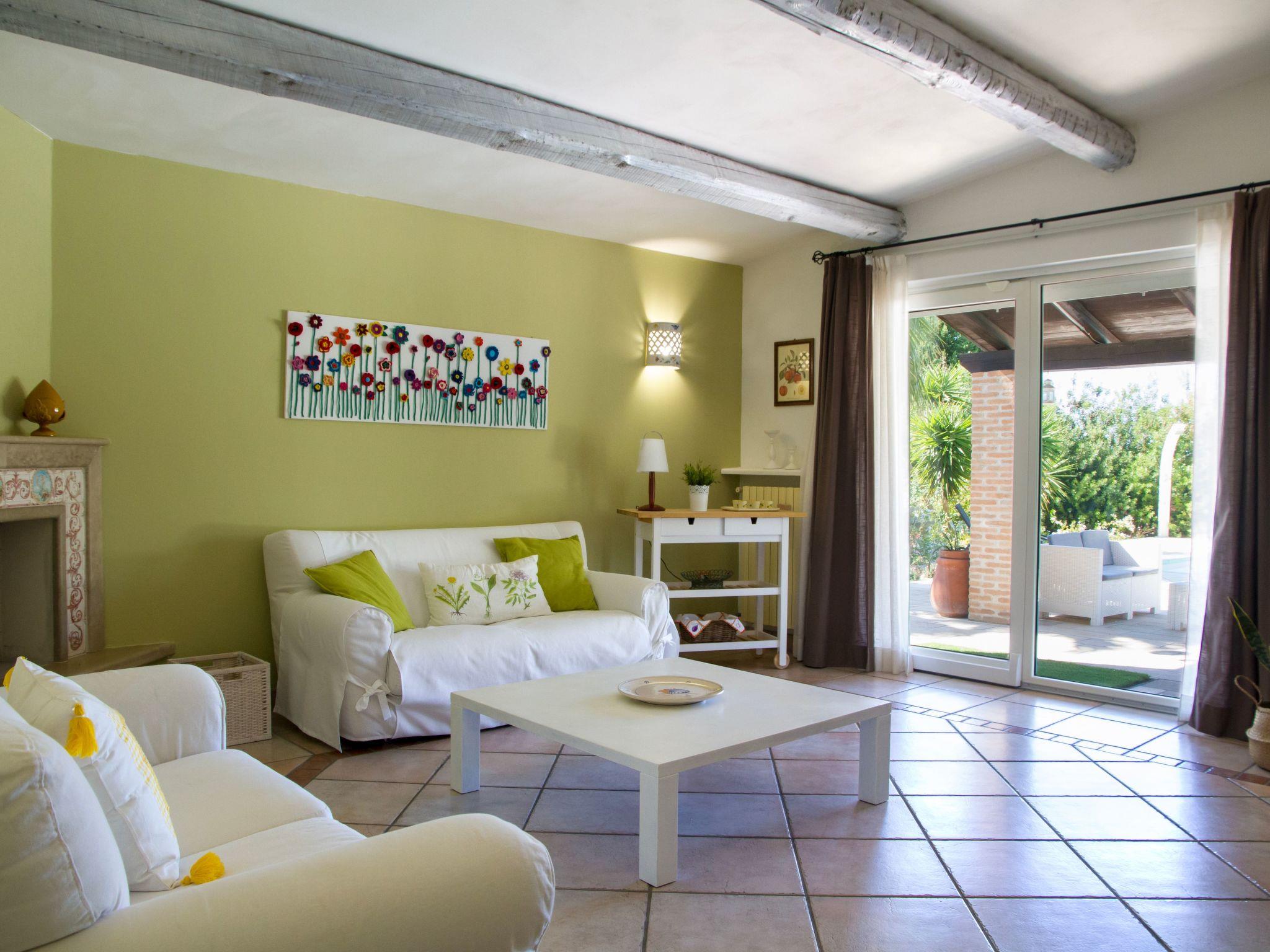 The extension, which is completely fenced off, includes a pine forest area with car parking, an orchard, a reserve of trees and plants of the most varied species contribute to offering guests a healthy and restful stay immersed in the green. The chlorine-free saltwater swimming pool (5 x 12 m) is for the exclusive use of guests. It is equipped with comfortable deckchairs for sinking into the most absolute and healthy relaxation. It opens in June and closes in October. An area of the garden is equipped for a barbecue with a stone oven. For excursions and walks in the nearby countryside you can use the two bicycles supplied with the villa. There is a large parking area for cars at the edge of the pine forest.