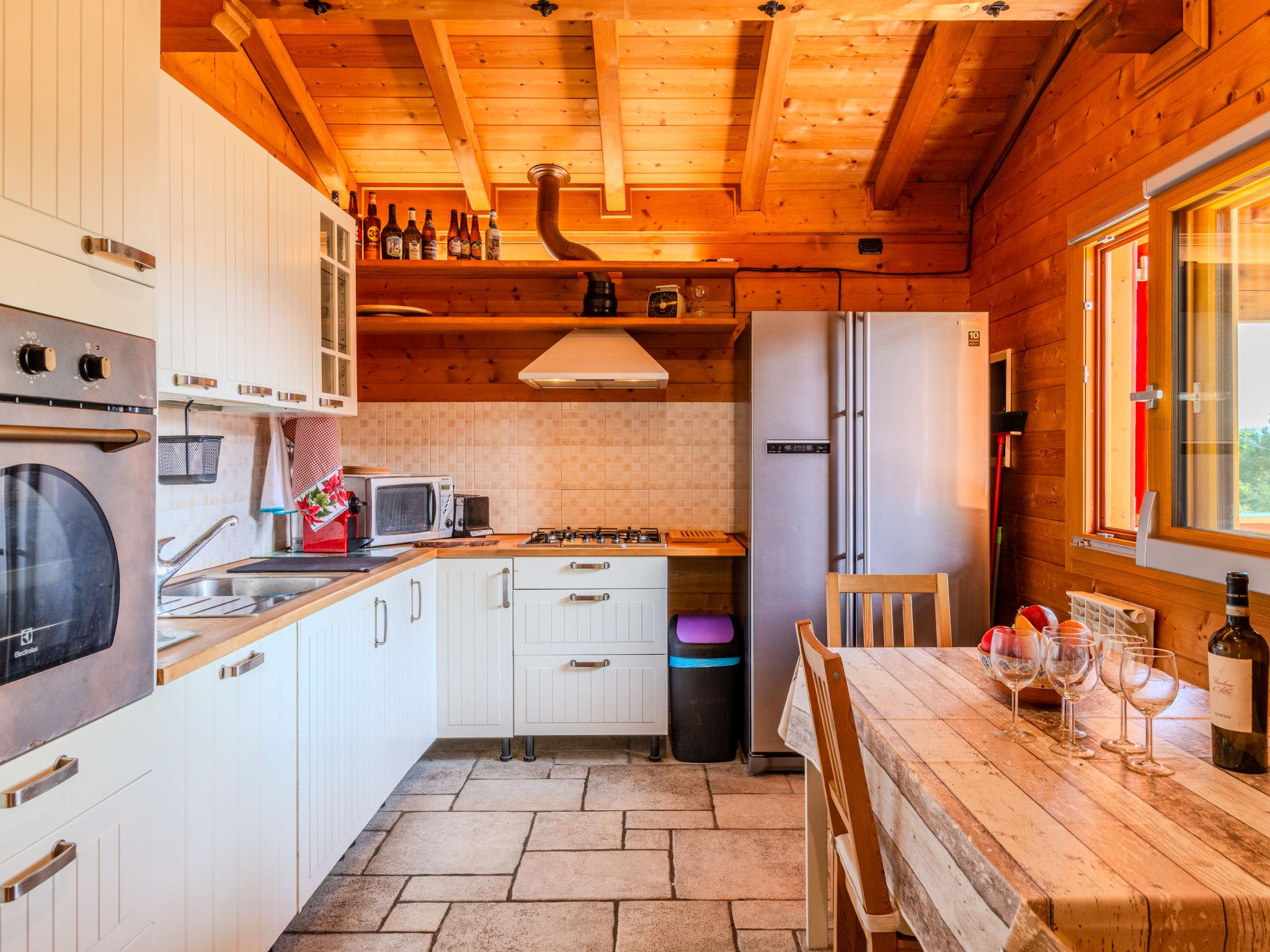 "Ritiro del Paladino", 3-room chalet 90 m2, on the upper ground floor. Spacious and bright, very comfortable and cosy furnishings: living room with 1 sofabed and open-hearth fireplace (only for decoration), TV. 1 double bedroom. 1 room with 2 beds. Kitchen-/living room (oven, dishwasher, Gas stove, 4 gas rings, toaster, kettle, microwave, freezer, electric coffee machine) with dining table. Shower/bidet/WC. Gas heating. Heating available only from 15.10. to 15.04. Wooden floors, natural stone floors. Balcony. Balcony furniture, barbecue, sitting area. Very beautiful panoramic view of the mountains and the valley. Facilities: washing machine. Internet (WiFi, free). Parking (3 cars), garage on the property (1 car). Please note: suitable for families. Non-smoking house. 1 pet/ dog allowed. Smoke alarm, fire extinguisher. IT013254C26IE6M35D