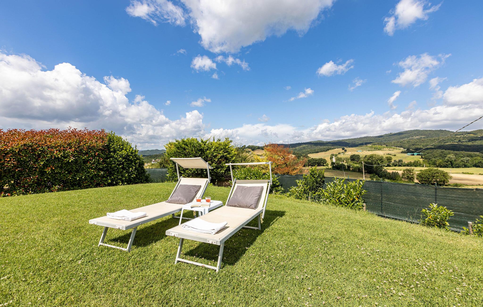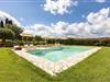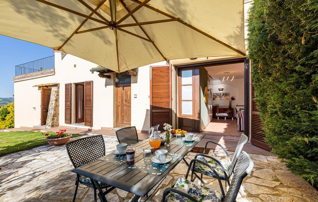 Ferielejlighed med privat udstyret udendørs område og fælles pool, indlejret i landskabet i Casole d'Elsa.