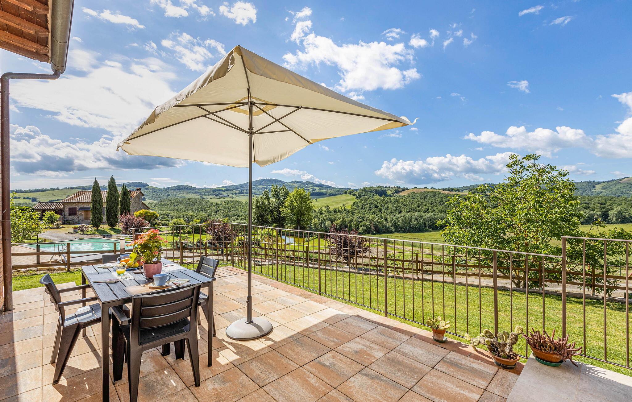 Begynd dagen med en friskbrygget morgenkaffe på terrassen og nyd den vidunderlige panoramaudsigt over landskabet, inden I tager dagens første dukkert i poolen.