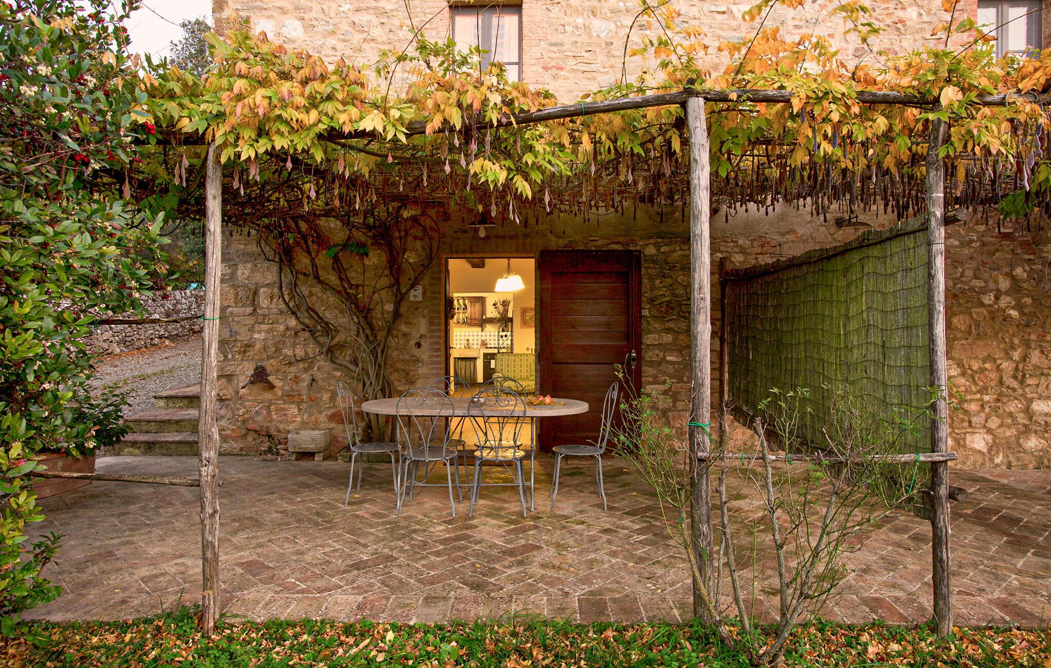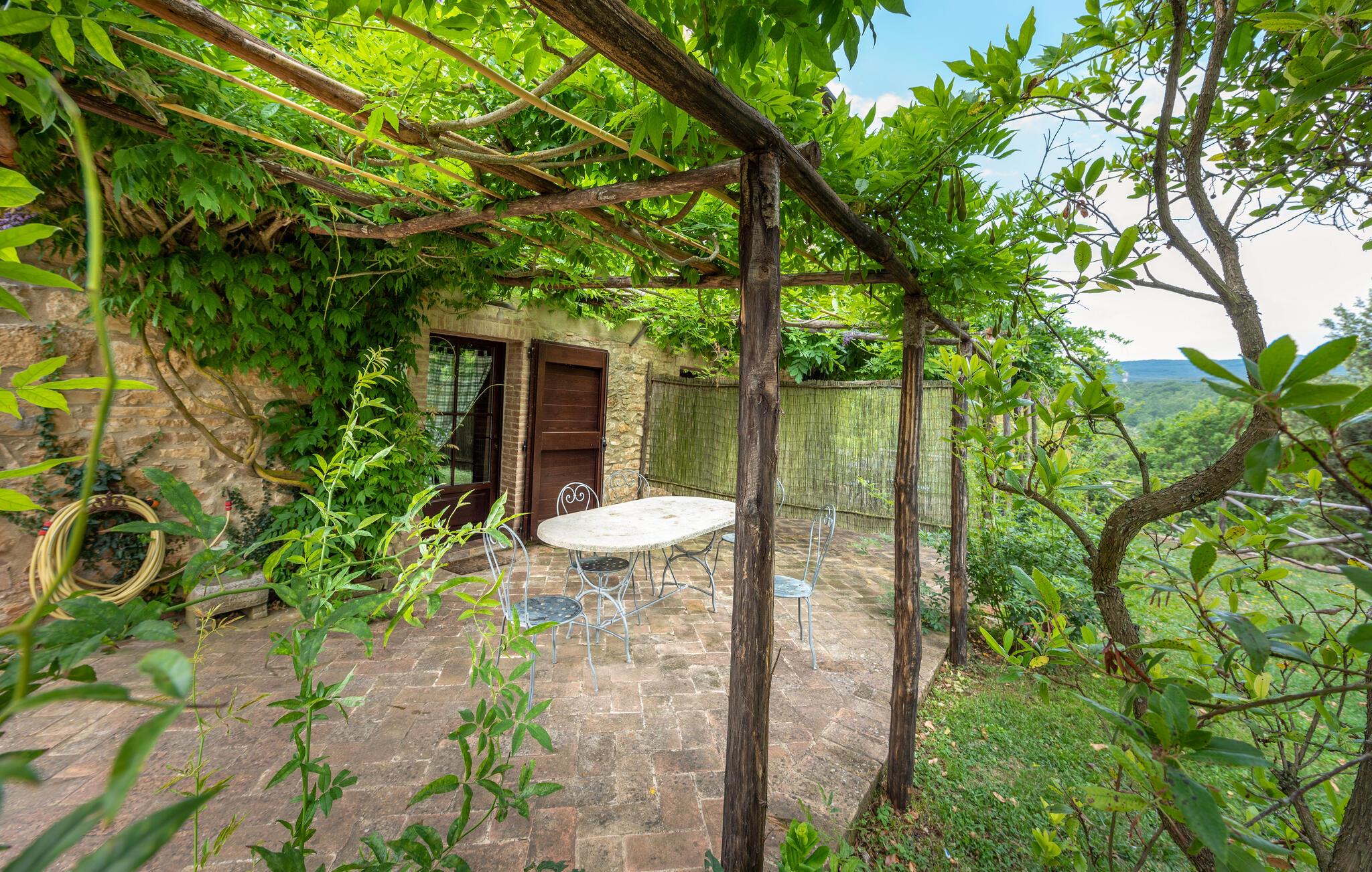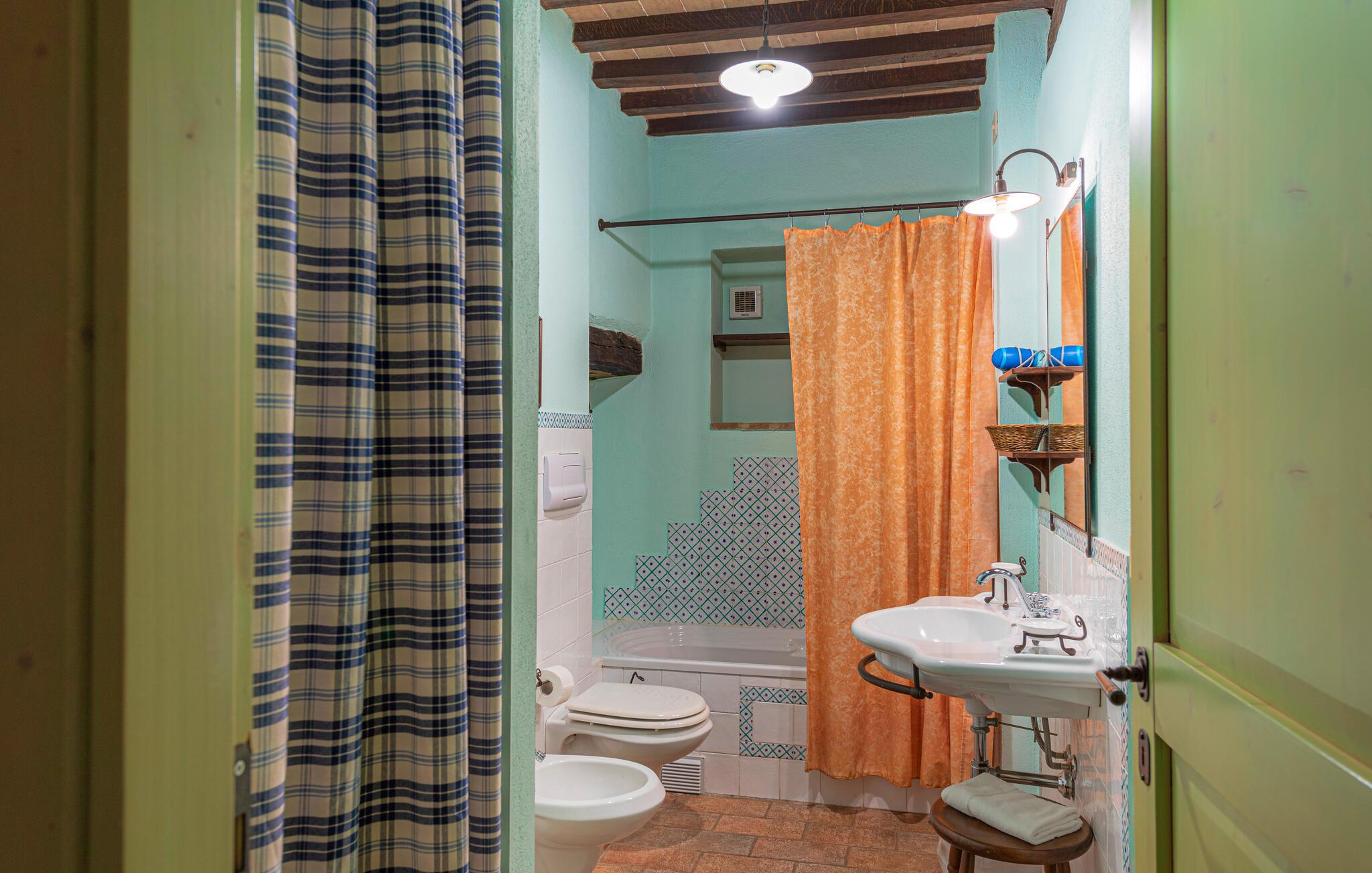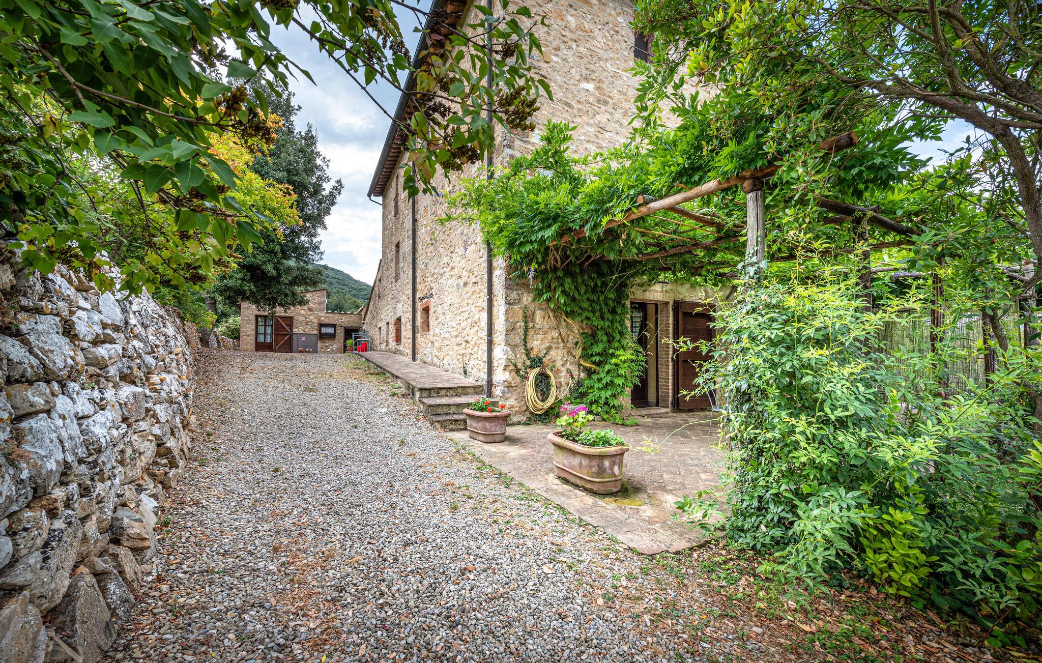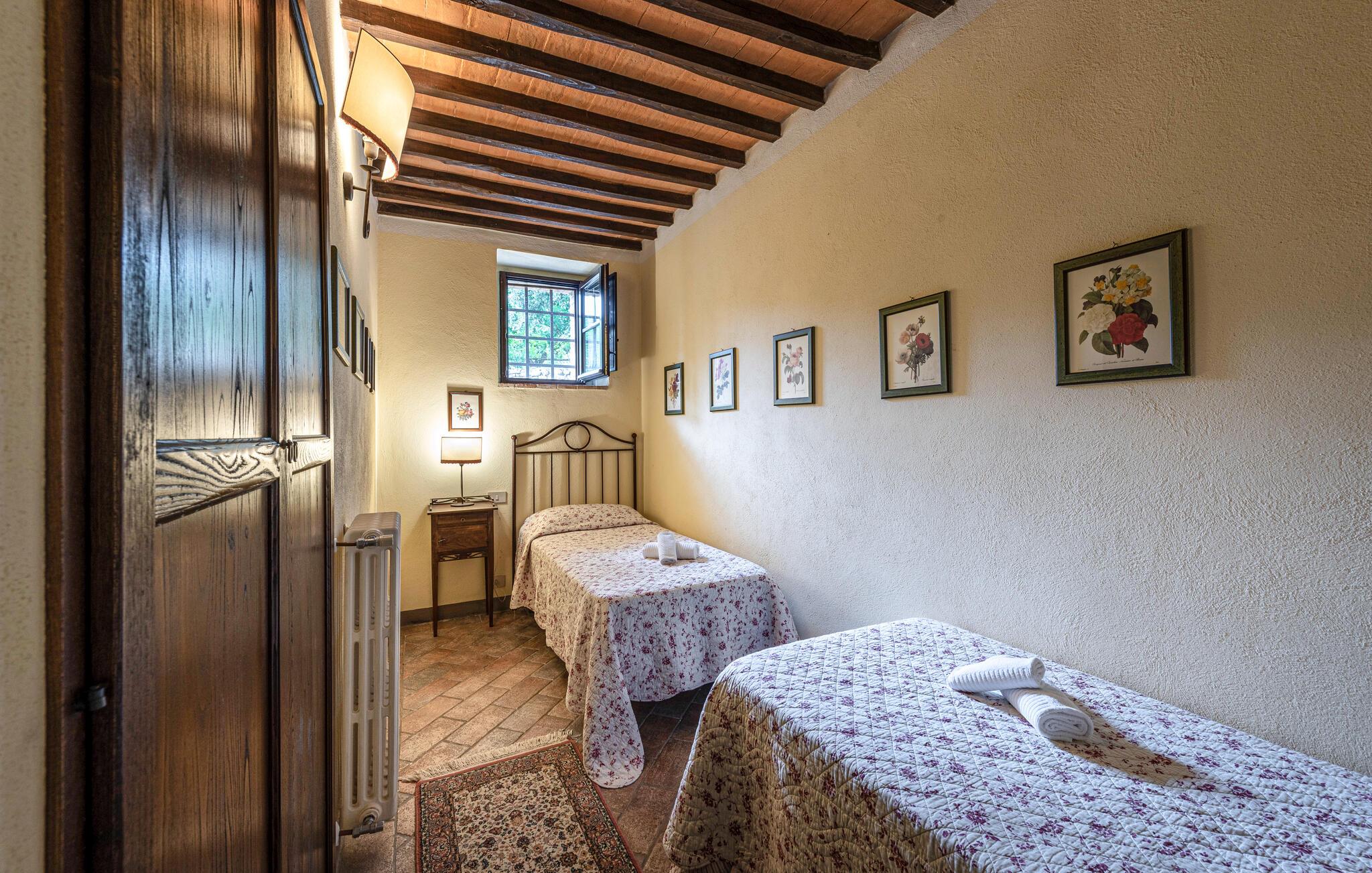 Denne hyggelige lejlighed er placeret på et karakterfuldt toscansk landsted og har fine autentiske detaljer. Synlige træbjælker i loftet og rustikke møbler skaber en historisk atmosfære, der hurtigt vil få jer til at føle jer hjemme. Slap af med god musik, nyd en sjov spilleaften eller lav lækre måltider i det moderne køkken.