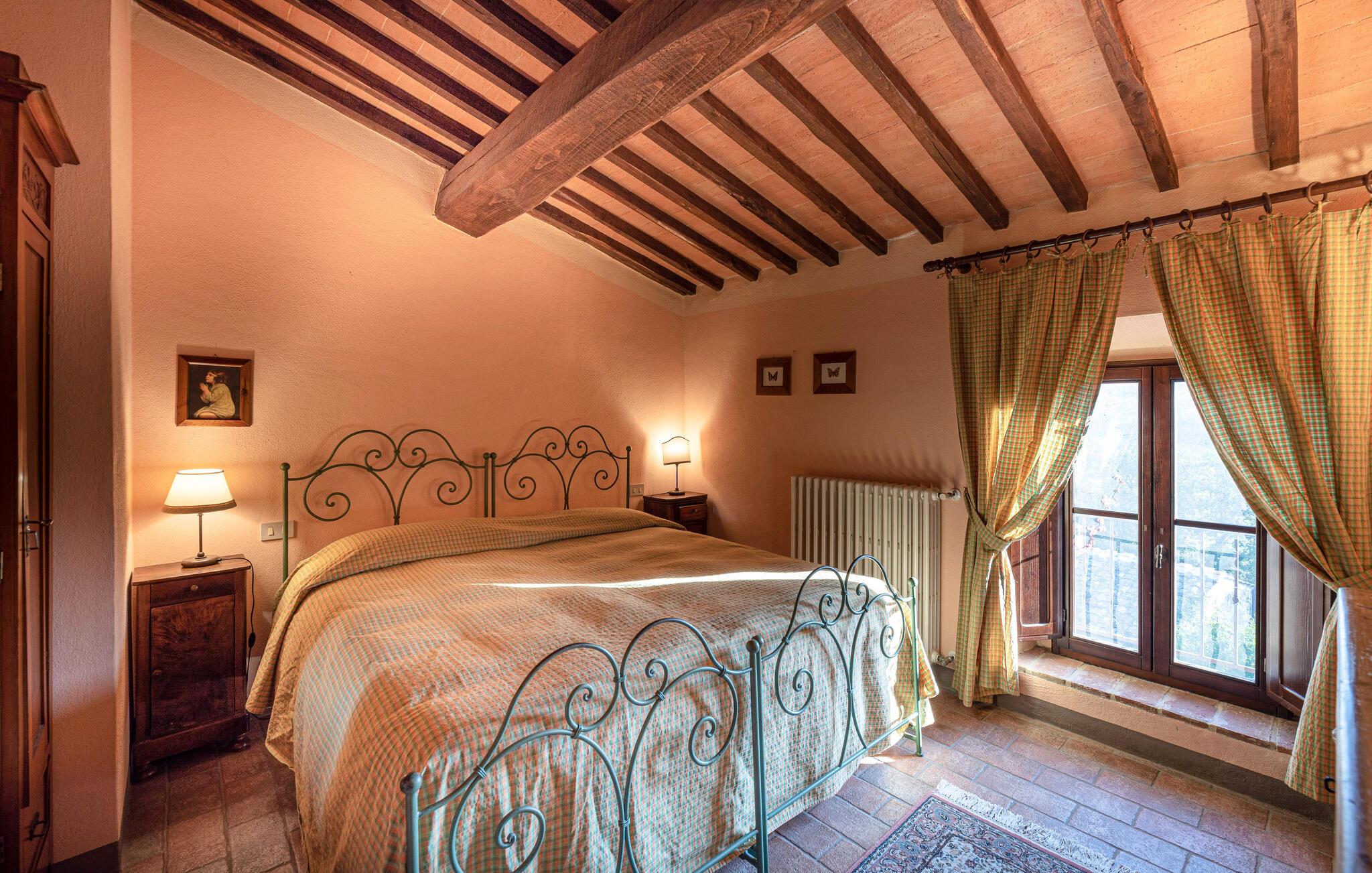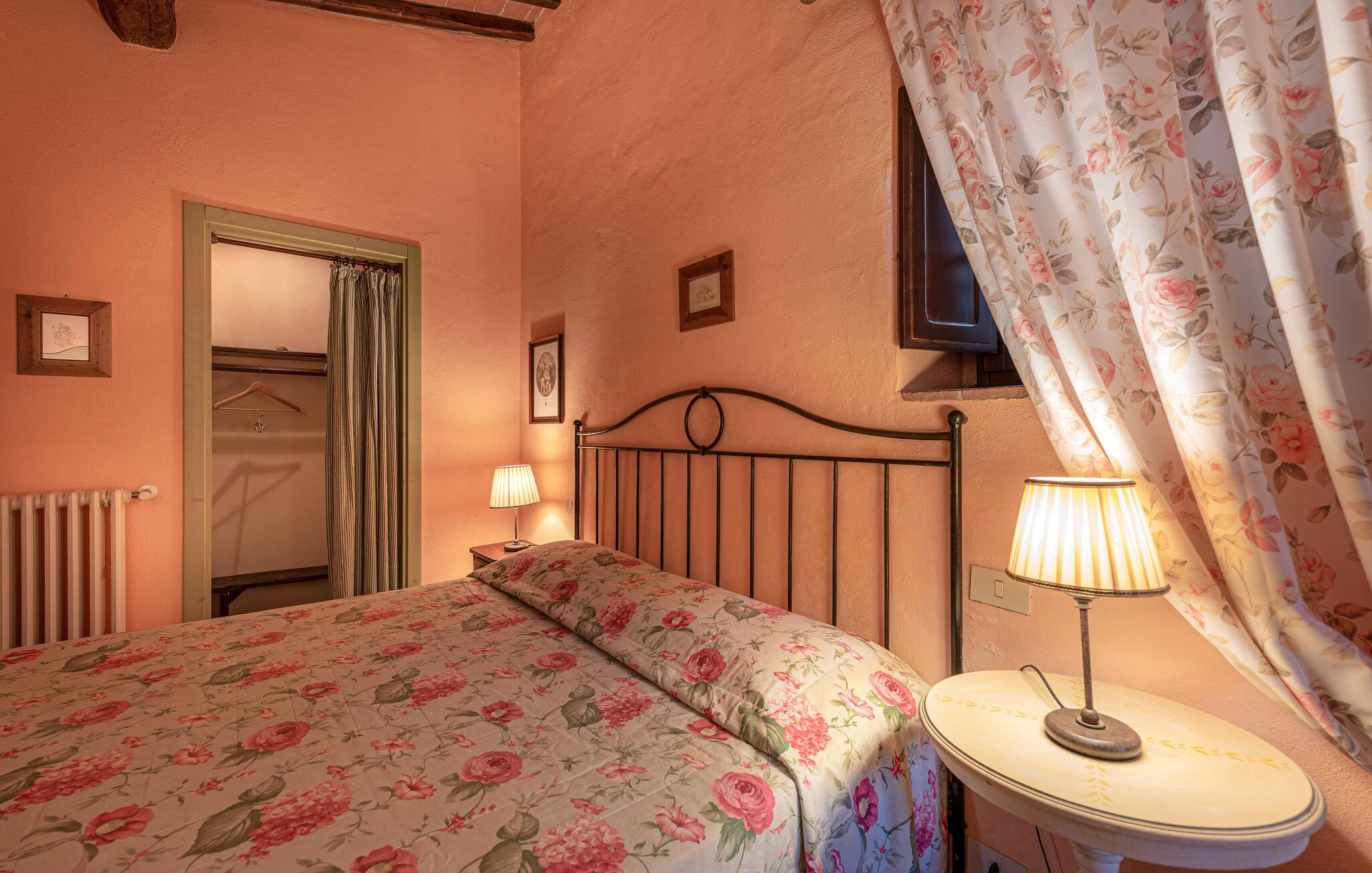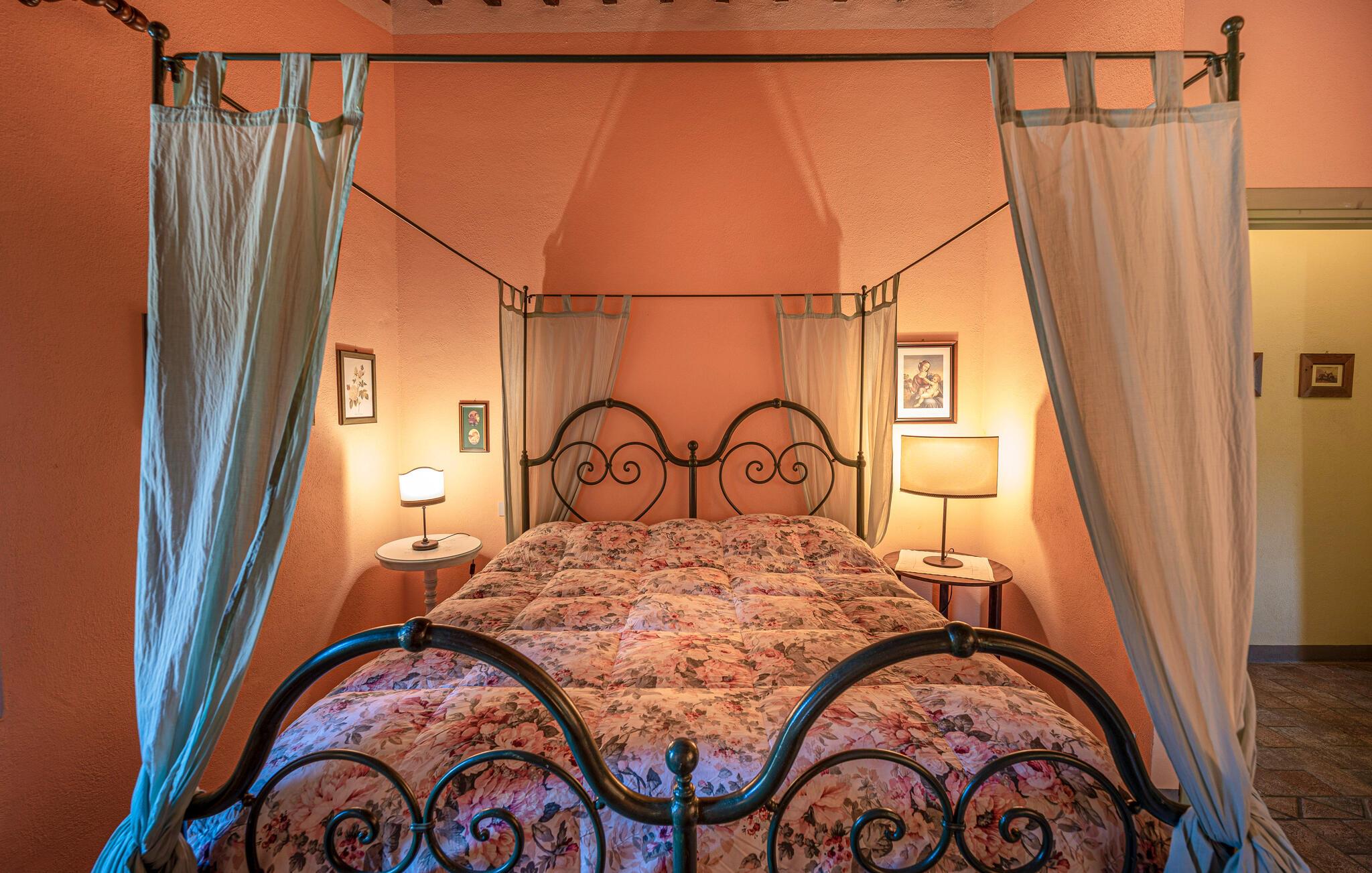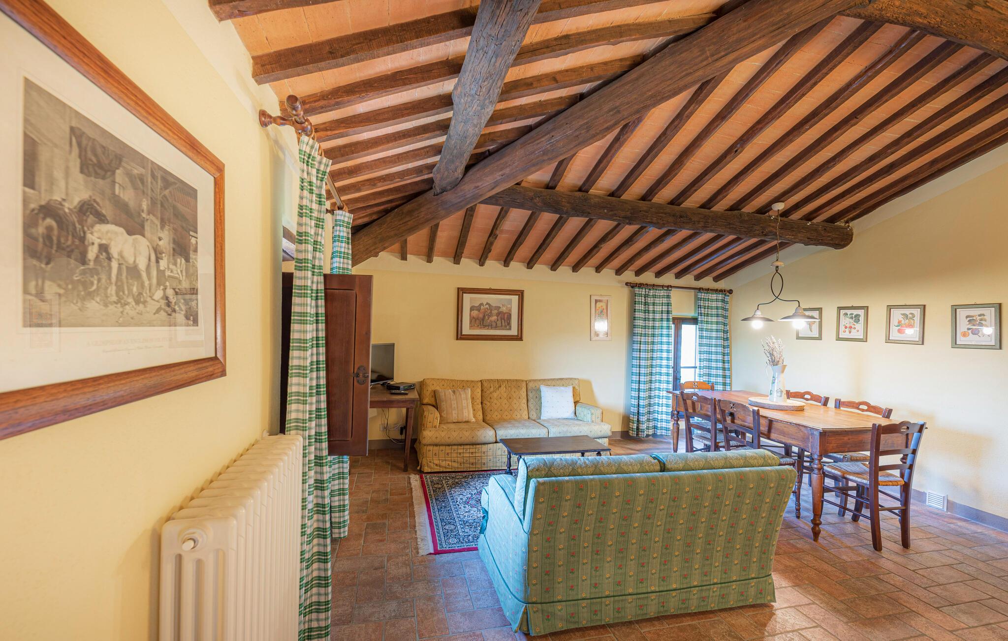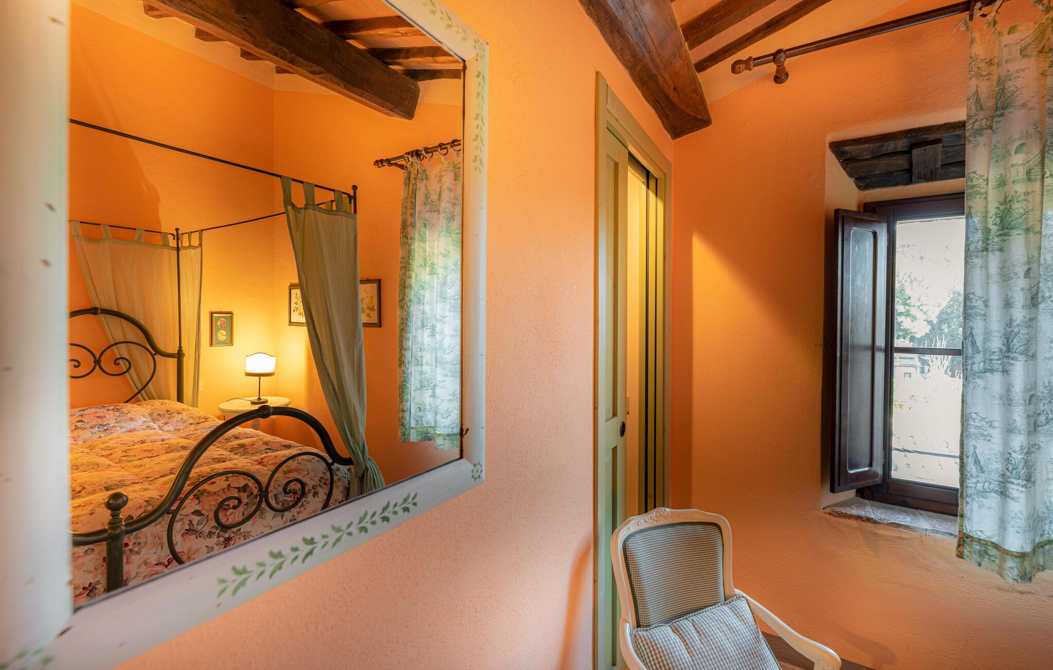 Denne hyggelige lejlighed er placeret på et karakterfuldt toscansk landsted og har fine autentiske detaljer. Synlige træbjælker i loftet og rustikke møbler skaber en historisk atmosfære, der hurtigt vil få jer til at føle jer hjemme. Slap af med god musik, nyd en sjov spilleaften eller lav lækre måltider i det moderne køkken.