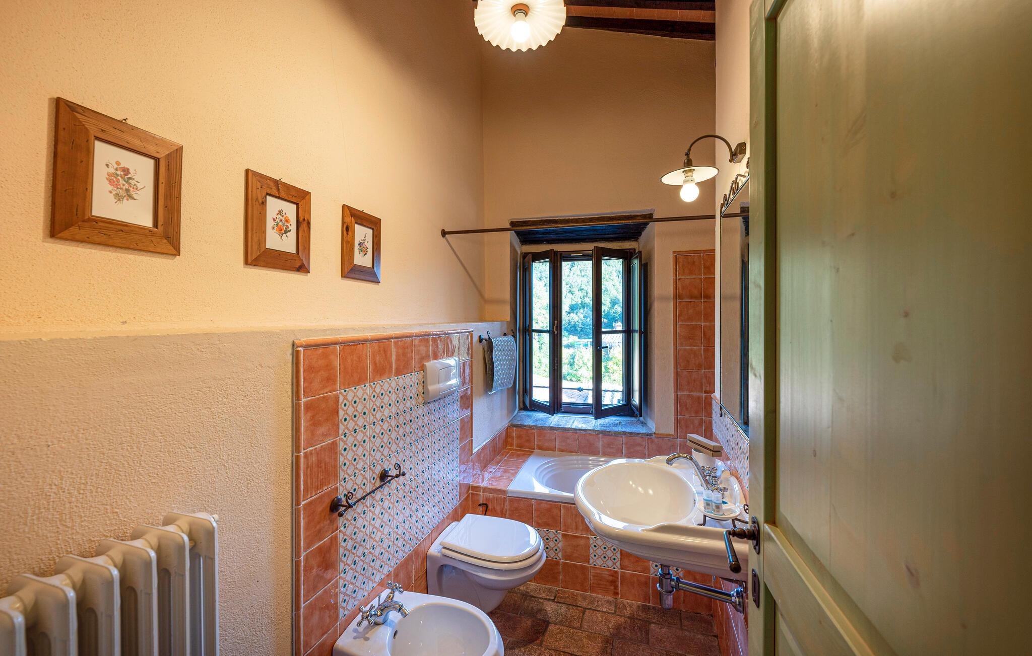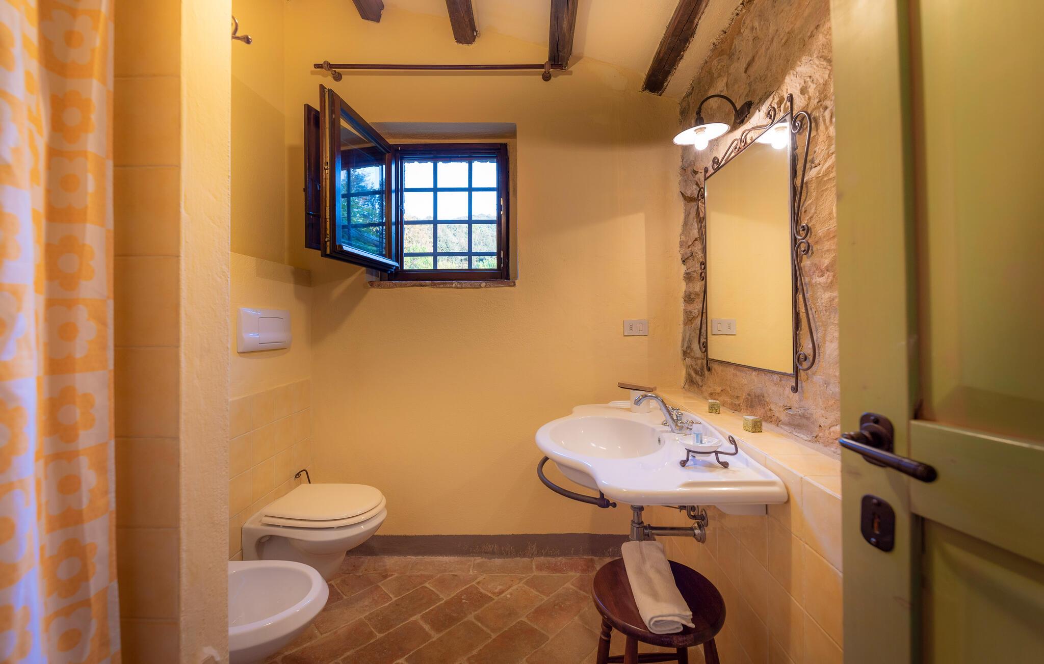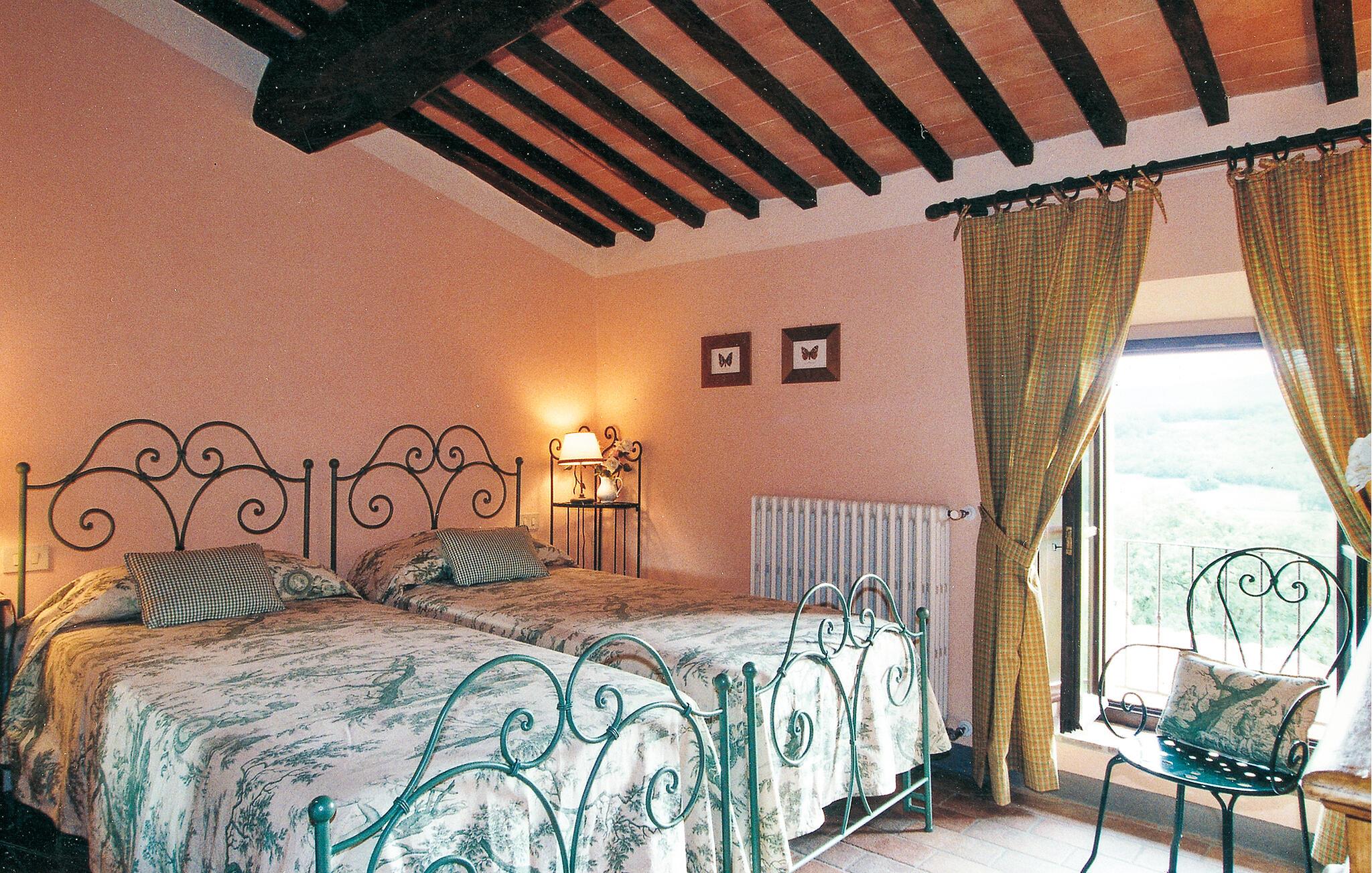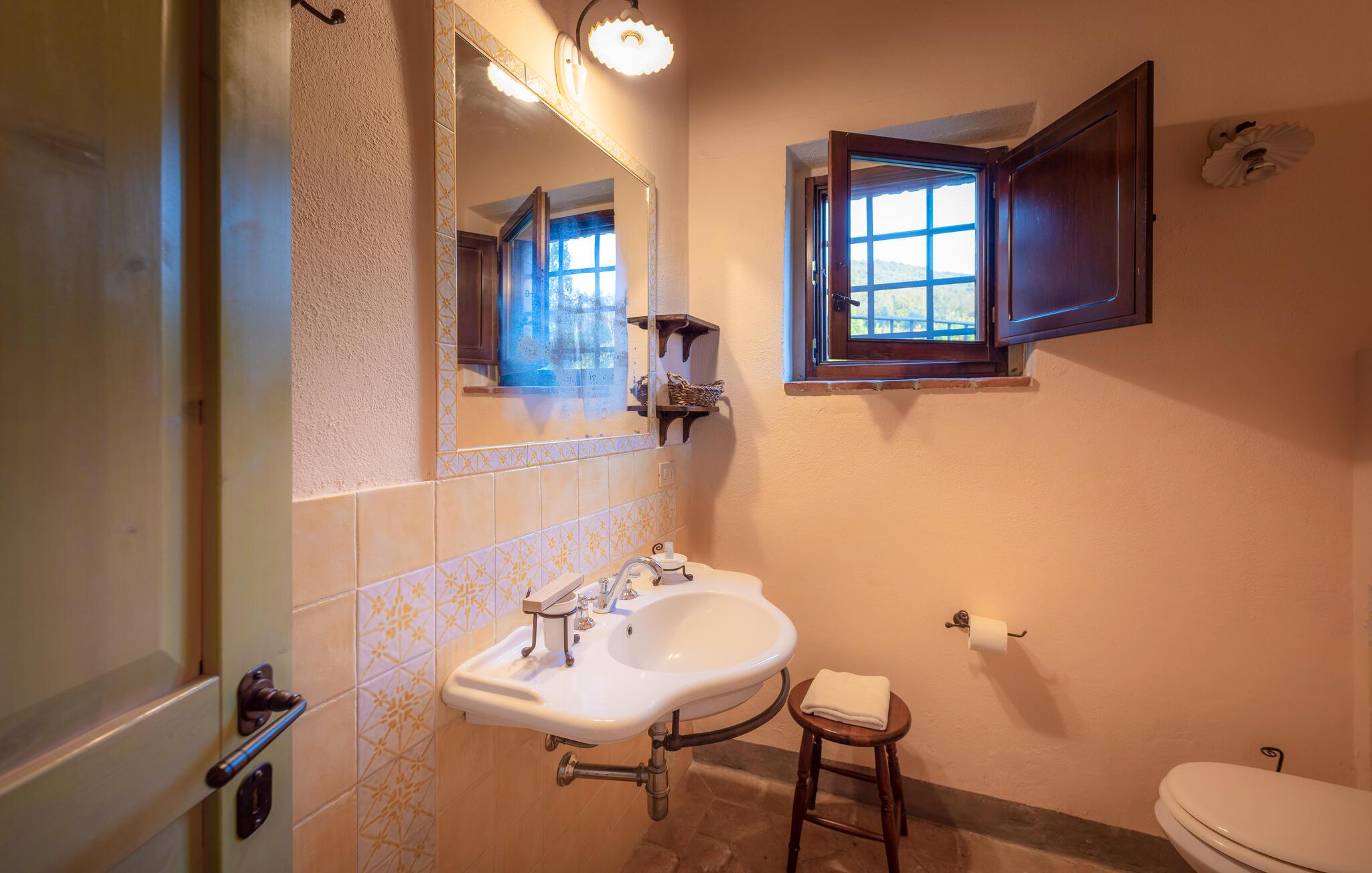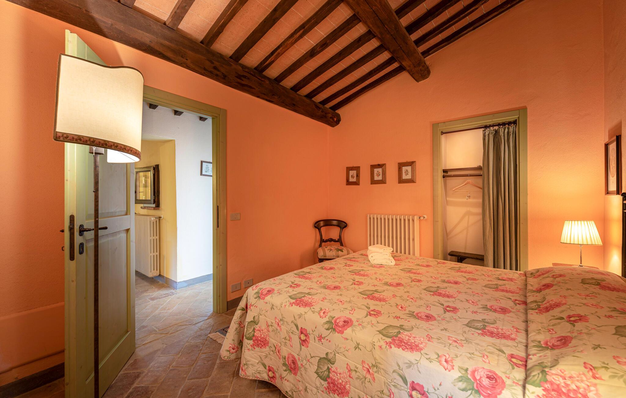 Denne hyggelige lejlighed er placeret på et karakterfuldt toscansk landsted og har fine autentiske detaljer. Synlige træbjælker i loftet og rustikke møbler skaber en historisk atmosfære, der hurtigt vil få jer til at føle jer hjemme. Slap af med god musik, nyd en sjov spilleaften eller lav lækre måltider i det moderne køkken.
