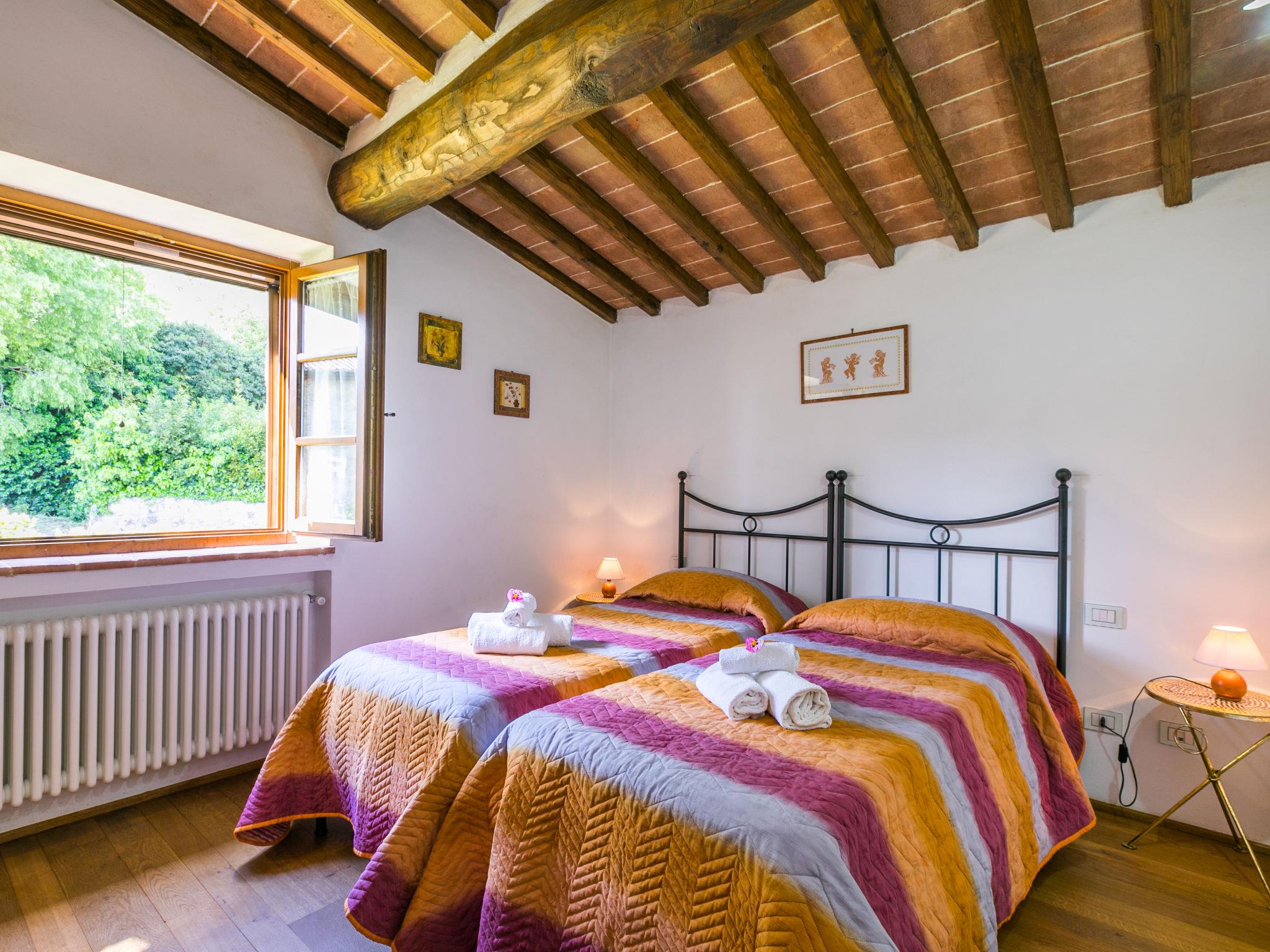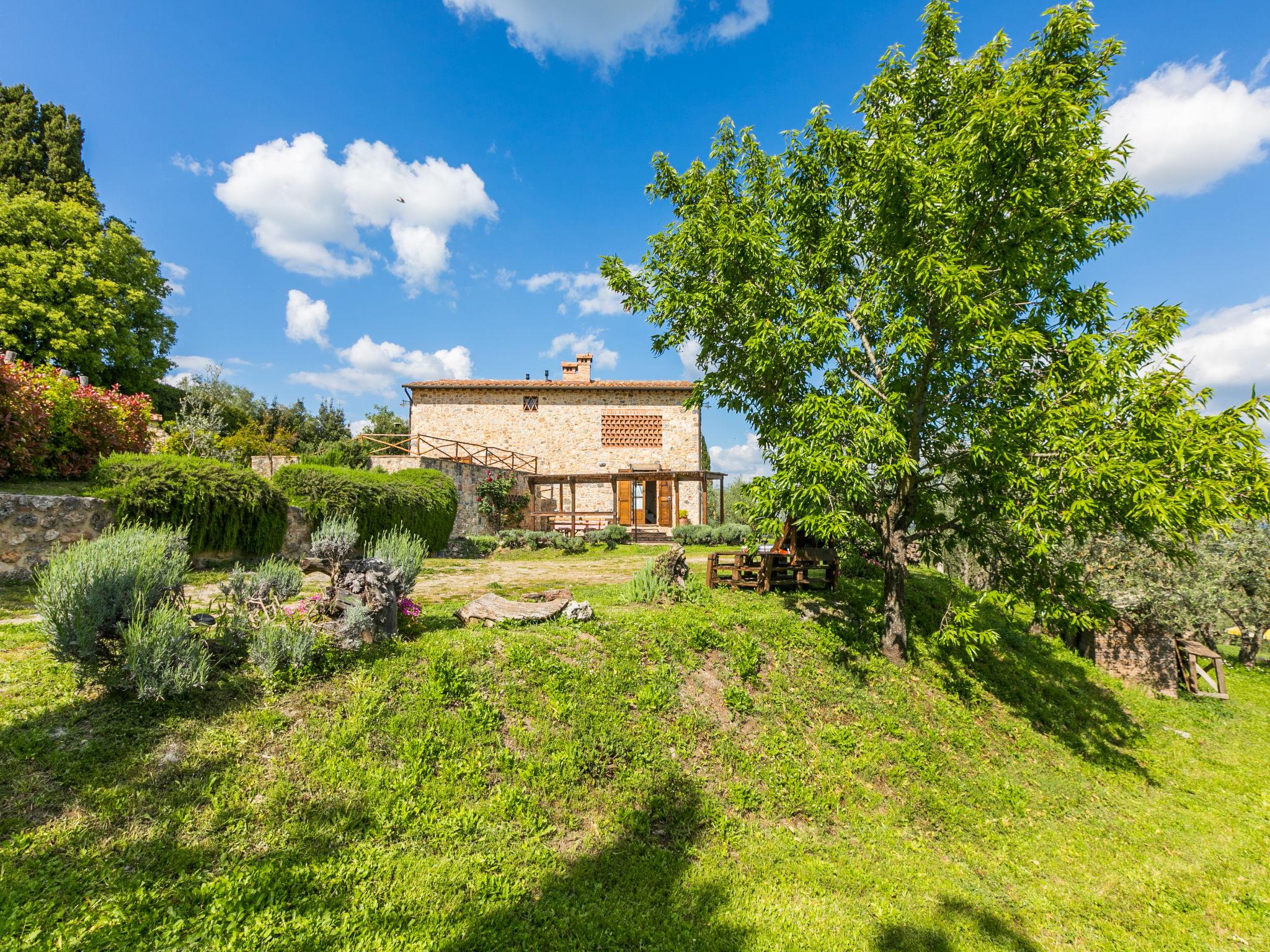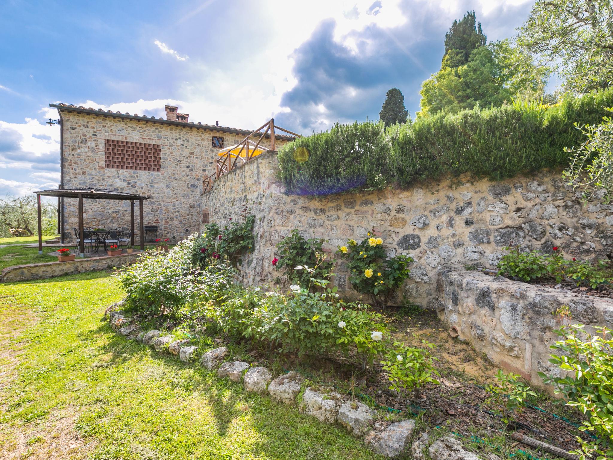 Lucciana 3 km from Casole d'Elsa: Large, comfortable house "Poggio all'Aia", 2 storeys, renovated, surrounded by meadows and vineyards. In the hamlet Lucciana 3 km from the centre of Casole d'Elsa, 11 km from the centre of Colle Val d'Elsa, 19 km from the centre of San Gimignano, in a sunny, elevated position on a slope, 60 km from the sea, in the countryside. Private: terraced garden, 5'000 m2 (fenced) with wildlife garden and trees, natural garden, meadow, swimming pool (above ground) (12 x 5 m, depth 140 cm, seasonal availability: 01.May. - 10.Oct.). Outdoor shower, terrace, garden furniture, barbecue, pool maintenance by the owner/gardener. Parking (for 4 cars) on the premises. Grocery 3 km, supermarket 11 km, restaurant 3 km, bar 3 km, bakery 3 km, bus stop "Casole d'Elsa" 3 km, railway station "Colle Val d'Elsa" 11 km, sandy beach 62 km, outdoor swimming pool 11 km, indoor swimming pool 11 km. Nearby attractions: Volterra 23 km, Siena 38 km, Firenze 64 km. Please note: baby equipment (included). Object suitable for 8 adults groups of teenagers on request only.