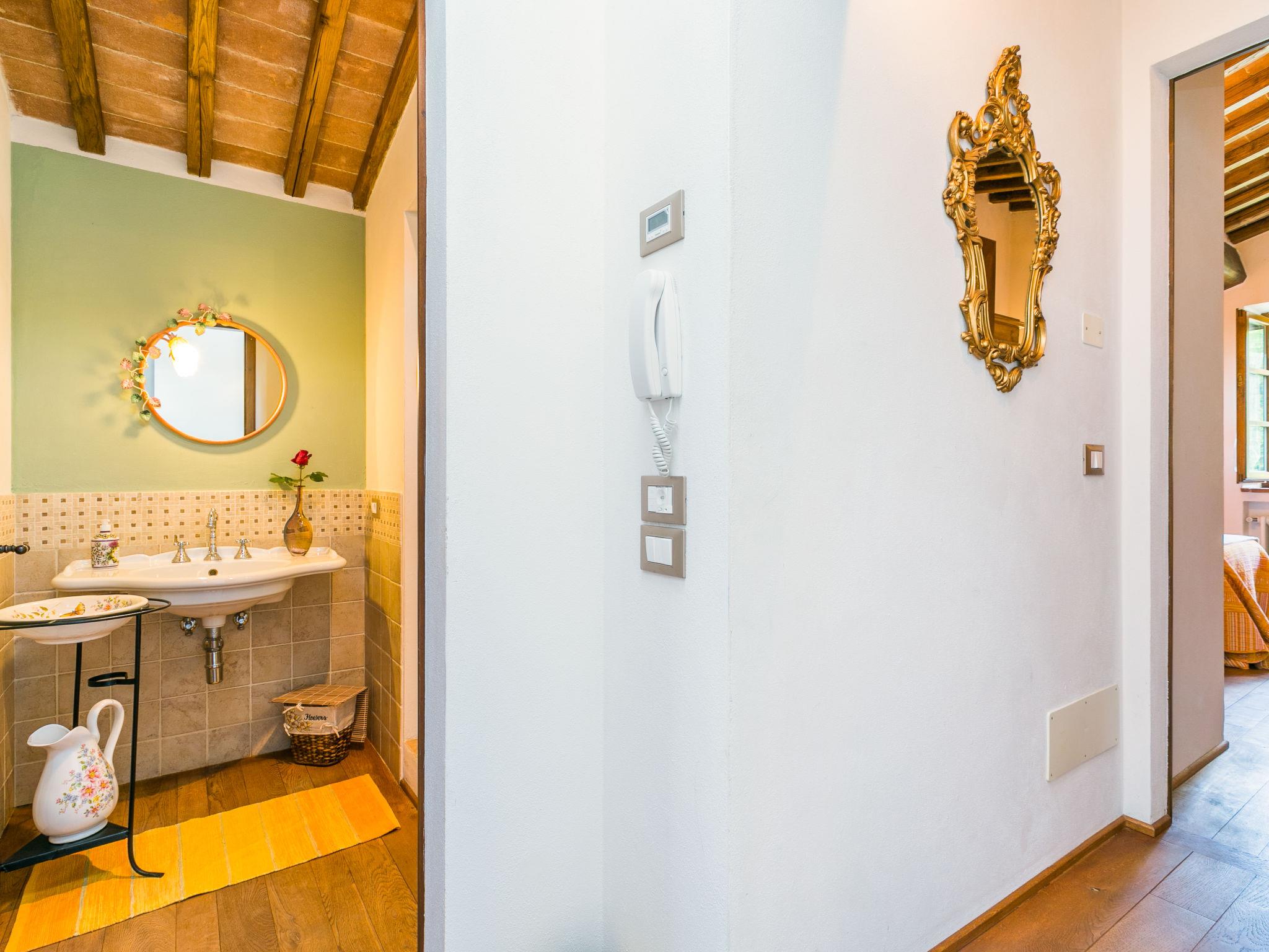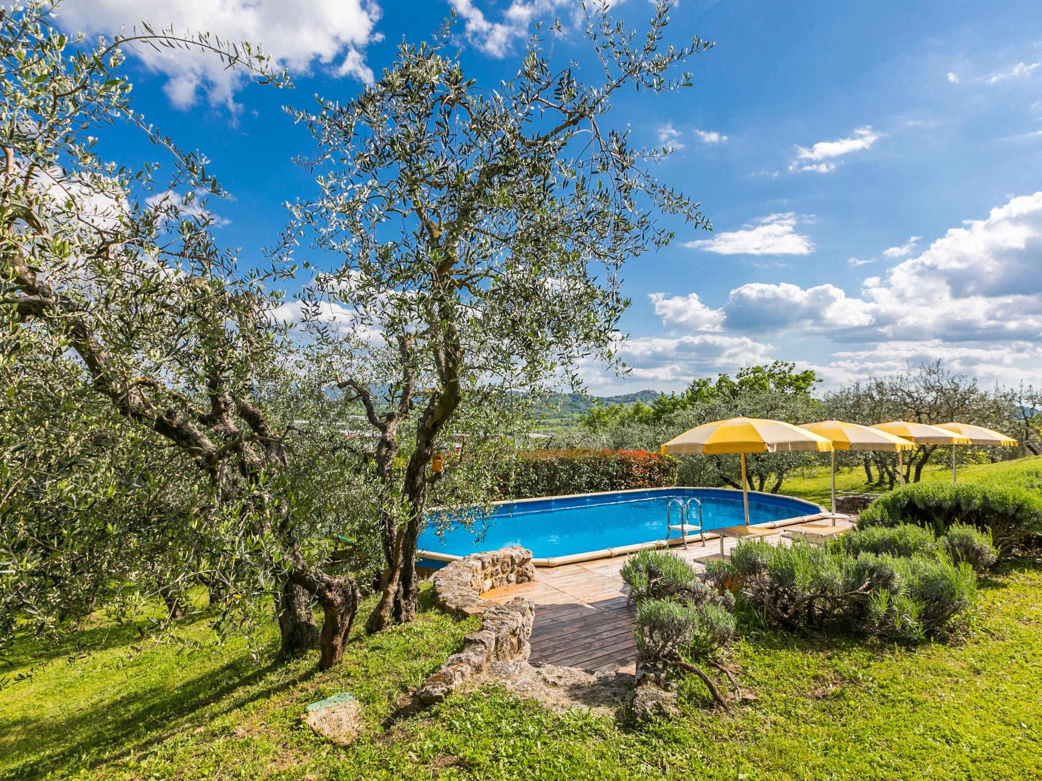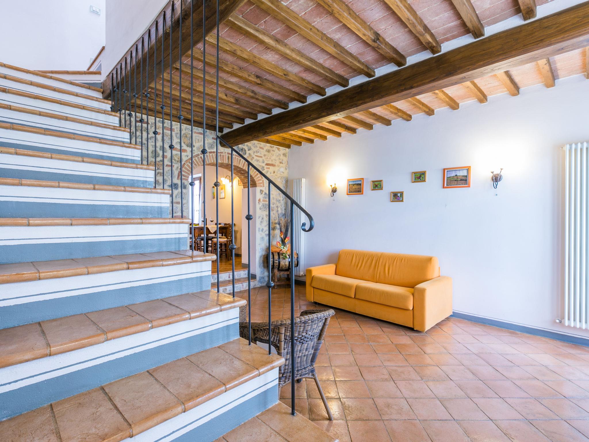 Lucciana 3 km from Casole d'Elsa: Large, comfortable house "Poggio all'Aia", 2 storeys, renovated, surrounded by meadows and vineyards. In the hamlet Lucciana 3 km from the centre of Casole d'Elsa, 11 km from the centre of Colle Val d'Elsa, 19 km from the centre of San Gimignano, in a sunny, elevated position on a slope, 60 km from the sea, in the countryside. Private: terraced garden, 5'000 m2 (fenced) with wildlife garden and trees, natural garden, meadow, swimming pool (above ground) (12 x 5 m, depth 140 cm, seasonal availability: 01.May. - 10.Oct.). Outdoor shower, terrace, garden furniture, barbecue, pool maintenance by the owner/gardener. Parking (for 4 cars) on the premises. Grocery 3 km, supermarket 11 km, restaurant 3 km, bar 3 km, bakery 3 km, bus stop "Casole d'Elsa" 3 km, railway station "Colle Val d'Elsa" 11 km, sandy beach 62 km, outdoor swimming pool 11 km, indoor swimming pool 11 km. Nearby attractions: Volterra 23 km, Siena 38 km, Firenze 64 km. Please note: baby equipment (included). Object suitable for 8 adults groups of teenagers on request only.