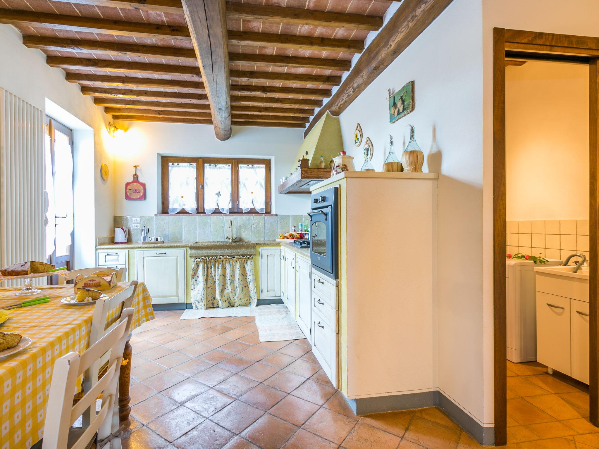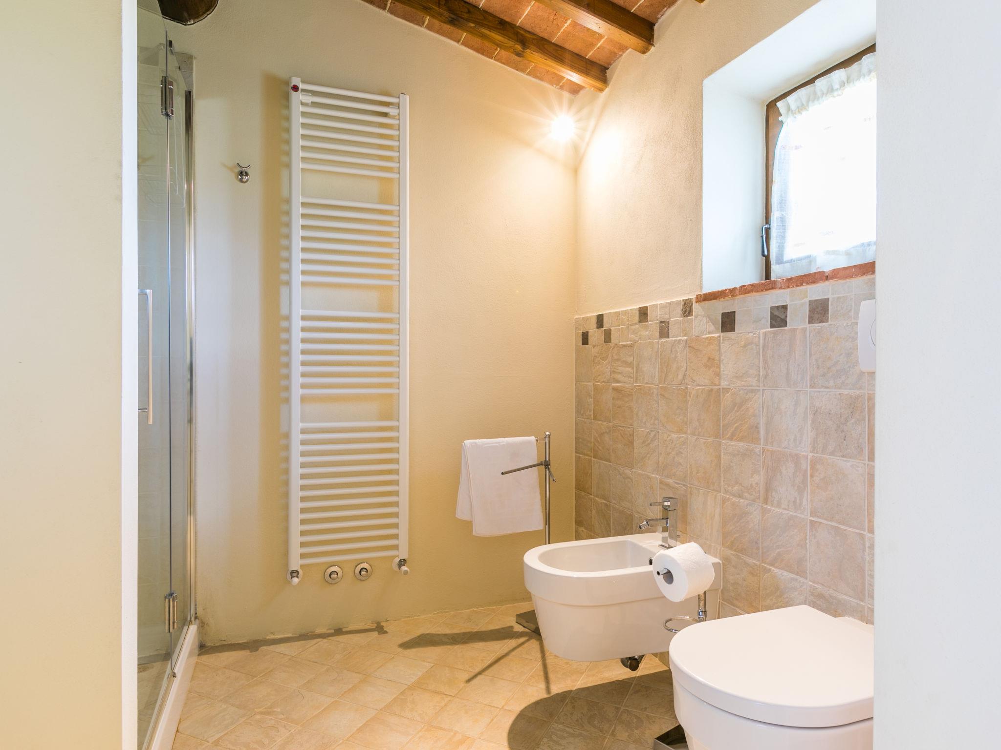 "Poggio all'Aia", 6-room house 160 m2 on 2 levels. Object suitable for 8 adults. Fully renovated, beautiful and tasteful furnishings: open large living room with open-hearth fireplace, kitchen corner, satellite TV, radio and CD-player. Exit to the terrace. Living room with satellite TV, radio and CD-player. Exit to the terrace. Large, open kitchen (oven, dishwasher, 5 gas rings, freezer, electric coffee machine) with dining table. Exit to the terrace. 2 showers/bidet/WC. Upper floor: 2 double bedrooms. 2 rooms, each room with 2 beds (80 cm). Bath/bidet/WC, shower/bidet/WC. Gas heating (extra). Natural stone floors. Comfortable furnishings in the country house style. 3 terraces. Terrace furniture, barbecue (portable), deck chairs. Facilities: washing machine, children's high chair, baby cot for up to 2 year olds, hair dryer. Internet (WiFi, free). Parking (4 cars). Please note: suitable for families. Non-smoking house. Maximum 3 pets/ dogs allowed. No internal connecting door between the separated properties. When there are less than the maximum number of guests staying at the property, not all of the bedrooms will be available for use. When there are less than the maximum number of guests staying at the property, not all of the housing units will be available for use. No mandatory extra charges to be paid on-site except for local tax. Bedlinen, towels, final cleaning and all energy costs are included. IT052004C27E6QE9DF,IT052004C225UFVFUA
