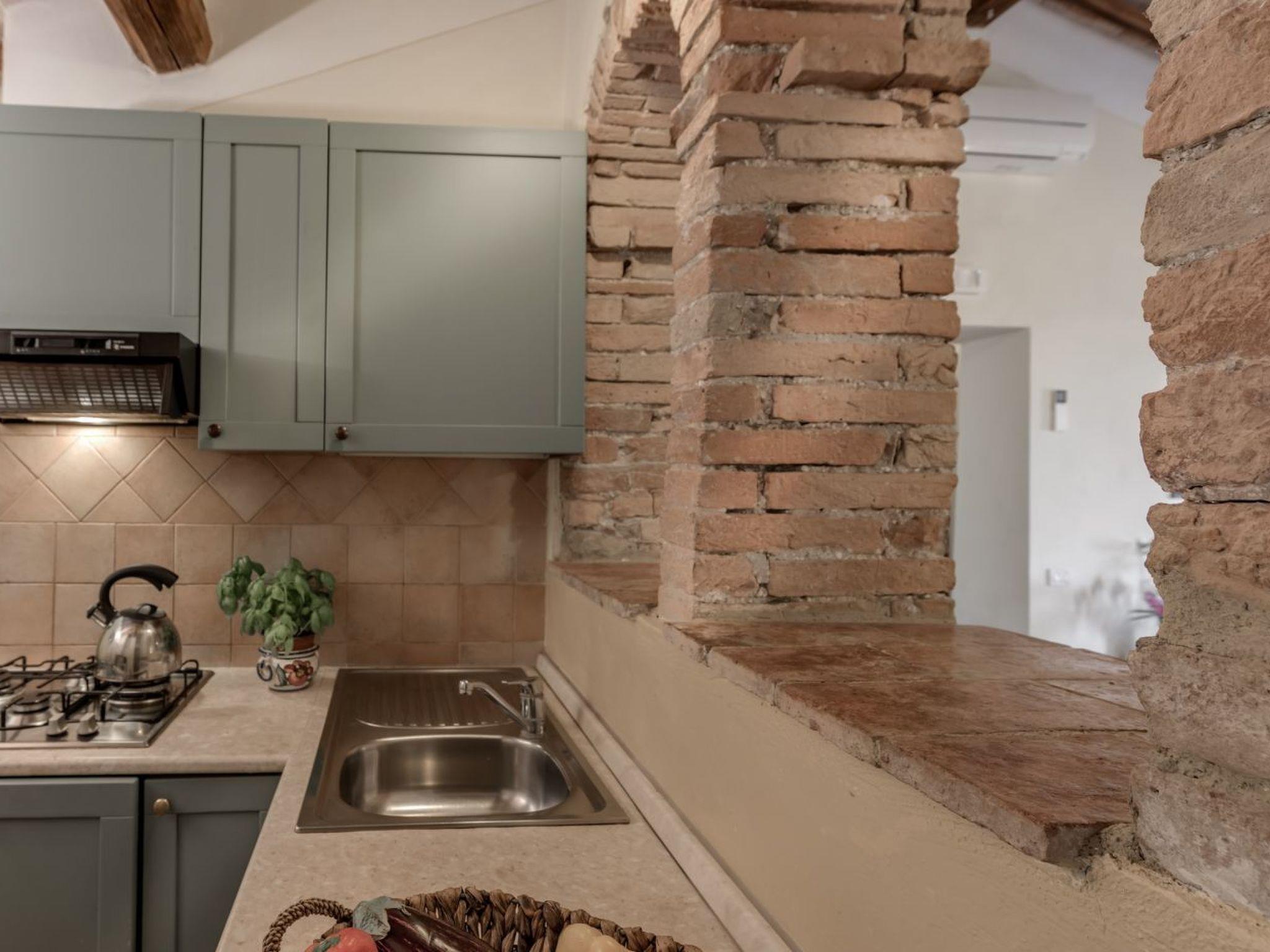 The flat is only 3 kilometres from the nearest centre, where guests can find grocery shops and other essential services. The surrounding area is rich in opportunities to explore the Tuscan countryside, from its vineyards and olive groves to characteristic villages full of history and culture. The presence of an electric car charging station nearby also makes this flat a considered choice for those wishing to explore the region in a sustainable manner.