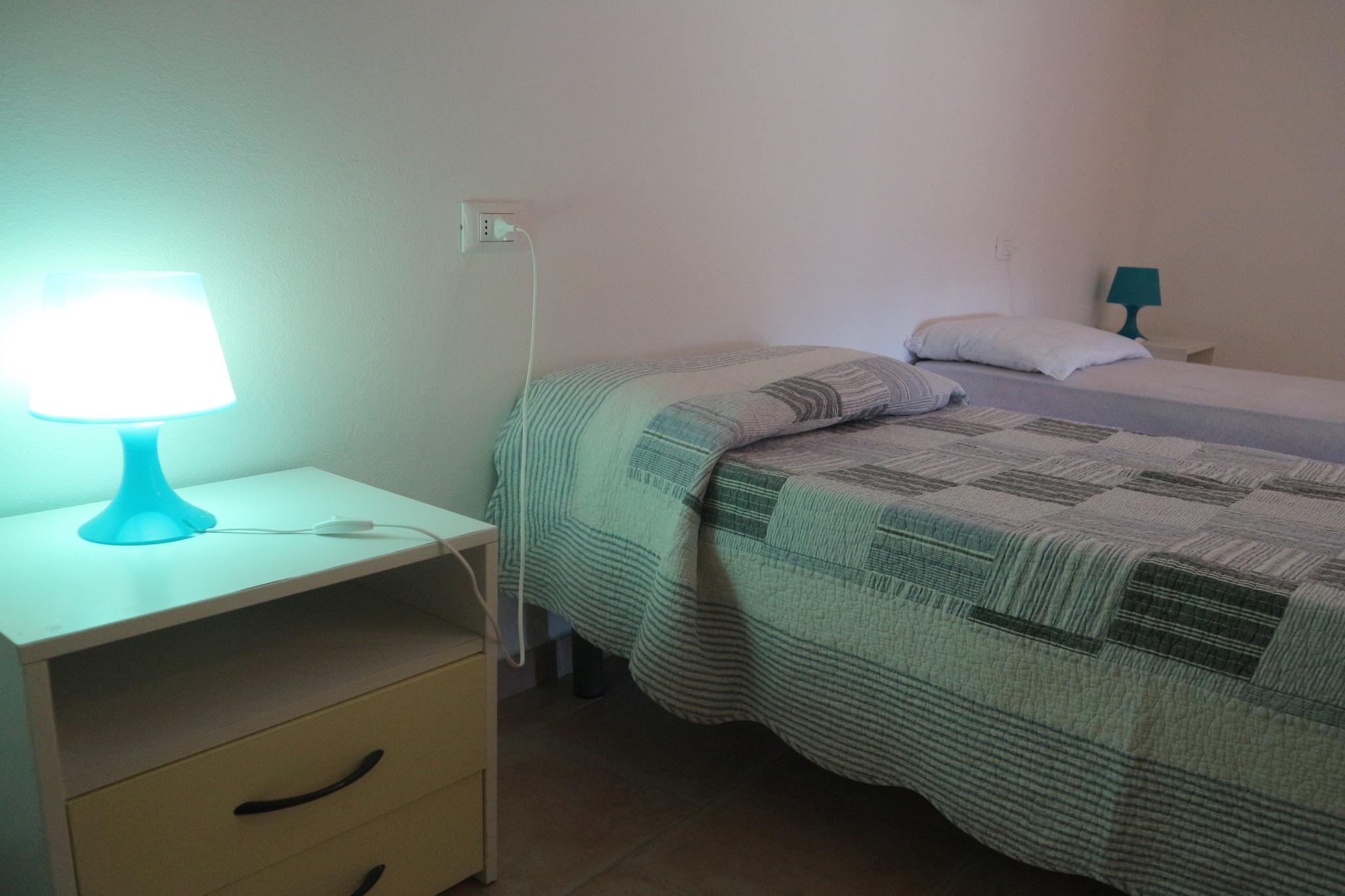 Stueetage: (køkken-alrum(komfur(Komfur med fire kogeplader), ovn), soveværelse(køjeseng, barneseng), badeværelse(bruser), klimaanlæg, have, havemøbler, grill) På 1. etage: (soveværelse(enkeltseng, enkeltseng))