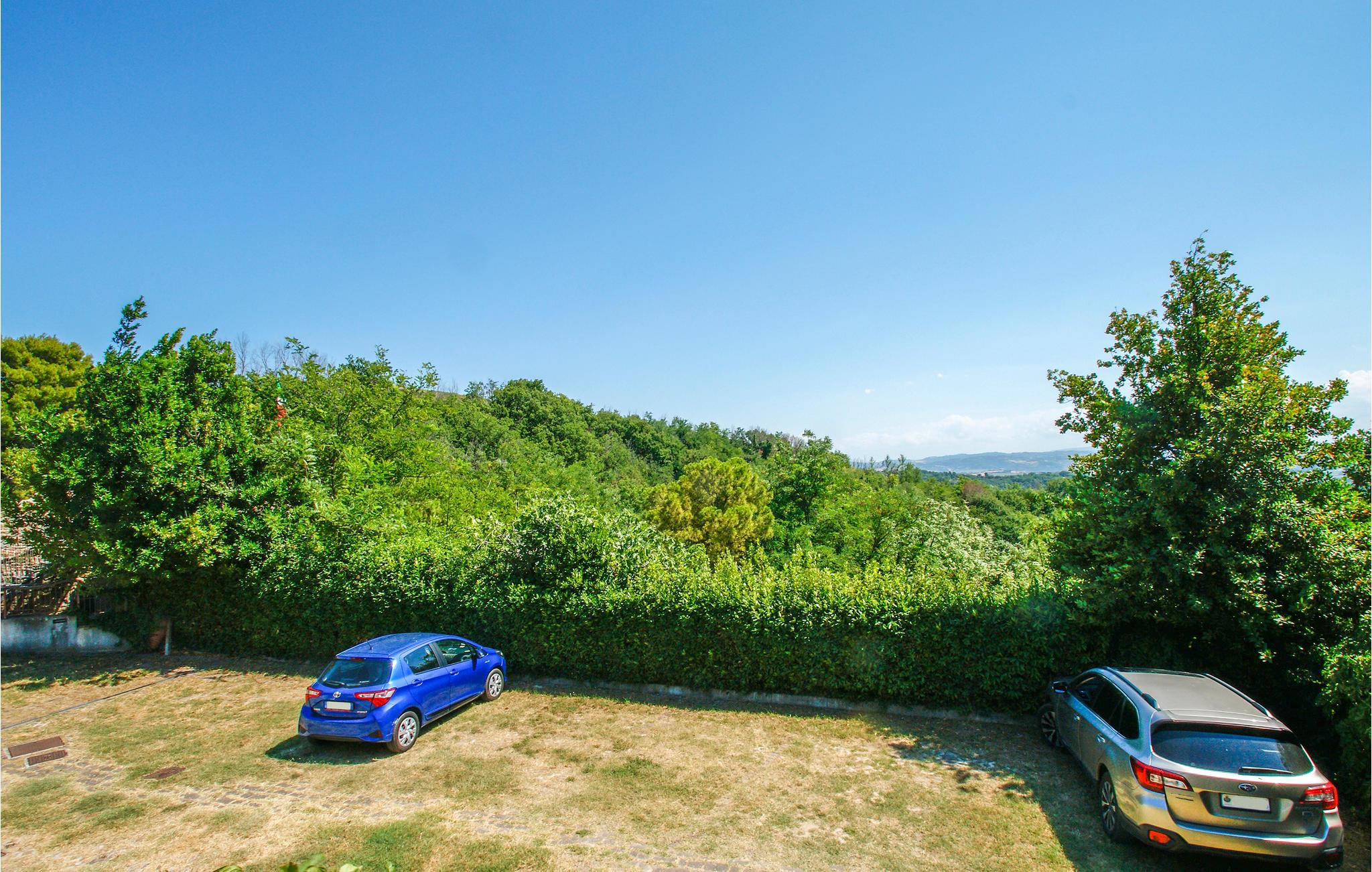 Huset byder på et rummeligt, lyst soveværelse med udsigt til bjergene og en komfortabelt møbleret stue.