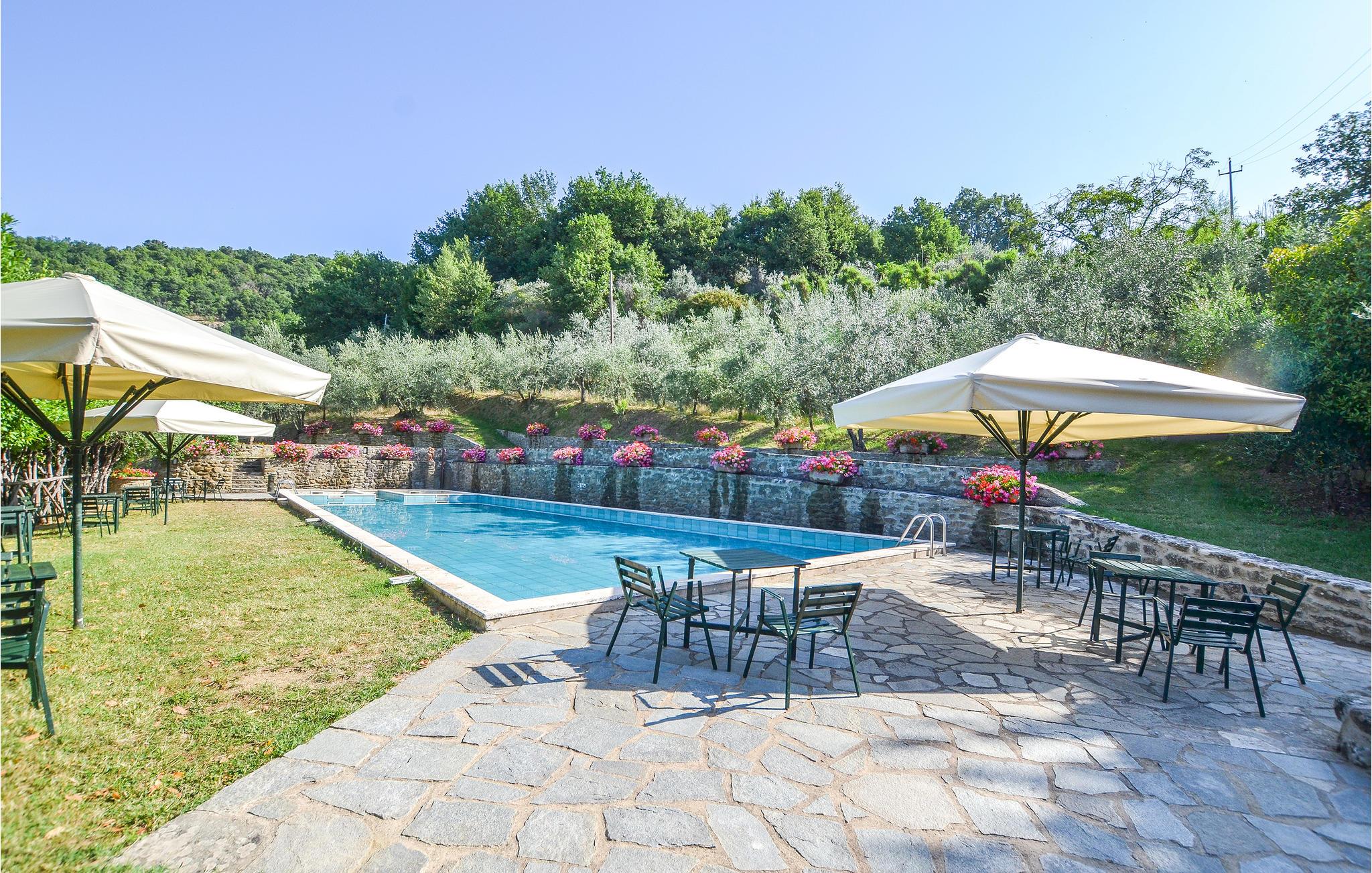 Poolen har et børnebassin og et spabadområde. Feriehuset er ideelt beliggende til at besøge Arezzo (40 km) og dets smukke omgivelser samt andre interessante byer som Firenze (40 km), Siena (57 km), Chianti-bakkerne (30 km) og andre vinproduktionsområder (Via dei Colli Aretini, Setteponti).