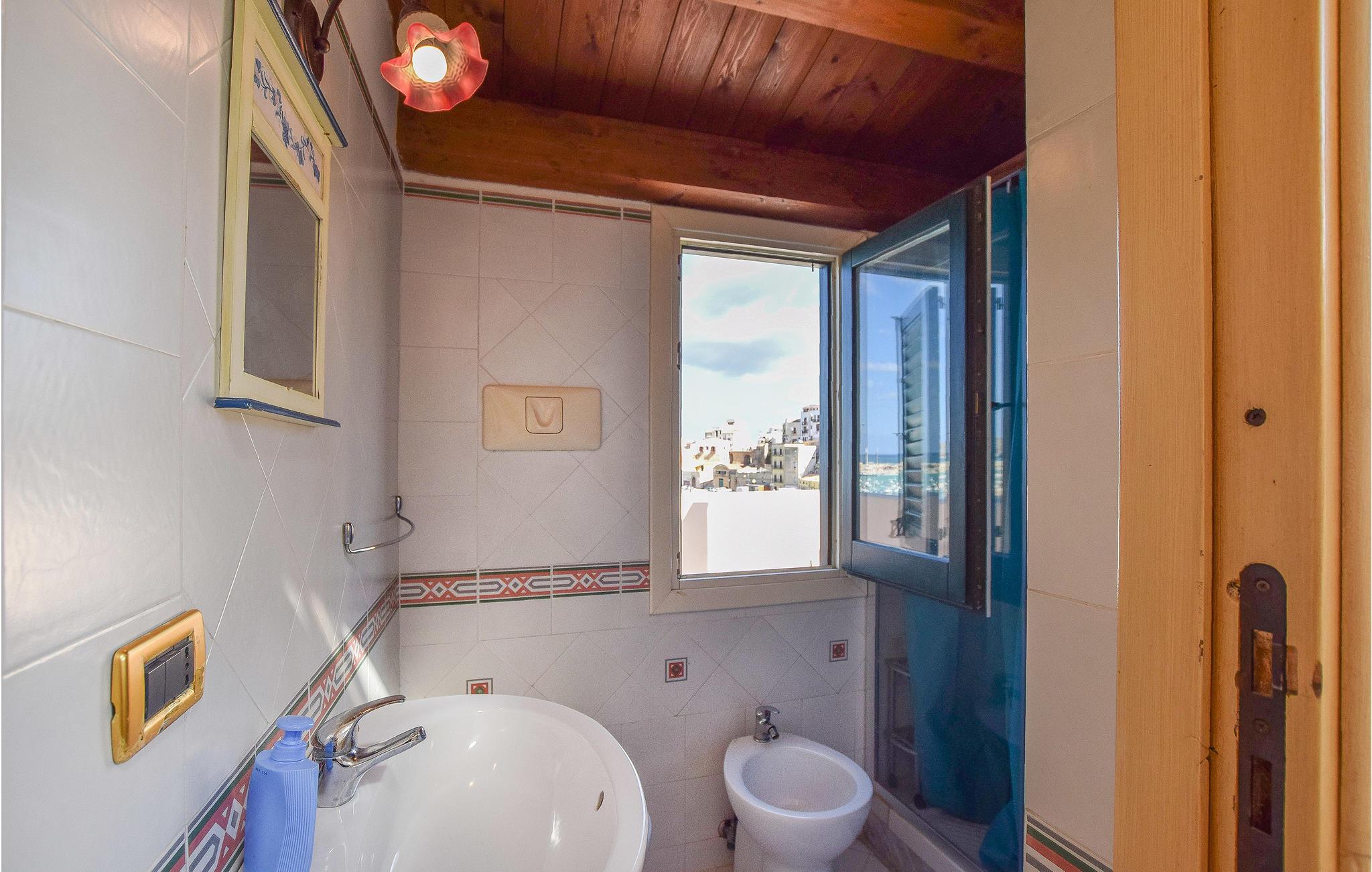 Lejligheden ligger på anden sal i en karakteristisk bygning. Det har et soveværelse med dobbelt sovesofa og havudsigt fra den store hjørnebalkon, der fører til soveværelset (gennemgangsrum) med en køjeseng, et dobbeltværelse og badeværelse med bruser. Ovenpå er stue/køkkenområdet med en anden dobbelt sovesofa og vidunderlig havudsigt, et vaskerum og et andet badeværelse med bruser. Smuk terrasse udstyret til udendørs spisning og afslapning i solen med en spektakulær udsigt over havnen.
