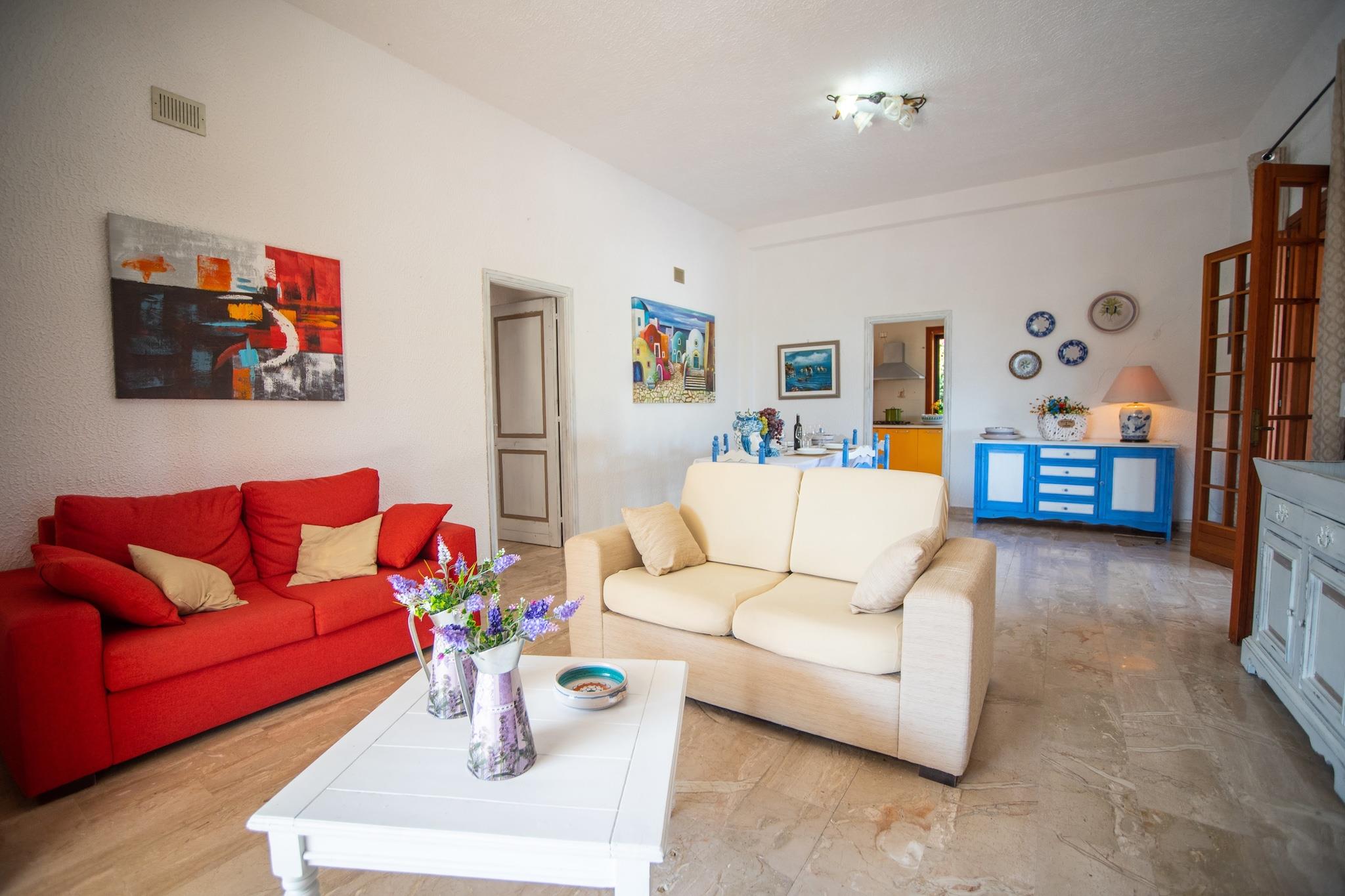 Dette charmerende feriehus ligger i Castellammare del Golfo på Sicilien. 5 soveværelser kan rumme 9 gæster. Det er perfekt til en ferie med din familie eller med en gruppe venner. Villaen har en privat swimmingpool, hvor du kan slappe af på en varm sommerdag. Villaen er perfekt beliggende til at udforske området. På 150 m er der en vidunderlig sandstrand, og 1 km fra centrum af Scopello ligger med flere restauranter og et supermarked. Boligen er fuldt udstyret og har en have at slappe af i. Der er en smuk veranda med møbler til at nyde udsigten udenfor, og der er en have, hvor du kan vandre. Der er aircondition samt varmeanlæg for at gøre opholdet endnu mere behageligt. Du kan dykke i ferskvandsbassinet i løbet af dagen. Du har også et solarium til din rådighed. Den nærmeste lufthavn er Palermo lufthavn (55 km).