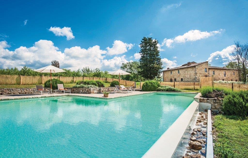 Rummeligt feriehus bygget i natursten, med en beliggenhed kun et par kilometer fra landsbyen Castellina i Chianti, på et af de vigtigste landbrug i Chianti-Classico, i dominerende omgiveler i bakkerne. Smuk udsigt over landskabet, vinbjergene og olivenlunde. Gennem en omhyggelig renovering er huset genopstået i sin oprindelige pragt. Til gæsterne er der fælles: have, udendørsområde og en l-formet pool. Ejendommen ligger centralt mellem Chianti-området og kunstbyerne Siena og Firenze. Internet ved receptionen (1 km). Tilkørsel ad den 300 m grusvej. To parkeringspladser på grunden. Inklusive lejen er to timers rengøring om dagen, fra mandag til og med lørdag. På bestilling og betaling på stedet: husholdningshjælp (yderligere timer) og kok. Buffet med regionale specialiteter, en gang ugentligt mod bestilling og betaling på stedet. Klimaanlæg i soveværelserne på første sal. Ekstra mod betaling på stedet: varme. I de samme bakkede landskabler ligger andre skønne landhuse, alle med en kilometers afstand. Alle huse er renoveret i typisk toskansk stil: husnumrene er ITC800, 801, 802 og ITC730. I området er der mange restauranter hvor I også kan nyde de typisk toskanske lækkerier og ikke mindst de gode vine. I kan gå dejlige ture i de maleriske landskaber. Radda i Chianti 16 km, Siena og San Gimignano 20 km, Firenze 50 km.