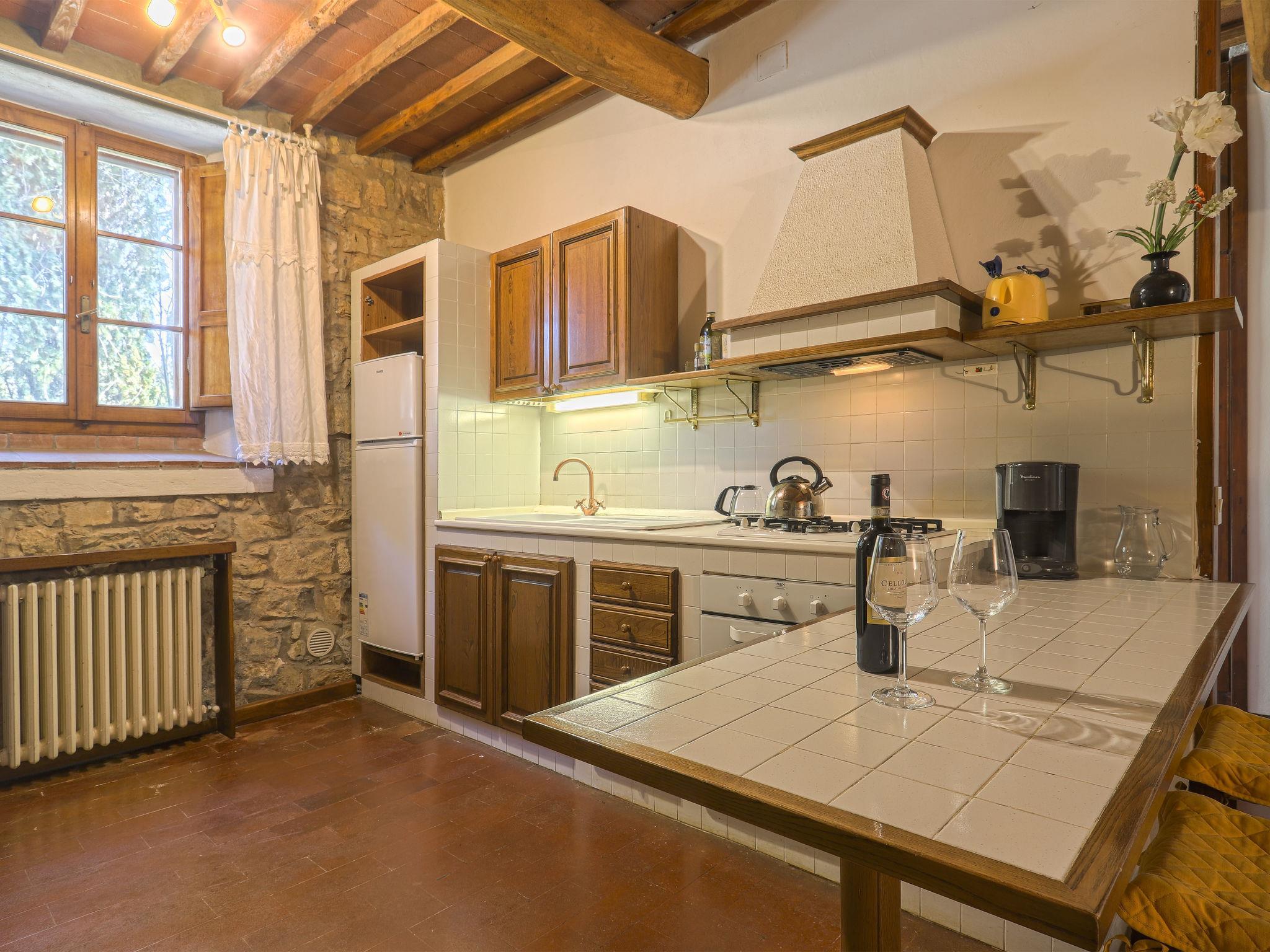 Beautiful on a vinyard country house "Cellole", detached, surrounded by trees and vineyards. 6 apartments in the residence. 2.5 km from the centre of Castellina in Chianti, 11 km from the centre of Radda in Chianti, outside the resort, 17 km from the centre of Siena, in an elevated position on a slope, 92 km from the sea, in the countryside. For shared use: property 11 ha with plants and trees, swimming pool (12 x 6 m, depth 120 - 220 cm, seasonal availability: 15.Apr. - 31.Oct.). Shower/WC in the pool area, pergola, terrace, garden furniture, barbecue. In the complex: reception, WiFi, washing machine (extra) (for shared use, extra). Motor access (150 m via unmade road). Parking on the premises. Supermarket 2.5 km, bus stop 500 m, railway station "Poggibonsi" 14 km, sandy beach "Marina di Bibbona" 92 km. Nearby attractions: Monteriggioni 10 km, Wine area Chianti Classico 10 m. Local sale of farm products.