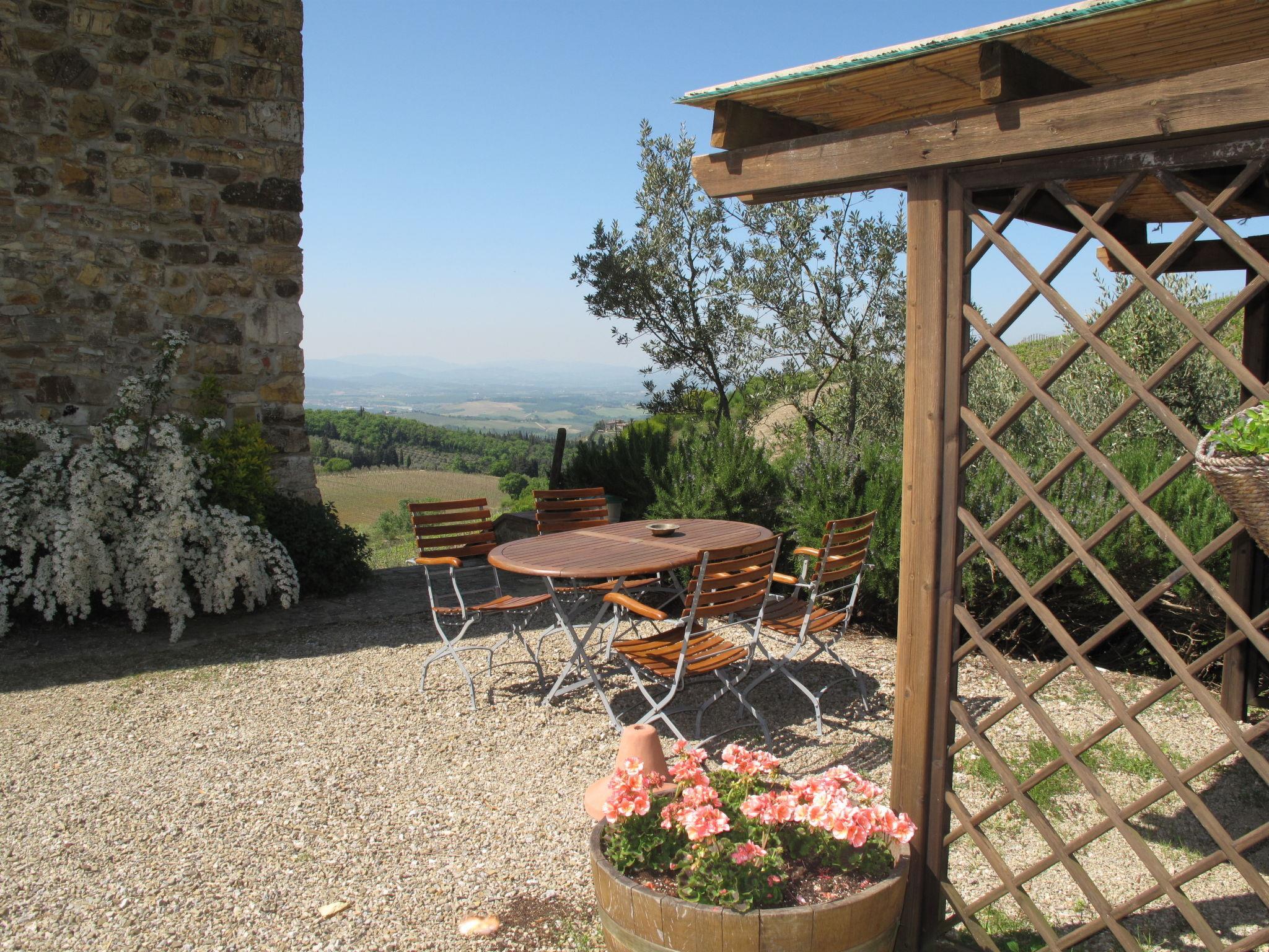 Beautiful on a vinyard country house "Cellole", detached, surrounded by trees and vineyards. 6 apartments in the residence. 2.5 km from the centre of Castellina in Chianti, 11 km from the centre of Radda in Chianti, outside the resort, 17 km from the centre of Siena, in an elevated position on a slope, 92 km from the sea, in the countryside. For shared use: property 11 ha with plants and trees, swimming pool (12 x 6 m, depth 120 - 220 cm, seasonal availability: 15.Apr. - 31.Oct.). Shower/WC in the pool area, pergola, terrace, garden furniture, barbecue. In the complex: reception, WiFi, washing machine (extra) (for shared use, extra). Motor access (150 m via unmade road). Parking on the premises. Supermarket 2.5 km, bus stop 500 m, railway station "Poggibonsi" 14 km, sandy beach "Marina di Bibbona" 92 km. Nearby attractions: Monteriggioni 10 km, Wine area Chianti Classico 10 m. Local sale of farm products.