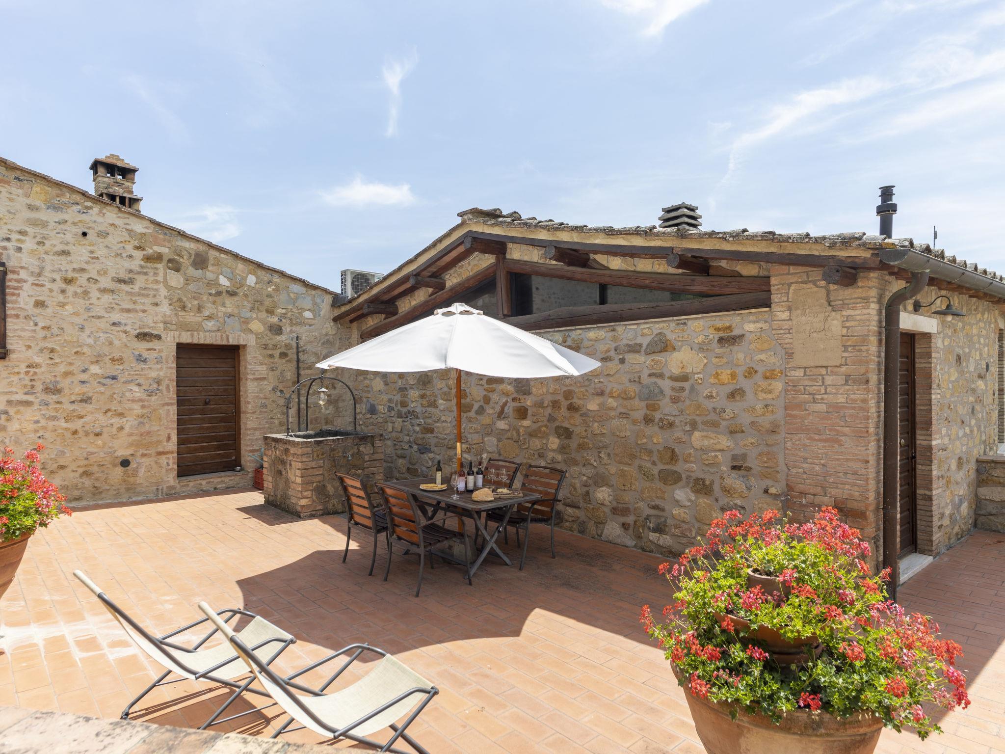 Chianti Classico 14 km from Castellina in Chianti: Dated back to the 1600, is surrounded by the magnificent Tuscan landscape, among vineyards and olive groves. Set on a small working farm there are the main house and the barn now divided in 3 units. Each apartment has independent entrance and outdoor private area. Rustic large working farm "Le Buche". 14 km from the centre of Castellina in Chianti, 38 km from the centre of Siena, 49 km from the centre of Firenze, in a quiet, sunny position, in the countryside. For shared use: swimming pool fenced (6 x 12 m, depth 130 - 230 cm, seasonal availability: 12.Apr. - 01.Nov.). Table tennis, barbecue. In the house: central heating system, heating to be paid on the spot, heating available only from 01.Nov. - 15.Apr.. Motor access to the house (600 m via unmade road). Parking on the premises. Shop 6 km, grocery 6 km, restaurant 6 km, bus stop 6 km, railway station "Poggibonsi" 6 km, thermal baths "Rapolano Terme" 64 km. Golf course (9 hole) 10 km, tennis 6 km, riding stable 10 km. Nearby attractions: Barberino Val D'elsa 16 km, San Gimignano 21 km, Monteriggioni e San Donato 22 km, Radda in Chianti 24 km, Badia a Passignano 25 km, Volterra 40 km. Local sale of farm products.