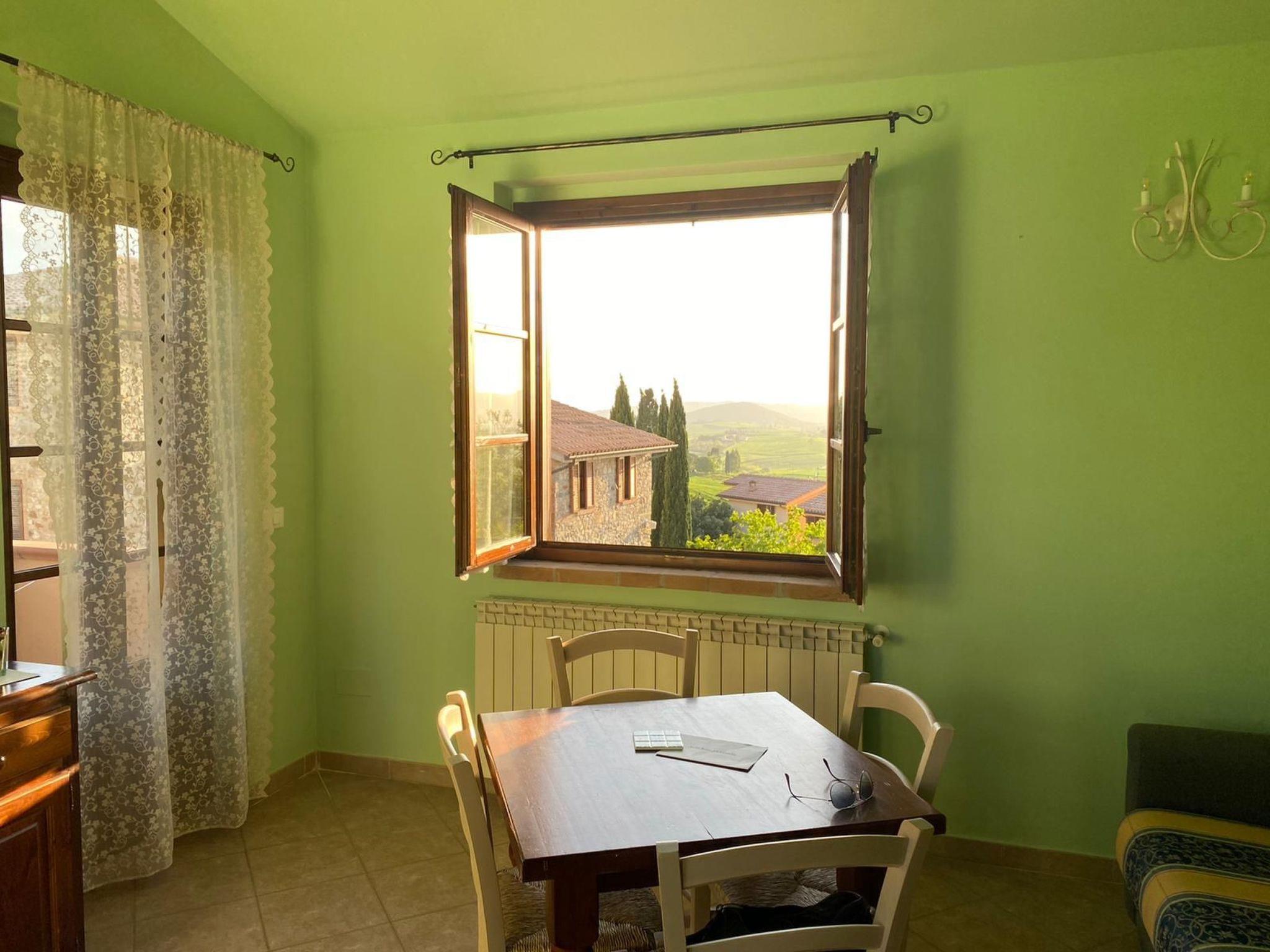 Fuori, l'flat boasts a large balcony where you can enjoy the view and breathe in the'aria fresca della campagna.