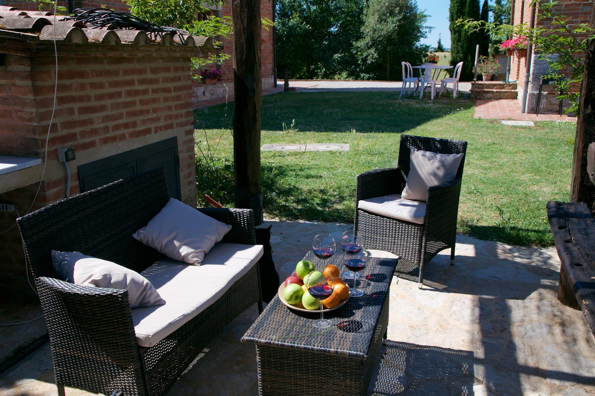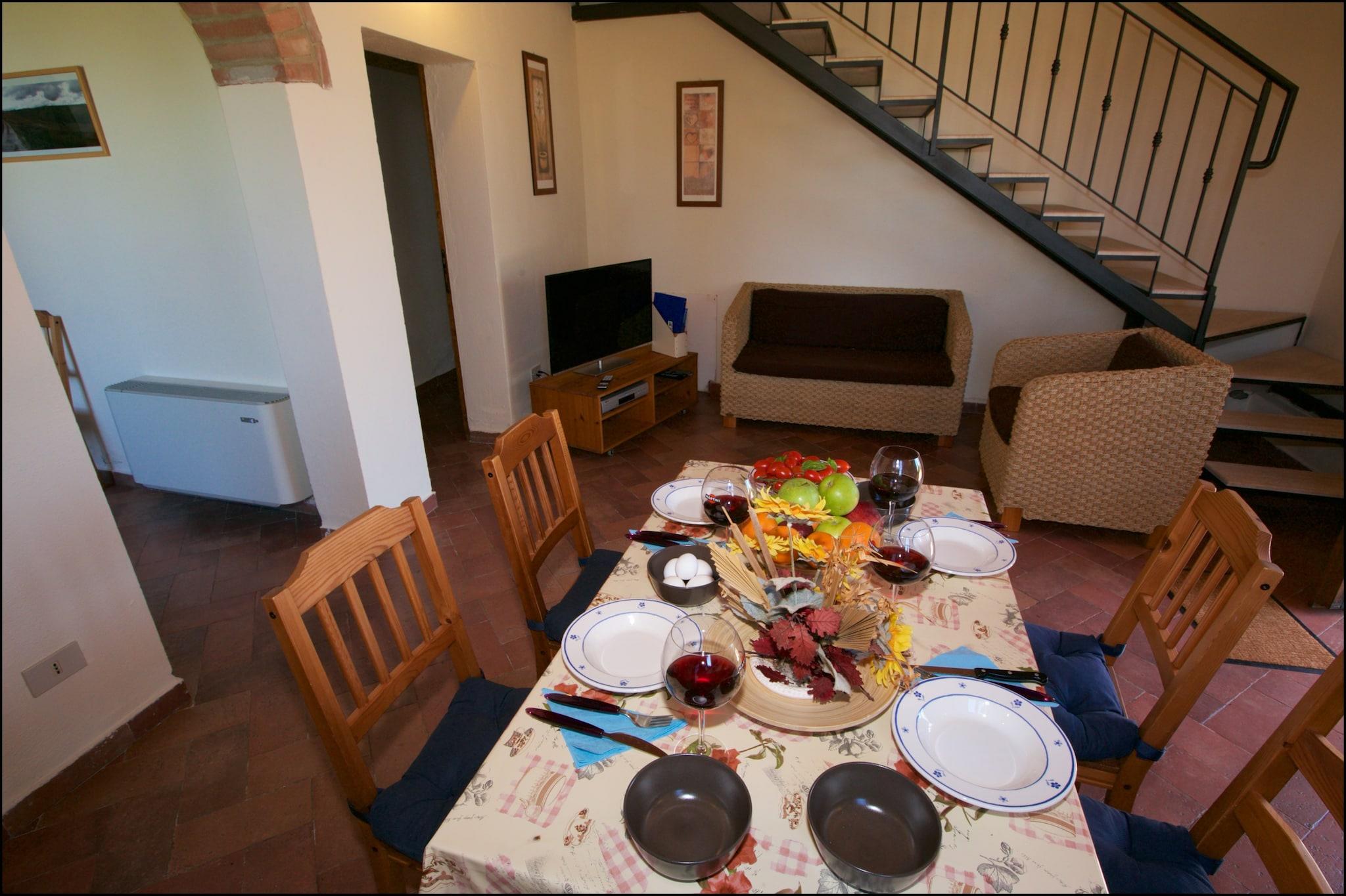Charmerende bondegård, beliggende i det fredelige landskab i Castelnuovo Berardenga, tilbyder en betagende udsigt over de toscanske bakker og en varm, rustik atmosfære. Omgivet af åbne landskaber og udsigt over bjergene er det et roligt tilflugtssted med en fælles swimmingpool og en møbleret terrasse, der er ideel til udendørs måltider og rolige aftener. Med betænksomme detaljer som legeredskaber til børn og masser af udendørs plads er det perfekt til familier eller par, der søger hvile i naturens favn. Bondegården er ideelt placeret til at opdage Toscanas rige kulturarv. En kort køretur bringer dig til Siena, hvor den fantastiske Piazza del Campo og dens majestætiske katedral afslører byens middelalderlige hjerte. Planlæg dit besøg med det berømte Palio-hestevæddeløb for at opleve århundreder gammel tradition i aktion. For wellness-søgende lover Rapolano Termes naturlige varme kilder foryngelse. Og for uforglemmelige øjeblikke kan du tage en køretur ved solopgang eller solnedgang gennem den nærliggende Crete Senesi, et surrealistisk landskab med bølgende lerbakker og cypresser-omkransede veje. Nyd regionens kulinariske skatte med traditionelle trattoriaer og lokale osteriaer kun en kort køretur væk i Castelnuovo Berardenga. Nyd regionale klassikere som pici-pasta, Chianina-oksekød og trøffel-infunderede retter parret med robuste Chianti-vine. For en særlig ... Hvis du vil ud om aftenen, kan du prøve La Taverna della Berardenga eller Ristorante Enoteca Bengodi – begge er berømte for deres hyggelige atmosfære og menuer med lokale råvarer. Fra fyldige espressoer til langtidsstegte festmåltider er hvert måltid en smag af Toscanas sjæl.