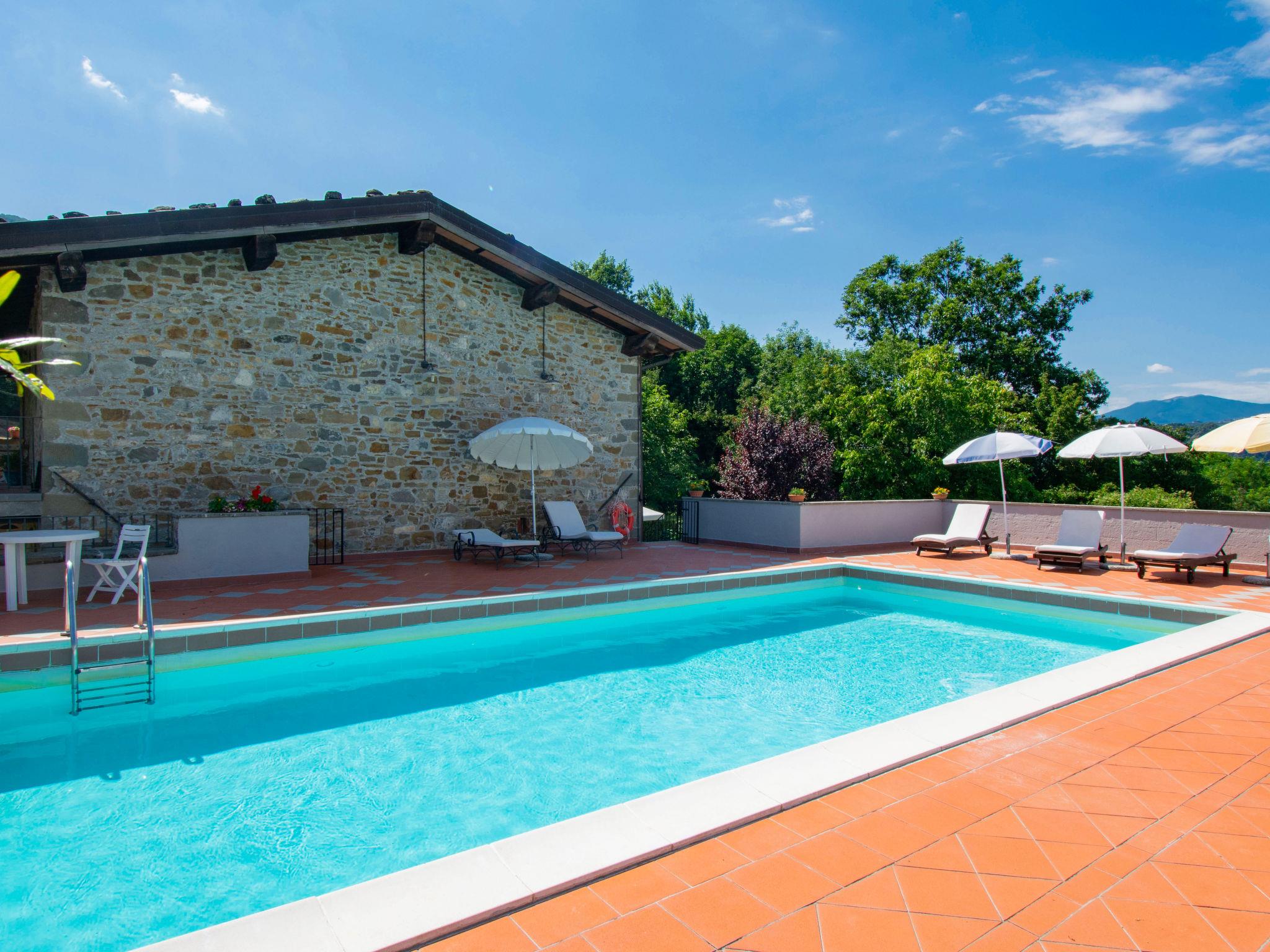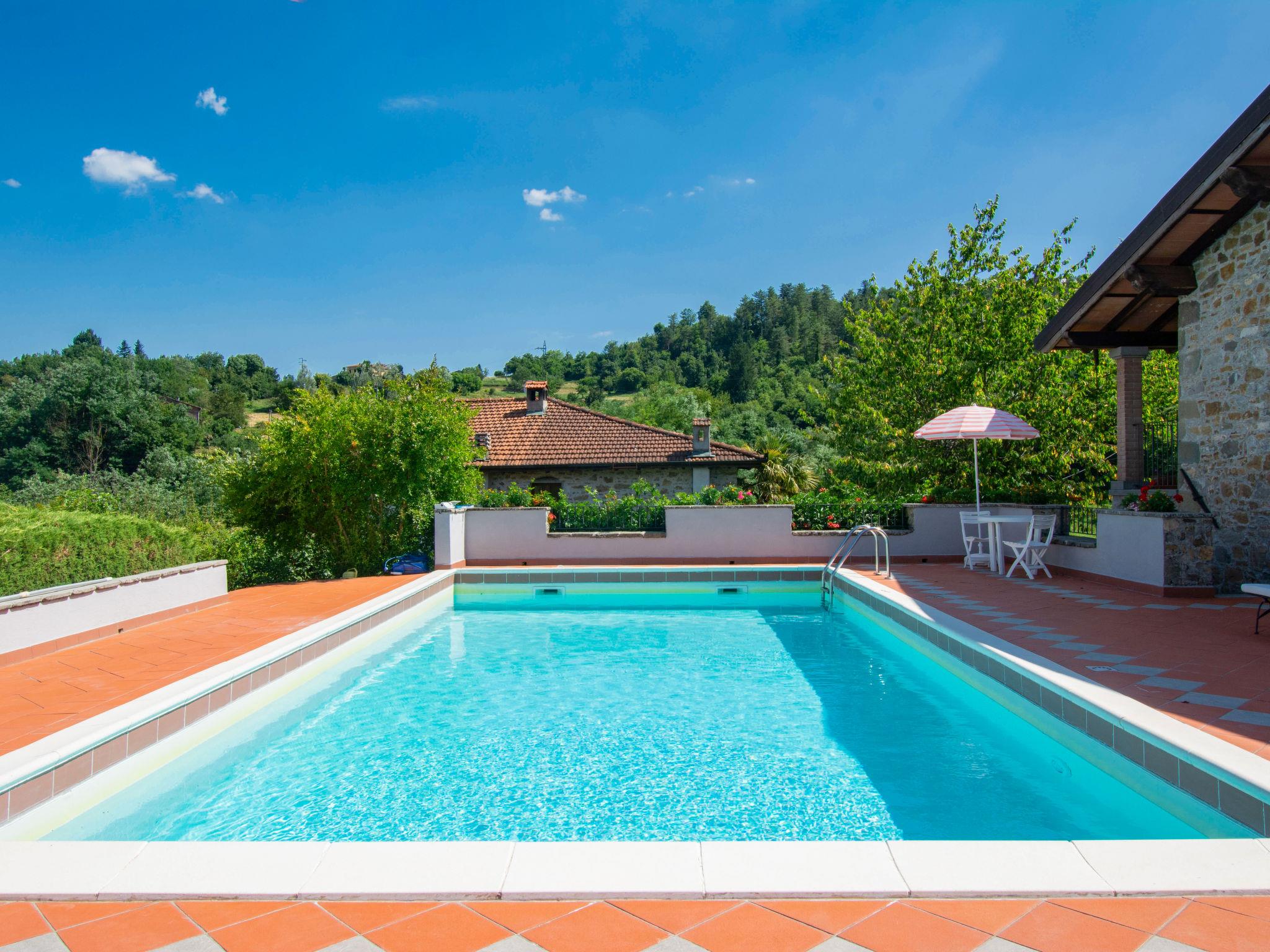 Cosy, rustic apartment house "La Terrazza Rosata", 475 m a.s.l., 2 storeys, detached, built in 1890, renovated in 2012, surrounded by trees. In the resort 2 km from the centre of Castelnuovo Garfagnana, in a quiet, sunny position, 150 m from the lake, in the countryside. Private: natural garden 250 m2 (fenced), swimming pool (11 x 6 m, depth 140 - 140 cm, seasonal availability: 15.May. - 30.Sep.). Shower/WC in the pool area, garden furniture. In the house: washing machine. Parking (for 3 cars) at the house. Grocery 2.5 km, supermarket 2.5 km, restaurant 2.5 km, bus stop 100 m, railway station 2.5 km. Nearby attractions: Rafting Bagni di Lucca 20 km, Versilia 48 km, Lucca 45 km, Torre di Pisa 65 km, Sentiero Fortezza delle Verrucole 7 km. Please note: car recommended. Baby equipment on request (included).
