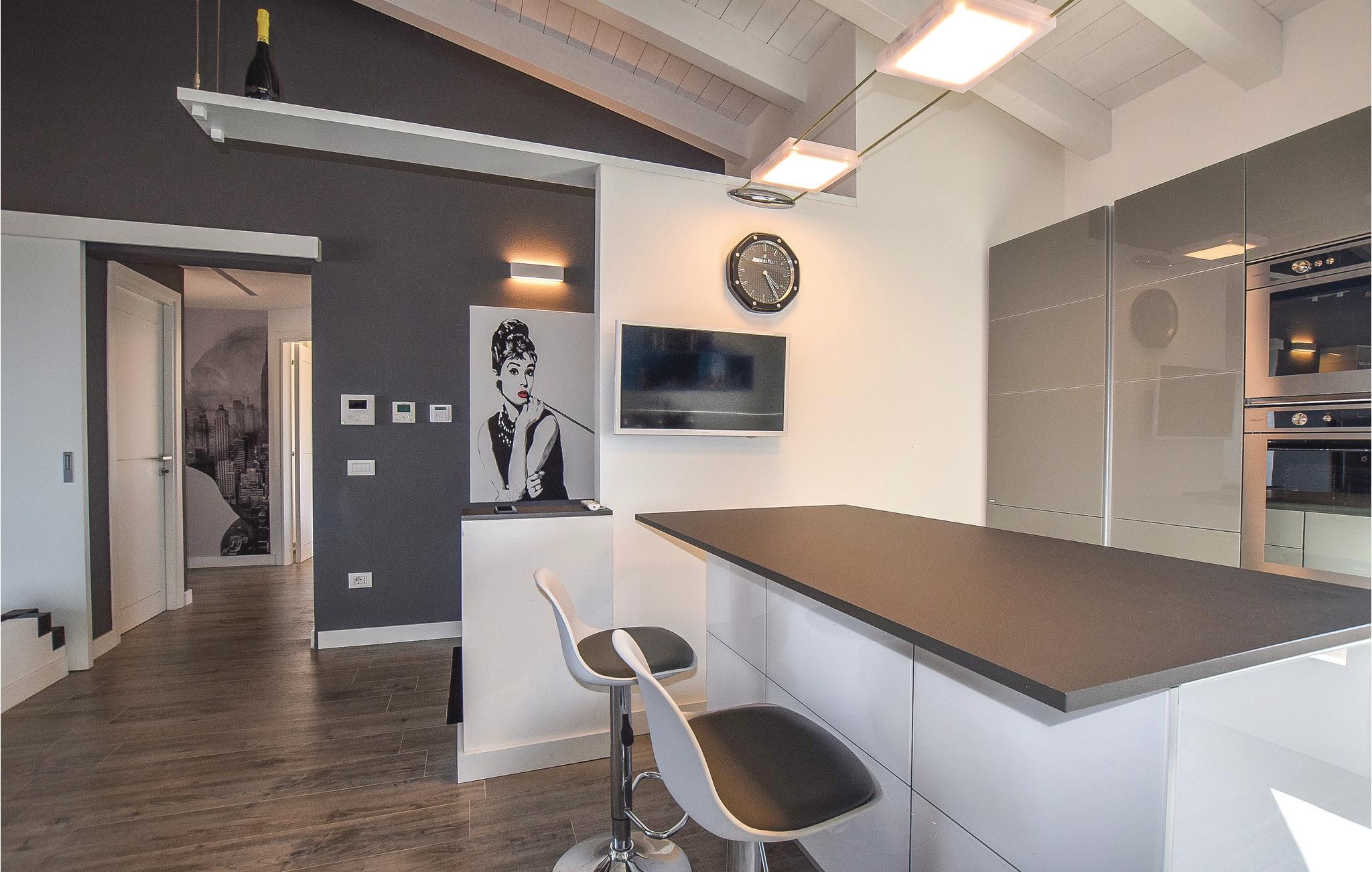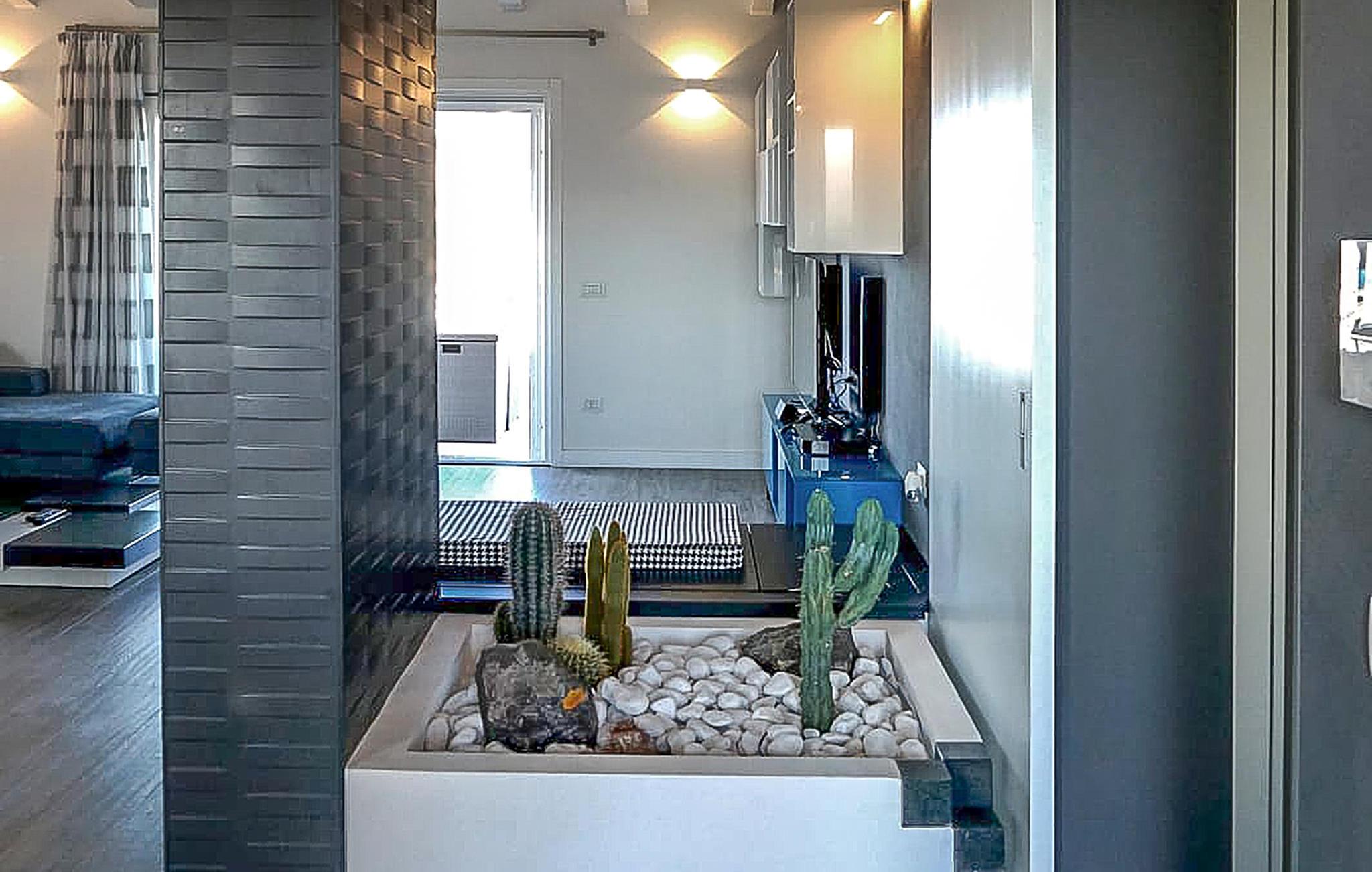 Lejligheden består af en stor åben plads med opholdsstue-køkken, to dobbeltværelser, hvoraf det ene har sit eget badeværelse. Stor udstyret terrasse, hvorfra I kan nyde en vidunderlig udsigt. Lejligheden har gulvvarme og er udstyret med al komfort. Moderne og elegant indretning.