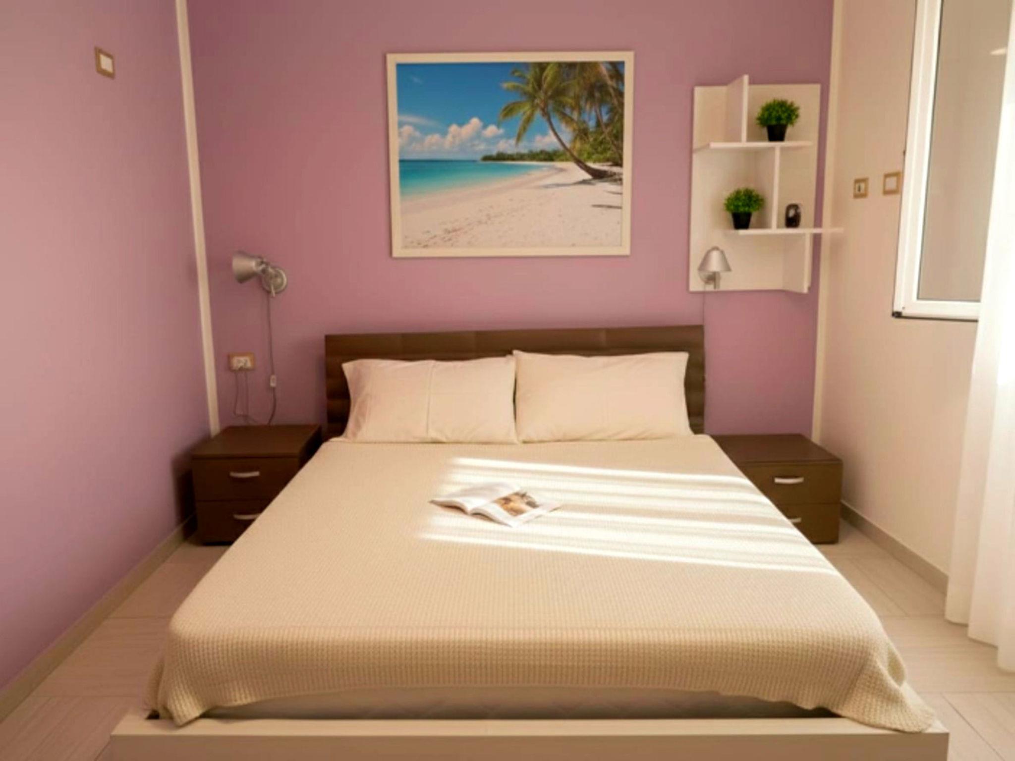 "Sabbia e Lavanda", 2-room terraced house 50 m2, on the ground floor. Simple and comfortable furnishings: living/dining room with 1 sleeping facility, TV and flat screen. Exit to the garden. 1 double bedroom. Exit to the balcony. Kitchenette (oven, dishwasher, 4 gas rings, toaster, kettle). Shower/bidet/WC. Air-conditioning. Small garden. Balcony furniture. Partial of the sea. Facilities: iron, hair dryer. Parking (extra) at the house. IT000000C0000T0000