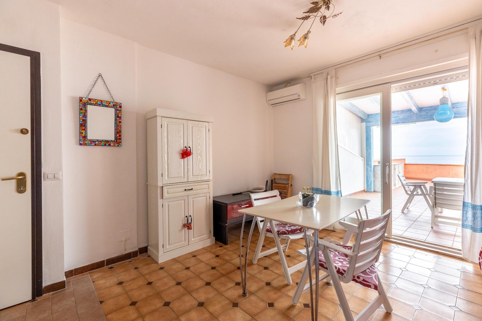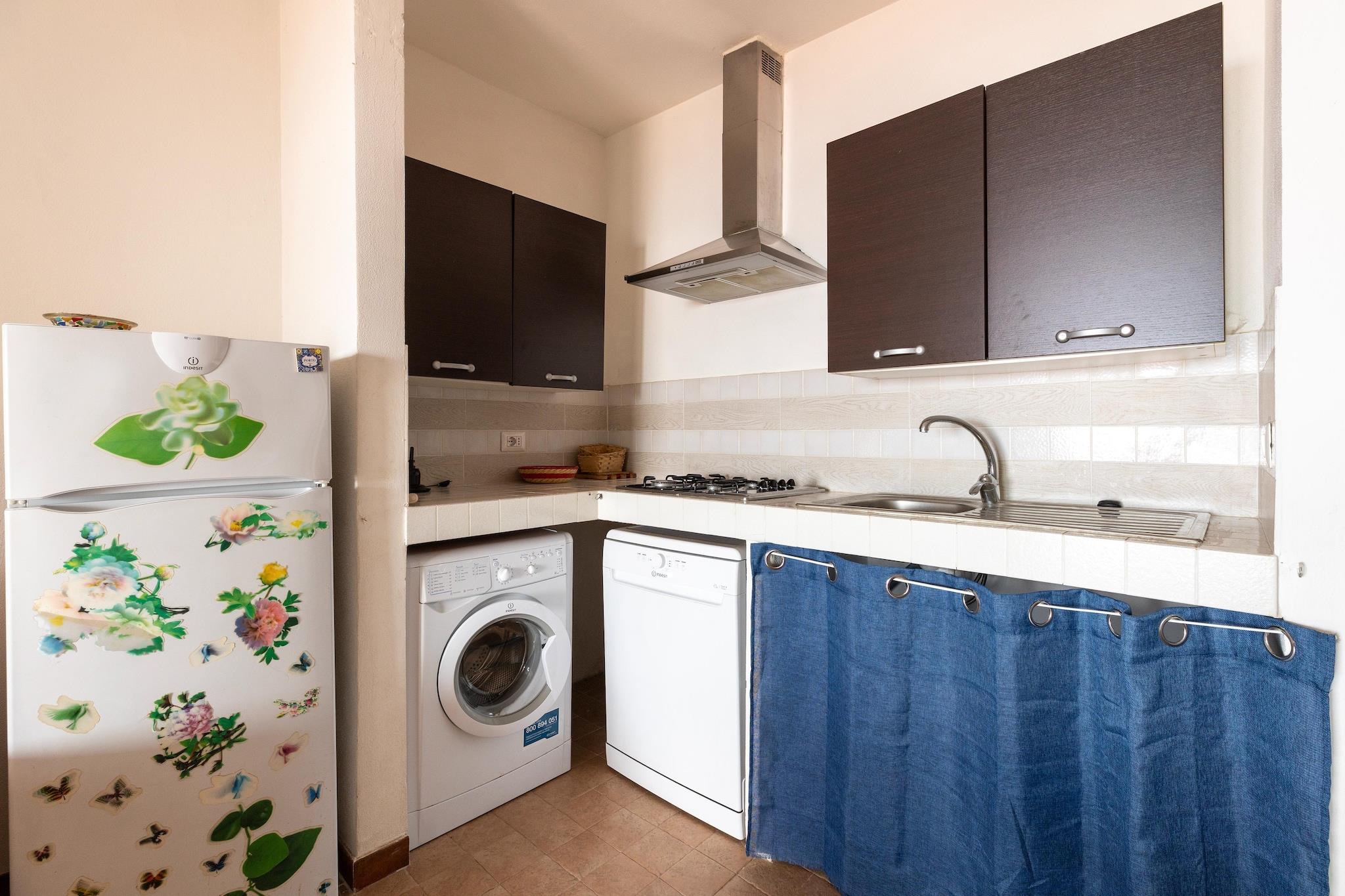 Denne indbydende lejlighed på første sal ligger i behagelige omgivelser og tilbyder et praktisk og komfortabelt ophold for op til fire gæster, hvilket gør den ideel til par, små familier eller venner, der rejser sammen. Med en gennemtænkt planløsning og essentielle faciliteter er boligen en afslappet base for at udforske det omkringliggende område, mens man nyder hverdagens bekvemmeligheder. Lejligheden åbner op til en lys stue med en dobbelt sovesofa, tv og et spisebord, hvor gæsterne kan dele måltider eller slappe af efter en dag ude. Det tilstødende åbne køkken er udstyret med kaffemaskine, ovn og køleskab med fryser, så du nemt kan tilberede morgenmad, lette frokoster eller aftensmåltider. Soveværelset har en komfortabel dobbeltseng til afslappende nætter, mens badeværelset er udstyret med bruser, toilet og vaskemaskine, hvilket giver ekstra bekvemmelighed til længere ophold eller familieferier. Aircondition sikrer komfort på varmere dage. Gå udenfor på den private terrasse, et behageligt sted at nyde morgenkaffen, frisk luft eller afslappede aftener udendørs. Denne lejlighed kombinerer enkel komfort med praktiske funktioner og fungerer som en nem og indbydende base for dit ophold. Den nærliggende kyst er perfekt for vandelskere, med Marina di Castelsardo-stranden og Spiaggia Lu Bagnu, der er ideelle til svømning og afslapning i det turkisblå vand. Det klare hav indbyder til snorkling, paddleboarding og naturskønne bådture langs kysten. Besøg Cattedrale di Sant’Antonio Abate, kendt for sit klokketårn med majolikafliser og imponerende interiør. Langs havnen serverer caféer, gelateriaer og fiskerestauranter friske lokale retter – bedst nydt med et glas Vermentino ved solnedgang.