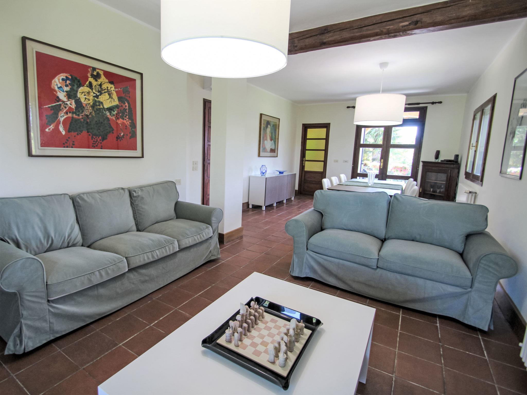 Single-family house "Il Poggio". 2.2 km from the centre of Porto Valtravaglia, 3.2 km from the centre of Caldè, 2 km from the lake. Private: garden 1'500 m2 (fenced) with lawn and trees, swimming pool (15 m2, depth 140 cm, seasonal availability: 15.May. - 30.Sep.). Garden furniture, public parking 250 m. Supermarket 1.3 km, restaurant 1.3 km, bar 1.3 km, bus stop 1.3 km, railway station "Porto Valtravaglia" 2.2 km. Hiking paths: San Michele 10 km. Please note: car recommended.