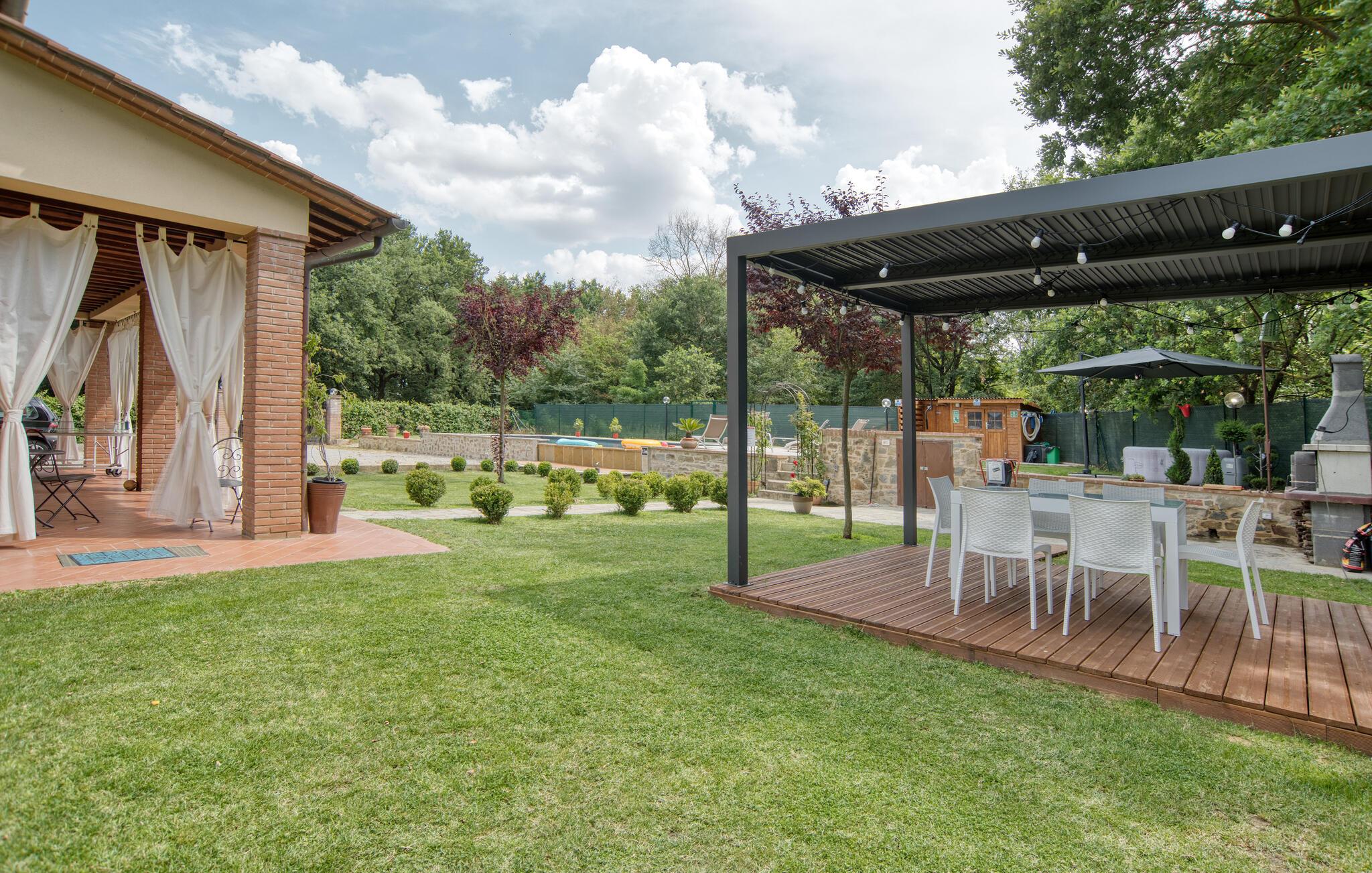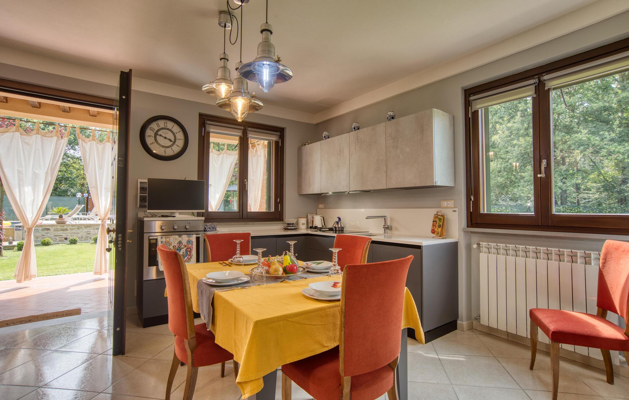 Feriehuset er noget særligt med sin smagfulde indretning og byder på masser af plads til en stor familie. I den hyggelige opholdsstue kan I finde jer godt til rette på den komfortable sofa. Det moderne køkken er veludstyret og lægger op til at tilberede autentiske toscanske specialiteter. Indtag jeres måltider i den stilfulde spiseplads og nyd tiden i godt selskab.