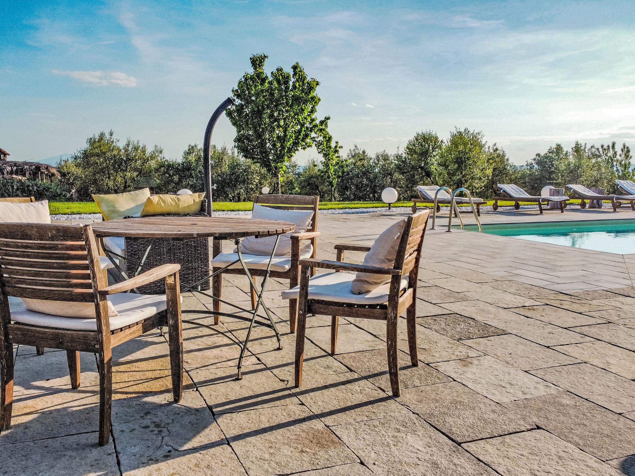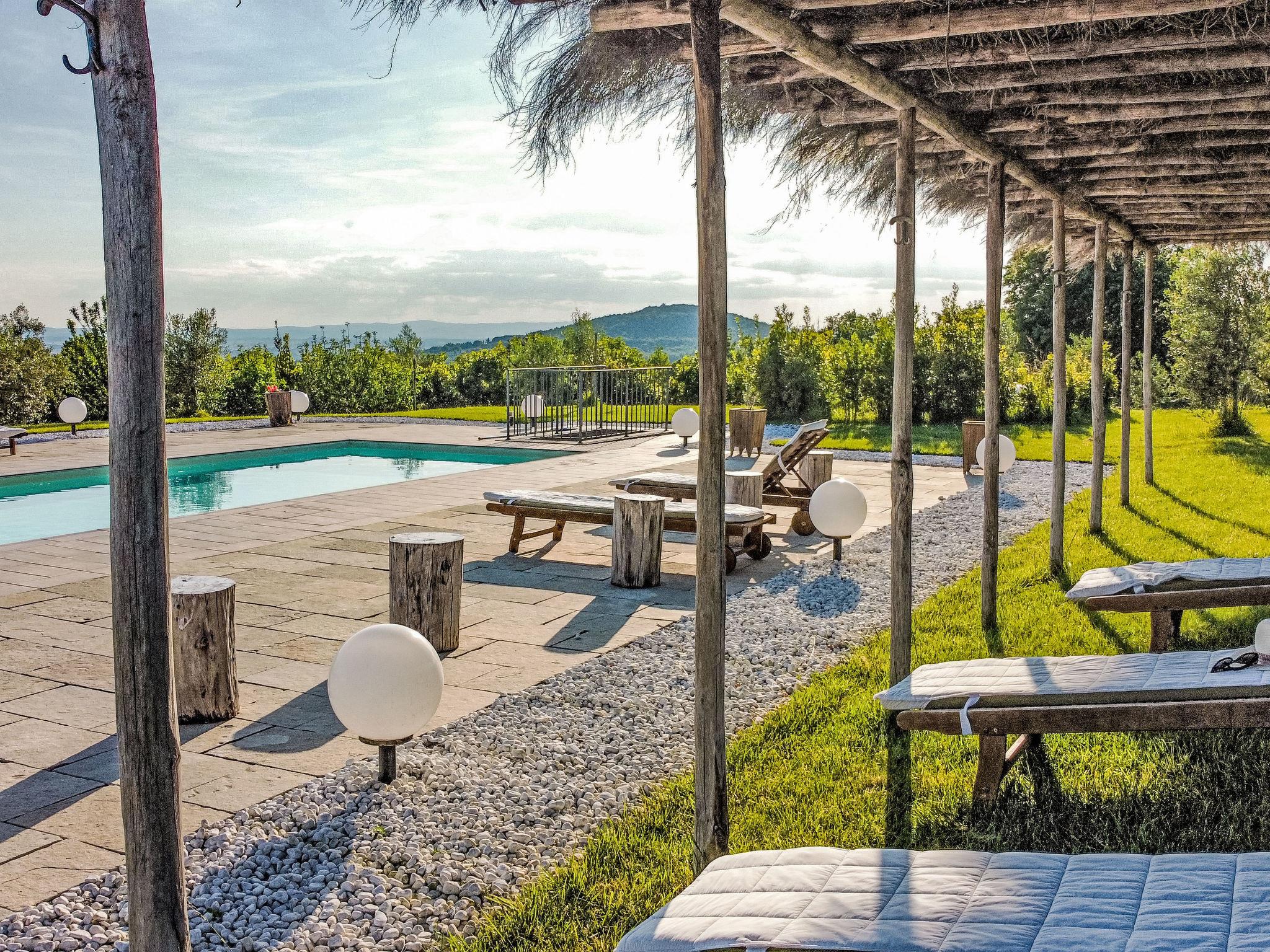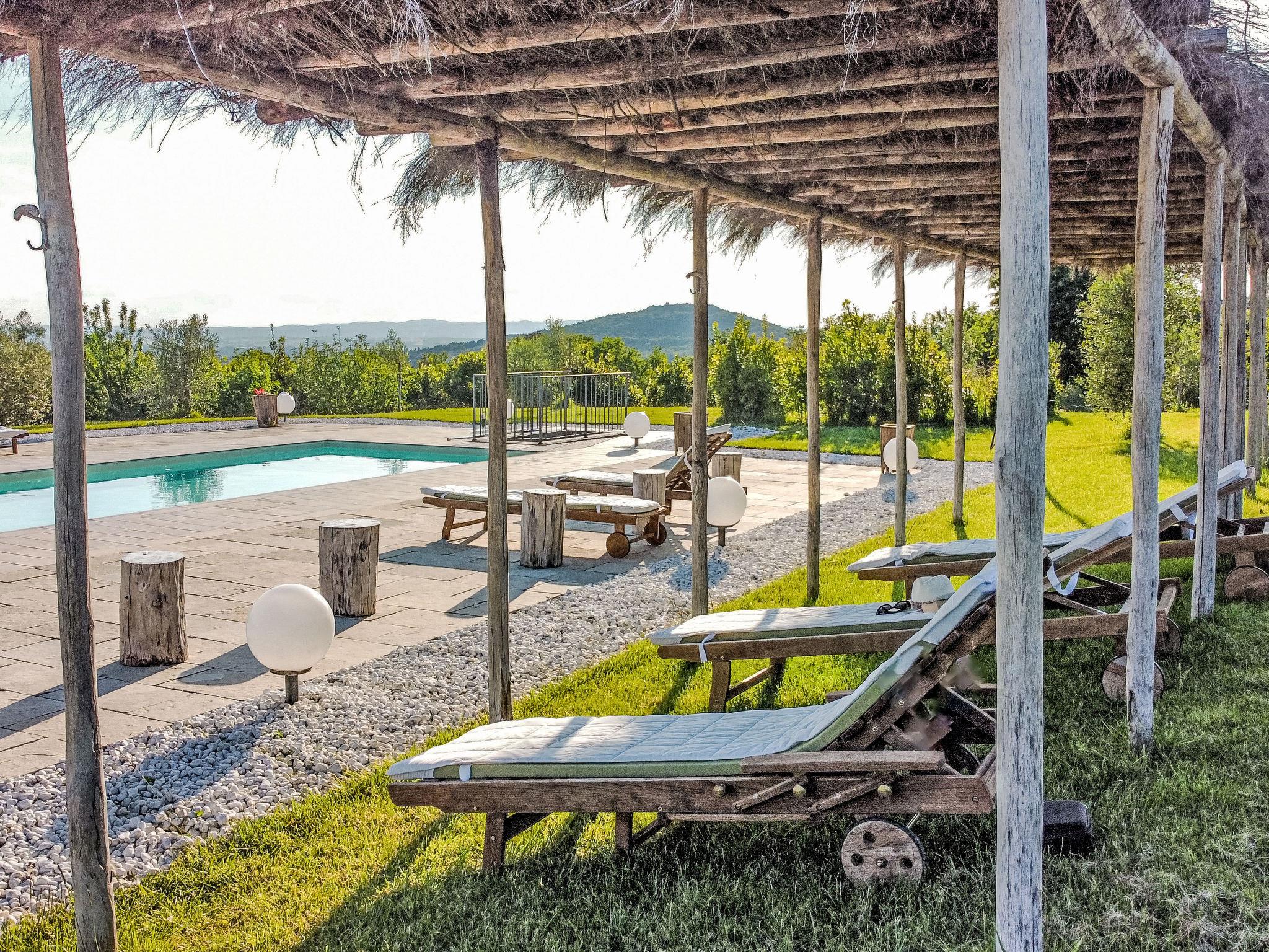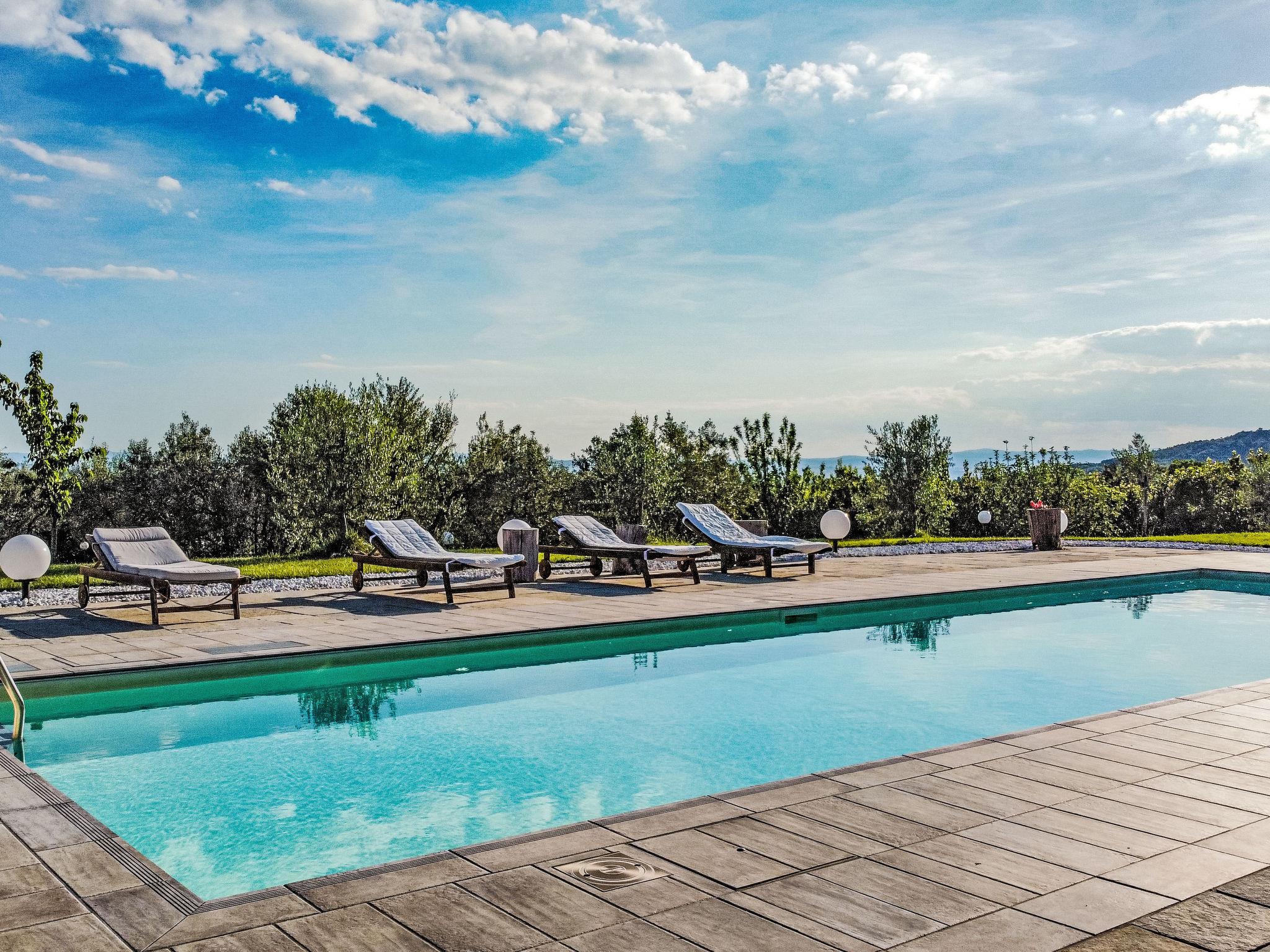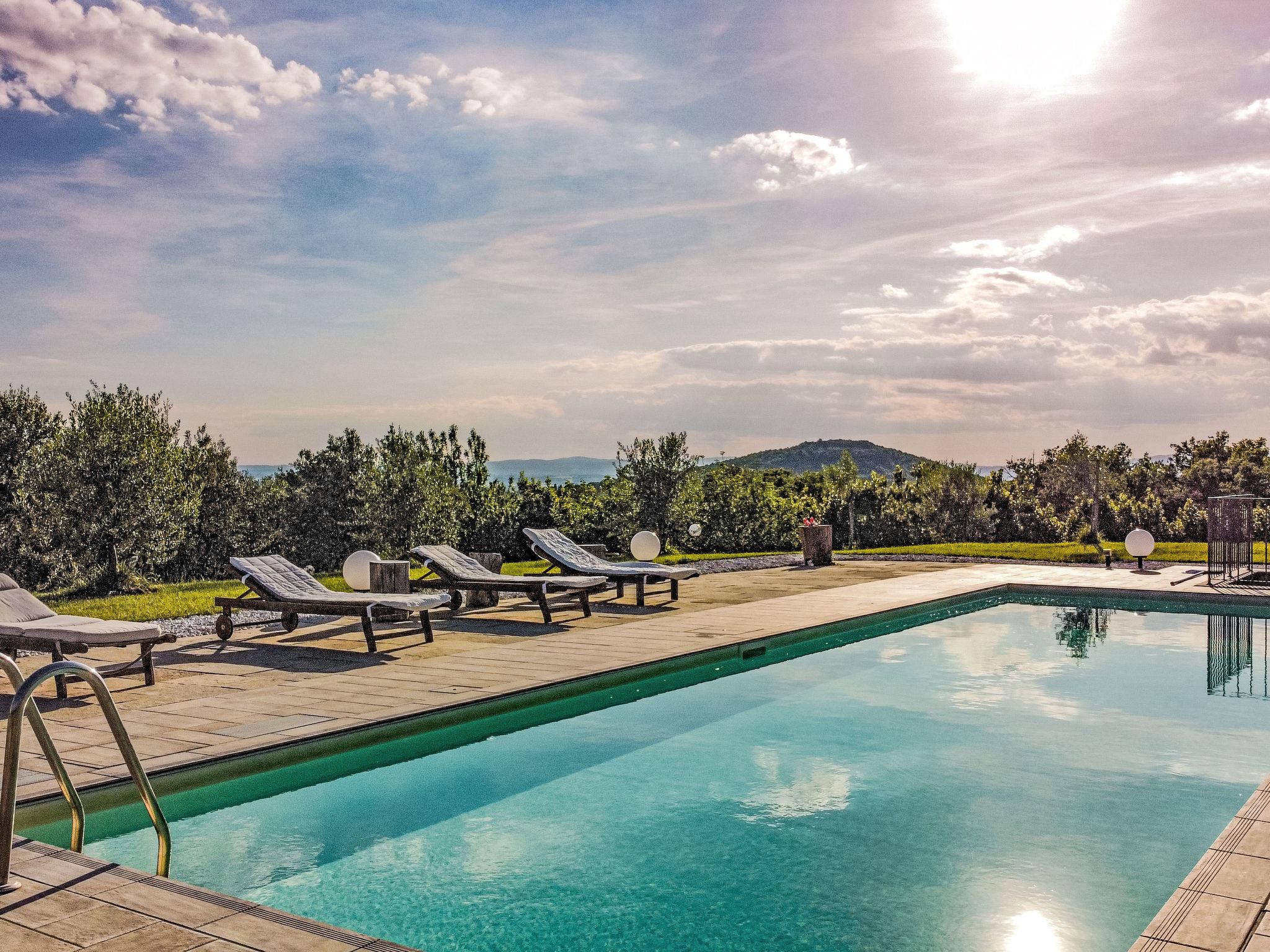 Beautiful, comfortable villa "Il Sogno Di Pietro", surrounded by trees and fields. Property composed of main house and outbuilding 6 km from the centre of Castiglion Fiorentino. Private: property 6'500 m2 (fenced), lawn, swimming pool (12 x 4 m, depth 140 cm, seasonal availability: 01.Apr. - 30.Oct.). Outdoor shower, pergola, garden furniture, barbecue, pool maintenance by the owner/gardener. In the house: infrared sauna, spa area (all included). Parking (for 6 cars) on the premises. Grocery 3 km, supermarket 3 km, restaurant 1 km, bus stop 1.5 km, thermal baths "Rapolano Terme" 37 km, bathing lake "Trasimeno". Nearby attractions: Cortona 13 km, Arezzo 16 km, Lucignano 20 km, Passignao Sul Trasimeno 31 km, Castiglione Del Lago 33 km, Pienza 47 km. The owner does not accept any youth groups. Annex consisting of a living room/kitchenette, one double bedroom and a bathroom with a shower. The mentioned pool can be heated at an additional cost, subject to prior booking of the service.