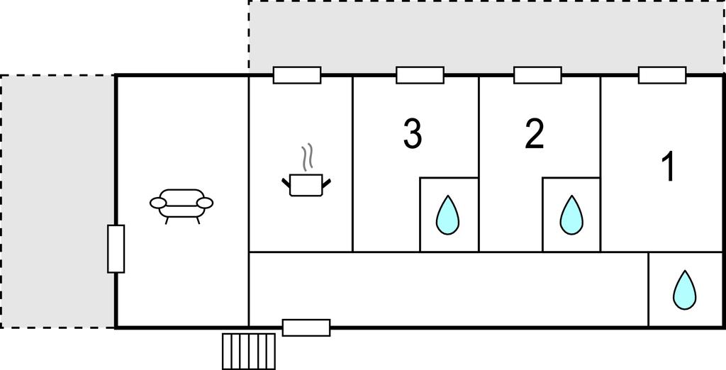 Badeværelse 3m2 (nr. 1) - WC. Varmt og koldt vand. Bruser