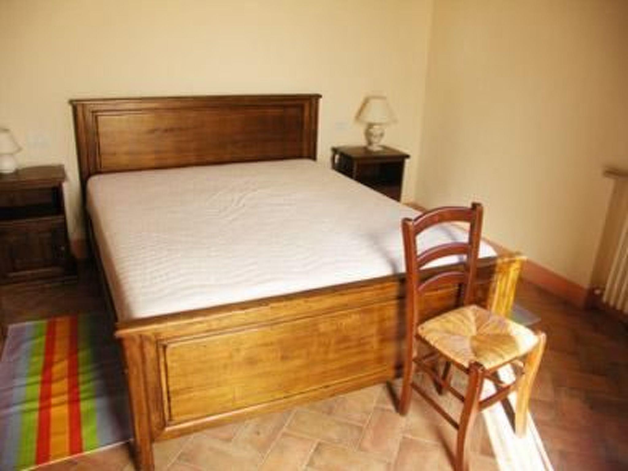 The flat on the ground floor is furnished with Tuscan arte povera furniture. The total number of beds is 4+2 (four in the two bedrooms, two in the living room where there is a sofa bed). Outside there is a veranda and a masonry and portable barbecue. In the garden of the farmhouse there is a 6 x 12 metre swimming pool. The property is entirely surrounded by the countryside of Castiglione d'Orcia. Guests of the farmhouse can make use of garden furniture and tables for outdoor dining.