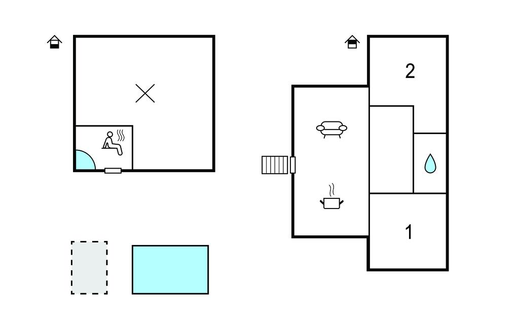 Soveværelse (nr. 1) - 1 Soveplads. (Enkeltseng(e)). 2 Sovepladser. (Dobbeltseng(e)).