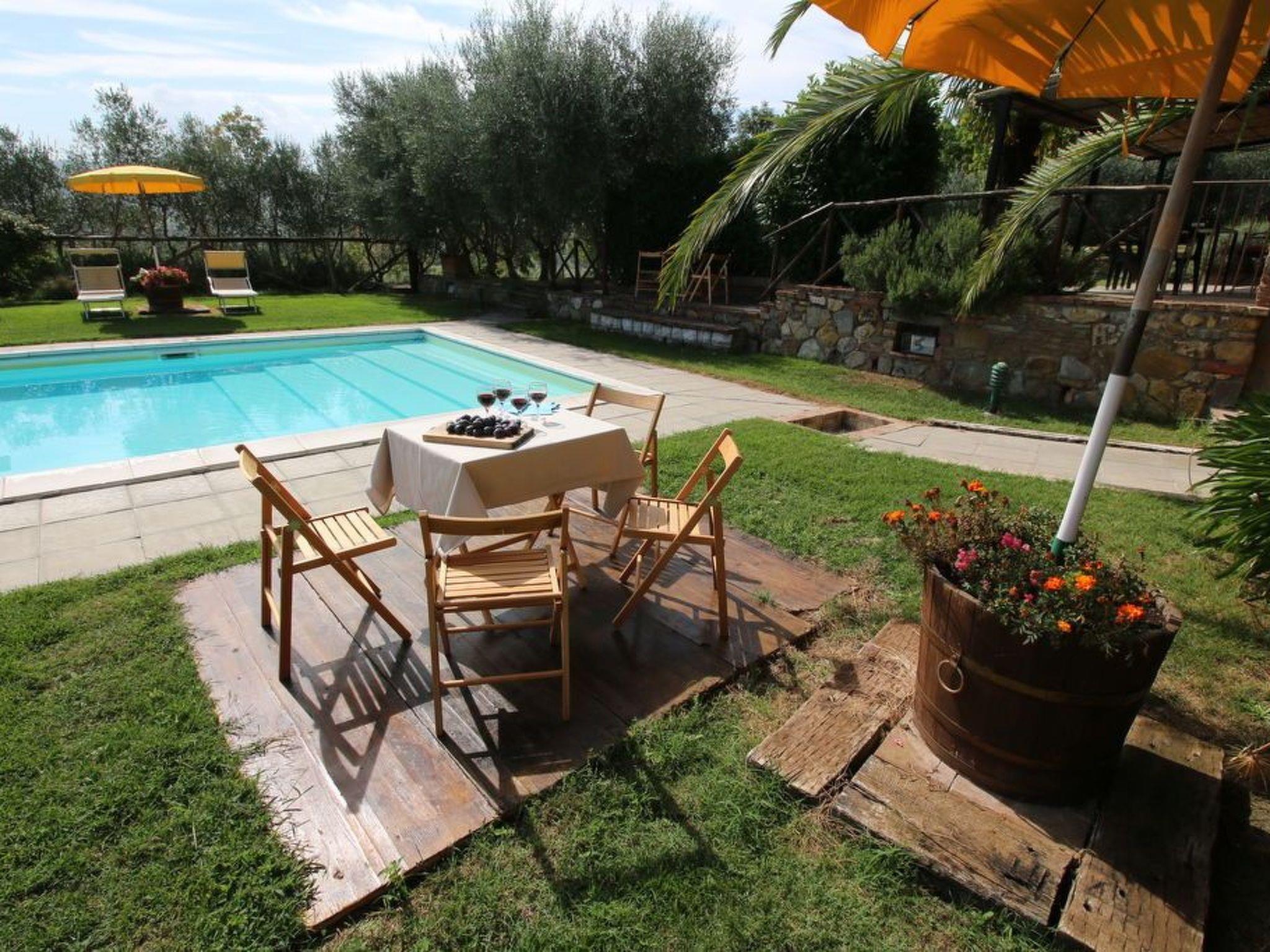 There is an outdoor area with a beautiful stone table and six chairs, for the exclusive use of guests at this holiday apartment. The apartment has a view of the pool. To the rear of the house there is the shared area with many leisure facilities.
