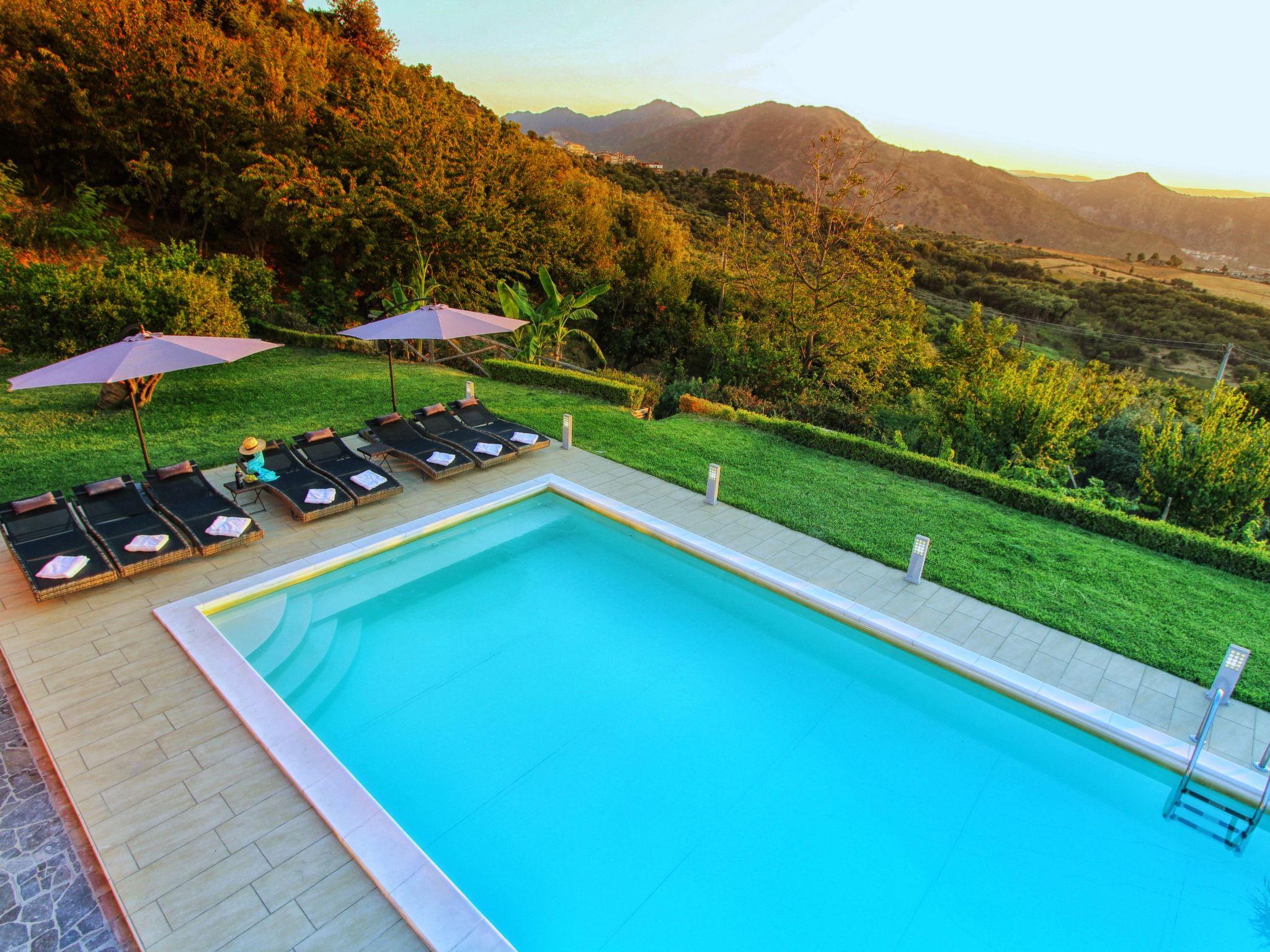 The delightful outdoor spaces of Villa Malú are dominated by fruit orchards, palm trees and ancient olive trees. At centre stage is a spacious lawn where you will find the outdoor pool. Surrounding this are the views of the gentle verdant hills, the surrounding Sicilian countryside as well as the Tyrrhenian sea in the distance. The pool area is equipped with eight sun loungers, two umbrellas and matching side tables, where you can relax and enjoy the warm weather. Here you will also find an outdoor sink and shower. The cost to heat the pool is included between the months of October-May, and from June-September it needs to be requested for a fee. Please don’t hesitate to reach out if you have any questions regarding the heated pool.