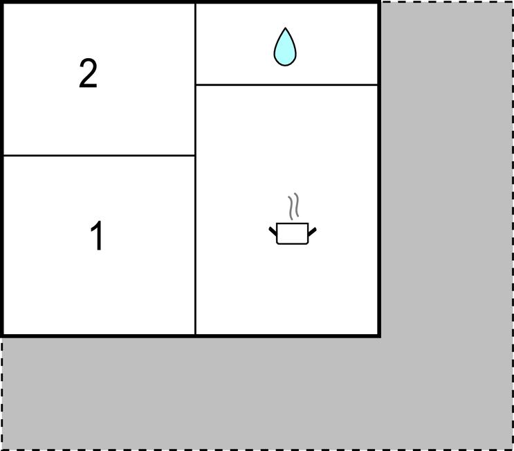 Badeværelse 5m2 (nr. 1) - WC. Varmt og koldt vand. Bruser