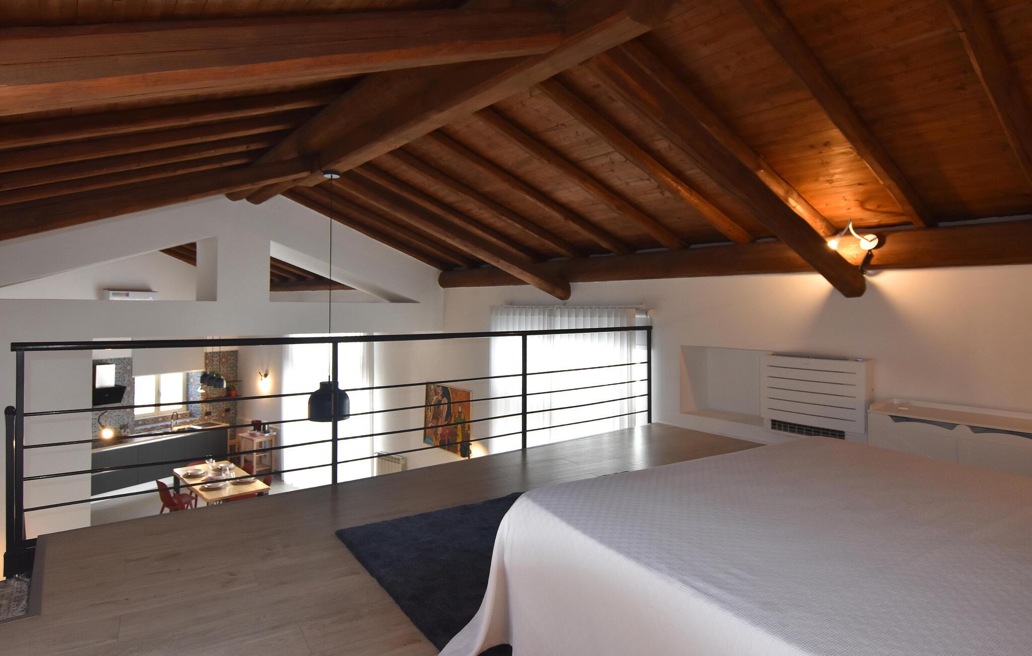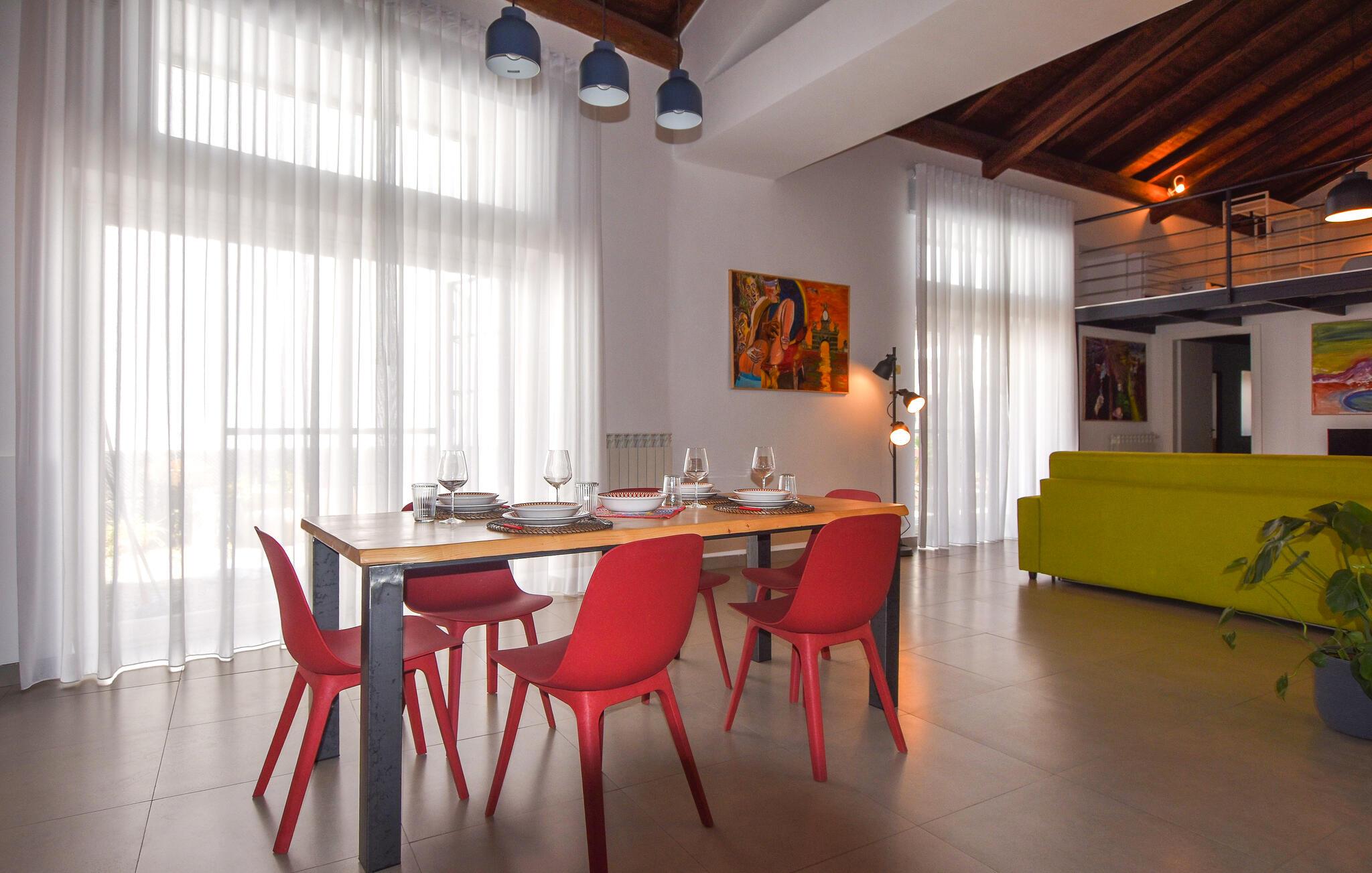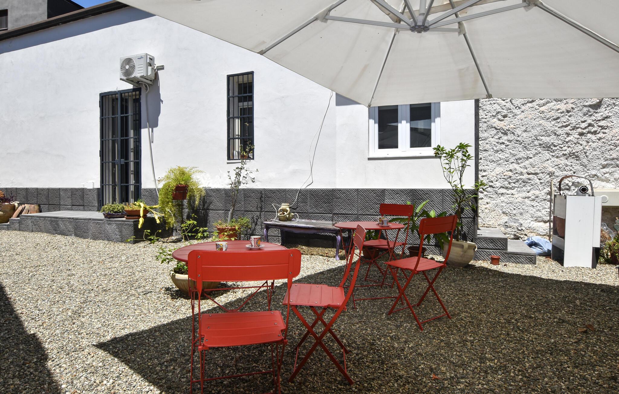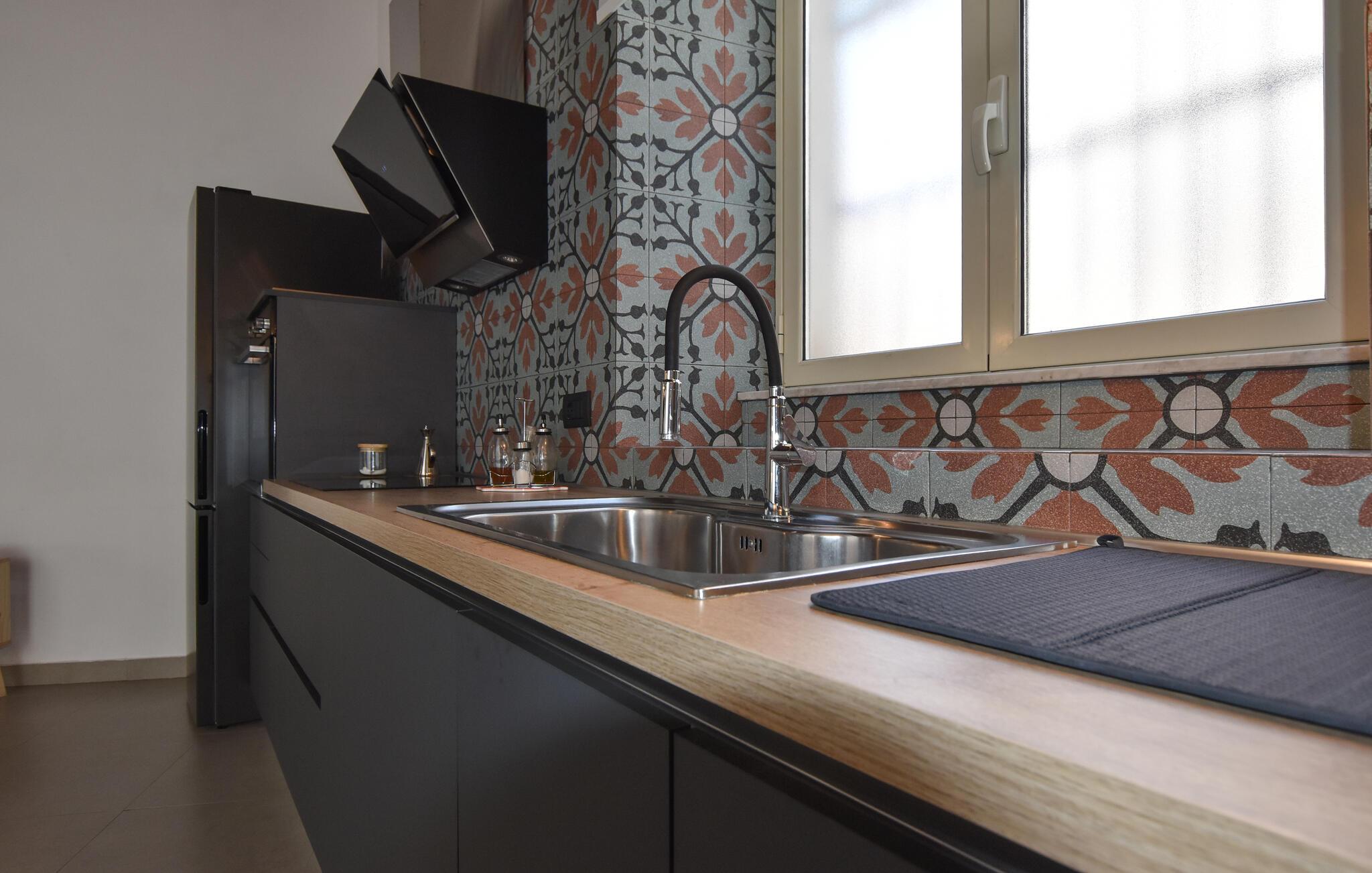 Oplev regionens mange attraktioner under en varieret ferie i dette komfortable feriehus. Dette rummelige og stilfuldt møblerede rækkehus byder jer velkommen til hjertet af Catania og vil begejstre jer med sin moderne og elegante atmosfære. Fremkald kulinariske lækkerier i det smukke køkken, og planlæg jeres aktiviteter over afslappede måltider i den åbne opholdsstue. Efter en lang dag kan I slappe af i den behagelige sofa, nyde en spilleaften eller fordybe jer i en underholdende bog af Andrea Camilleri. Den fælles terrasse tilbyder et skyggefuldt sted at starte dagen med en morgenmad under åben himmel eller til at snakke om jeres oplevelser over et glas vin om aftenen. Gå en tur gennem det pulserende La Pescheria-marked, prøv sicilianske specialiteter og beundr katedralen. Tag en tur til Etna, vandr på vulkanstierne, eller solbad på strandene i Aci Trezza. Oplev historiske villaer og maleriske haver i de charmerende kystbyer Taormina og Acireale, og gå ikke glip af de gamle arkæologiske steder på Naxos.