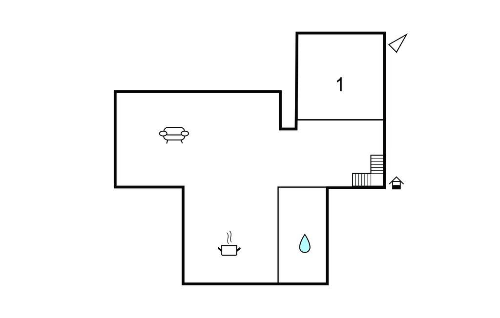 Opholdsstue/køkken 50m2 - 3 Sovepladser. (Sofa, madras eller lignende).