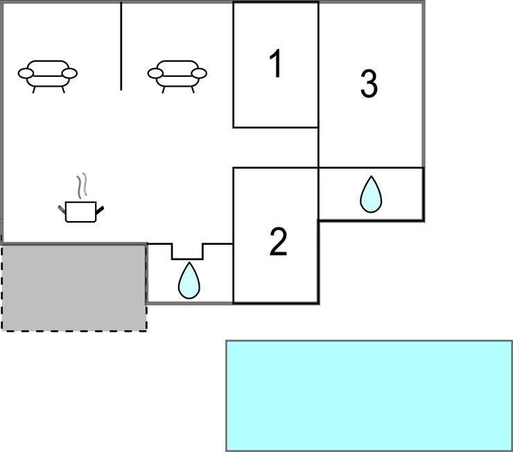 Soveværelse 16m2 (nr. 3) - 1 Soveplads. (Enkeltseng(e)). 2 Sovepladser. (Dobbeltseng(e)).